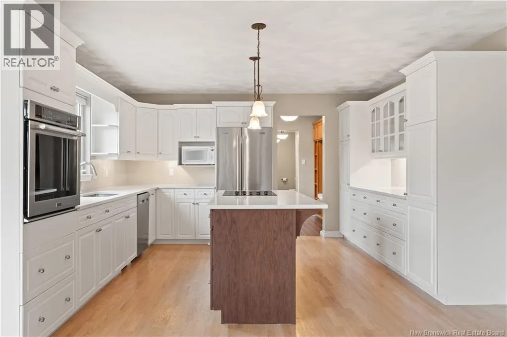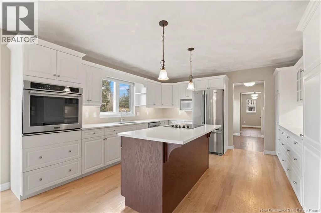 From Mclaughlin drive turn on Fairview Knoll drive then left on Frizzell Crescent. Arrive at civiv #56 Frizzell Crescent. (AVAILABLE) Welcome to 56 Frizzell Crescent, an exceptional EXECUTIVE HOME ideally situated on a PRIVATE, FULLY FENCED CORNER LOT in one of Monctons most sought-after FAMILY neighbourhoods. This beautifully MAINTAINED AND RECENTLY REPAINTED property offers the perfect balance of space, comfort, and convenience, just minutes from many SCHOOLS, the UNIVERSITÃ DE MONCTON, COSTCO, and DOWNTOWN MONCTON. This spacious home features 4 BEDROOMS and 2.5 BATHROOMS, designed with both family living and entertaining in mind. The main level offers a BRIGHT LIVING ROOM, OFFICE, DINING ROOM, and FORMAL DINING ROOM, providing flexible spaces for everyday life and special gatherings. The kitchen has been tastefully UPDATED with CABINETRY REDONE 2 YEARS AGO, QUARTZ COUNTERTOPS, NEW APPLIANCES, and a WALK-IN PANTRY, making it both functional and stylish. Upstairs, the primary suite boasts a RENOVATED ENSUITE featuring a WALK-IN SHOWER WITH RADIANT HEAT, creating a spa-like retreat. Additional recent upgrades include ROOF SHINGLES REPLACED APPROXIMATELY 5 YEARS AGO and a CENTRAL HEAT PUMP INSTALLED 12 YEARS AGO, offering efficiency and year-round comfort. Outside, enjoy the privacy of the fenced corner lot, complemented by a DOUBLE CAR GARAGE and a convenient BABY BARN for extra storage. This MOVE-IN-READY executive home is ideally located near schools, parks, shopping, and amenities IN A PRIME LOCATION. Dont miss your chance schedule your private viewing today. (id:27476)