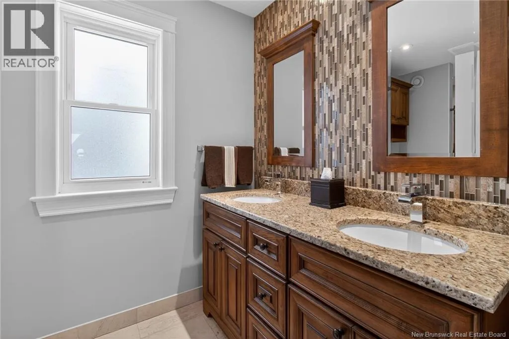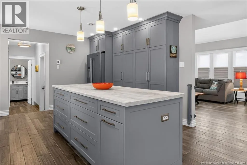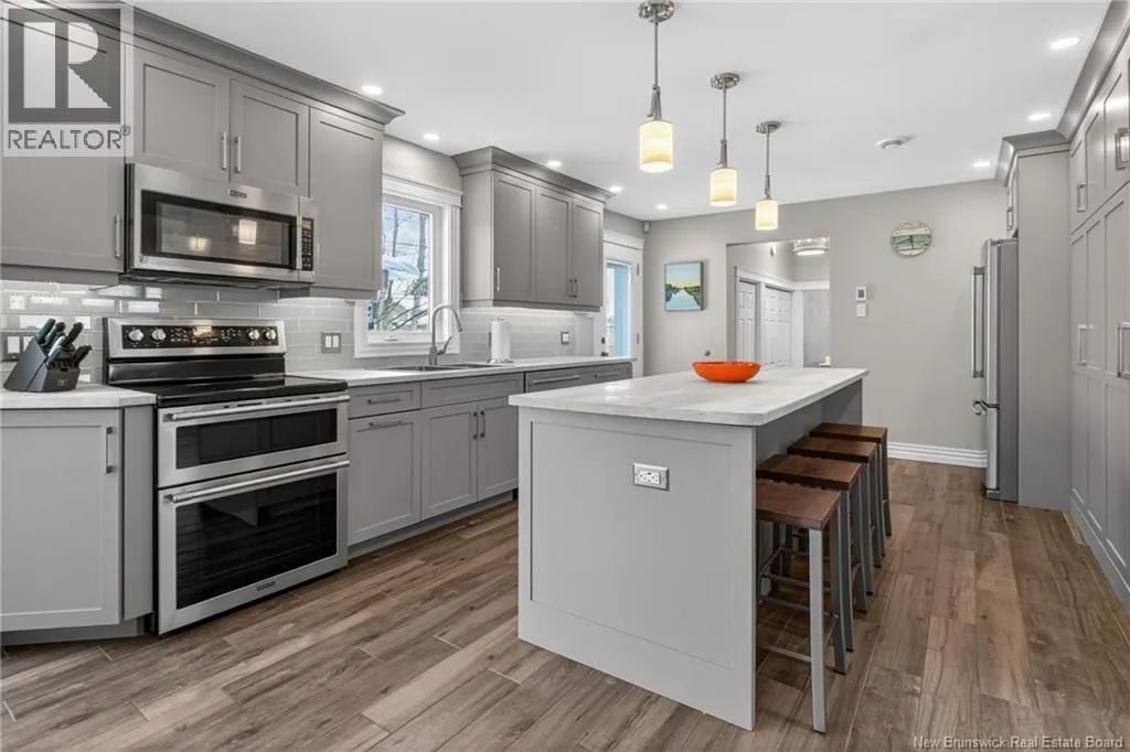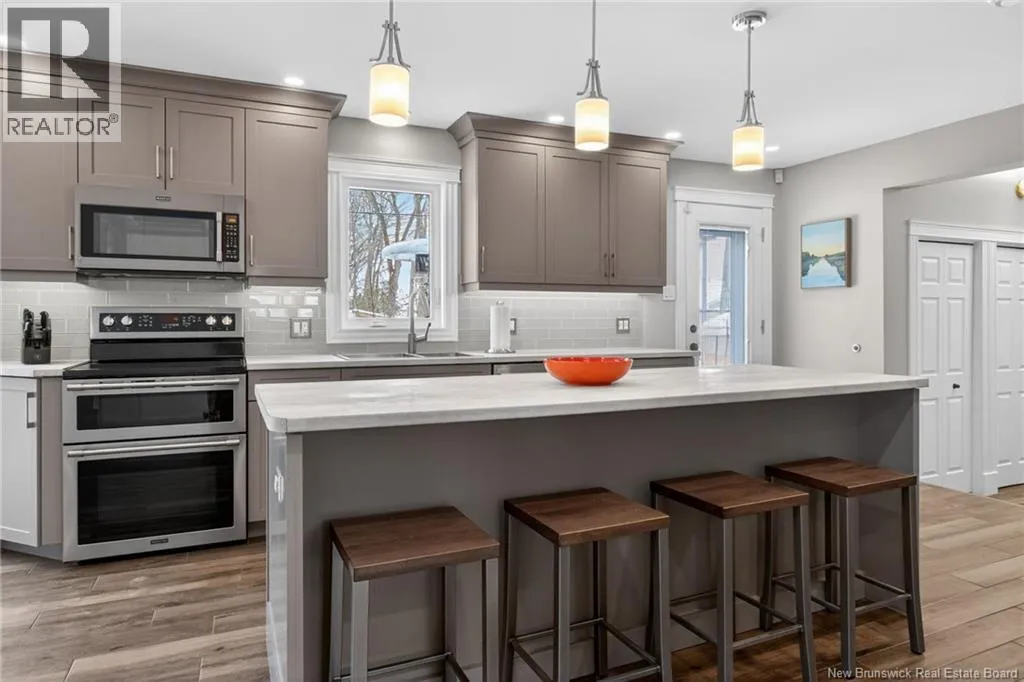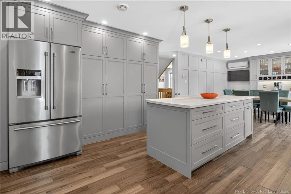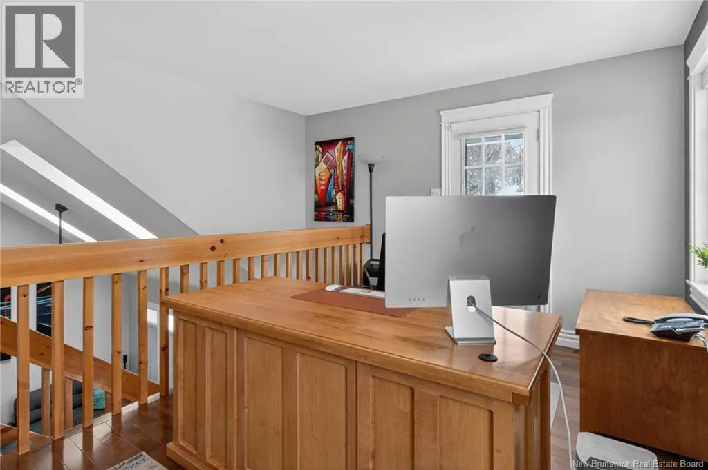 Located in Kingswood Redwood can be accessed from Glencairn or from Glencairn turn onto Ashley and onto Redwood MONCTON NORTH! BEAUTIFUL KITCHEN, 3 BEDROOMS & OFFICE, FENCED! This beautifully updated home offers comfort & style! The front door leads to a spacious tiled entrance All tiled floors offer in floor heat!. The open concept living room is bright and inviting with cathedral ceilings, two skylights( 2023), custom blinds, and heated ceramic flooring. A shiplap accent wall adds a modern touch. The large eat in kitchen was updated in 2019 and features light grey cabinetry, pot lights, heated flooring, a large island, and premium stainless steel appliances including 2 built-in refrigerated drawers. Patio doors lead to a deck and a fenced backyard, divided with a landscaped area and a gravelled space ideal for a dog run. A beautifully updated half bath was completed in 2024. Main Floor Laundry. Garage has a generator panel. Upstairs offers a large open office space with hardwood floors and access to a small deck. 3 bedrooms provide excellent closet space, including the primary with walk in and double closets. The renovated main bath includes an air tub and heated floors, while the remodeled ensuite features an impressive custom shower with multiple heads including a rain shower. Patio doors open to a private primary deck. The finished lower level includes a cozy reading nook, large family room with propane fireplace, vinyl click flooring, storage room. Additional features include 3 mini splits (2018), roof shingles and skylights (2023), air exchanger, and central vacuum, alarm, safe (id:27476)