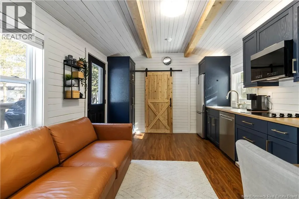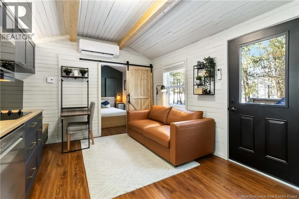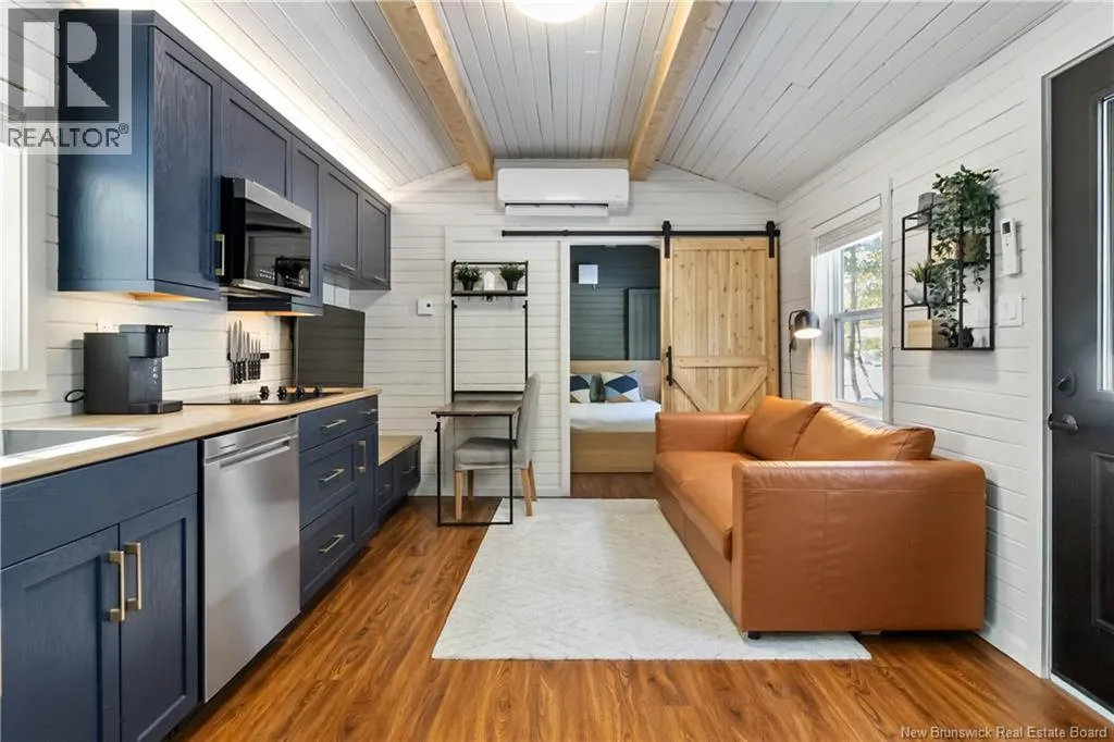 From Route 115, turn left onto Cedarwood Avenue and continue straight. Take a left onto Cedargrove Street, then a right onto Ironwood Crescent. 1 Ironwood Crescent will be on your left. Welcome to 4 Ironwood, located in the well-maintained Pine Tree Village Community in Moncton. Built in 2023, this modern one-bedroom, one-bath mini home offers a smart layout, quality finishes, and impressive energy efficiency. The open-concept design makes great use of the space, featuring a bright living area, a stylish kitchen with contemporary cabinetry, and all appliances included. Warm accents and clean lines give the home a comfortable, welcoming feel without sacrificing function. The bathroom is modern and well finished, and the home is equipped with a tankless hot water system for added efficiency. Equalized heating costs are currently $85.88 per month, making this an affordable and practical option year-round. Outside, a 10 x 8 storage shed (with power) provides convenient extra storage. This property is ideal for first-time buyers, downsizers, or anyone looking for low-maintenance living on a treed lot. (id:27476)