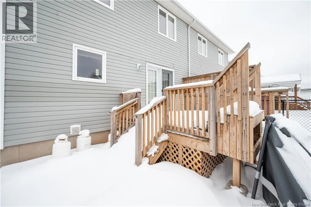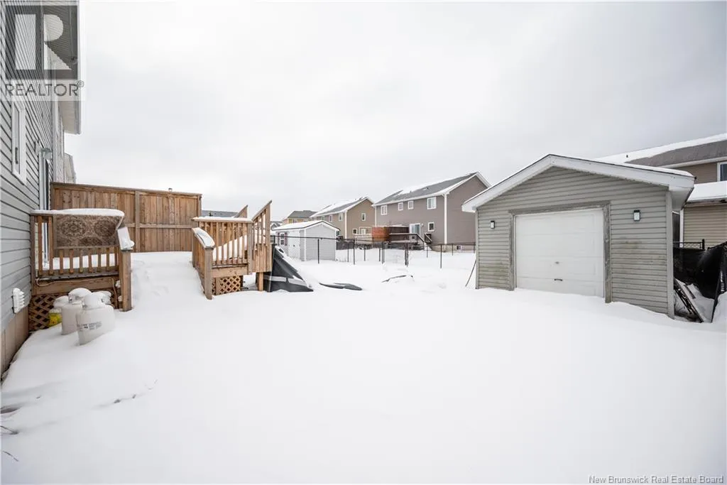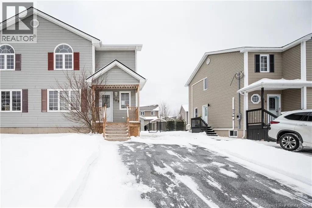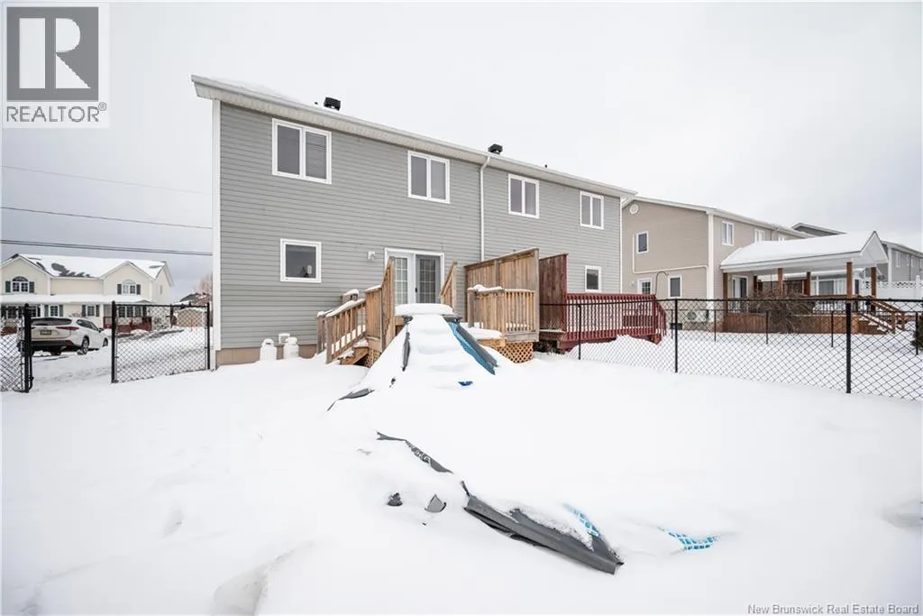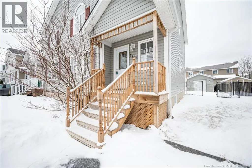 From Twin Oaks Drive, turn on Stoneham Dr, Left onto Hampton Welcome to 109 Hampton, this 2 storey semi detached is located in the ever popular Moncton North. Main level features a 2 piece bathroom with laundry, living room, kitchen with maple cupboards  and dining room with garden doors leading to the back deck. The backyard is fenced in with the deck previously designed for an above ground pool, there is also a large storage shed as well.The 2nd level boasts 3 large bedrooms and a 4 piece bathroom. As you make your way to the basement to the right of the stairs you will find a non conforming bedroom, which would make a great office or gym area. To the left of the stairs is a large family room, perfect for those family movie nights. Home is heated by baseboard electric, and has hardwood floors throughout. Family friendly neighborhood, close to schools and shopping. Property is being sold as is, where is. Contact your REALTOR® today to book a showing. (id:27476)