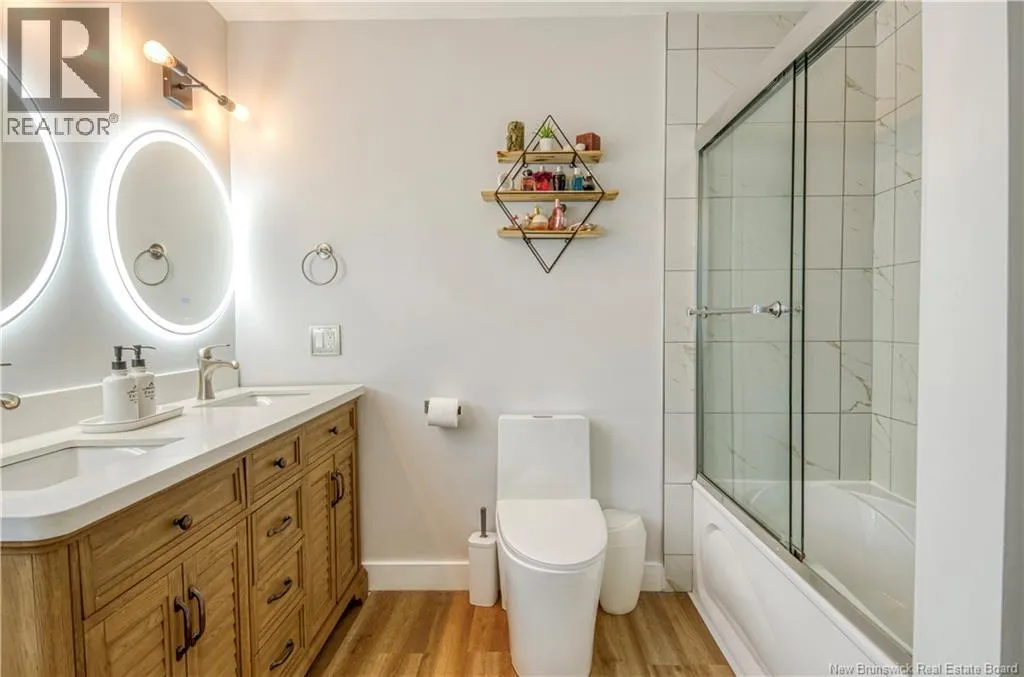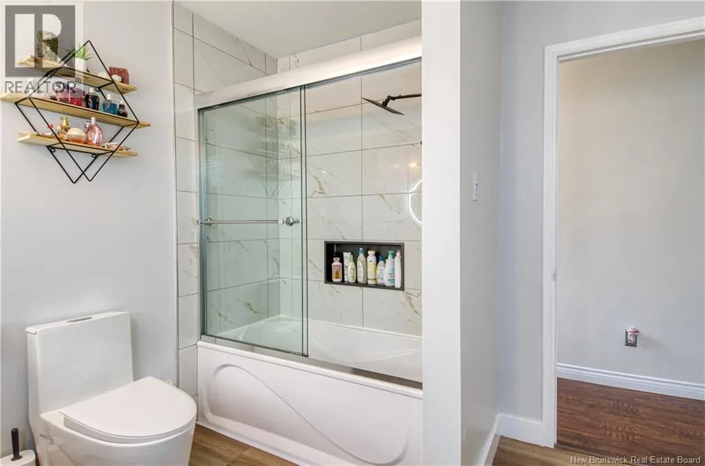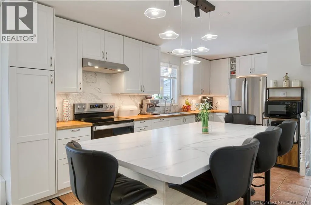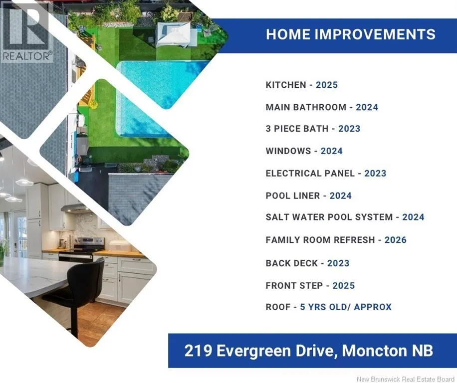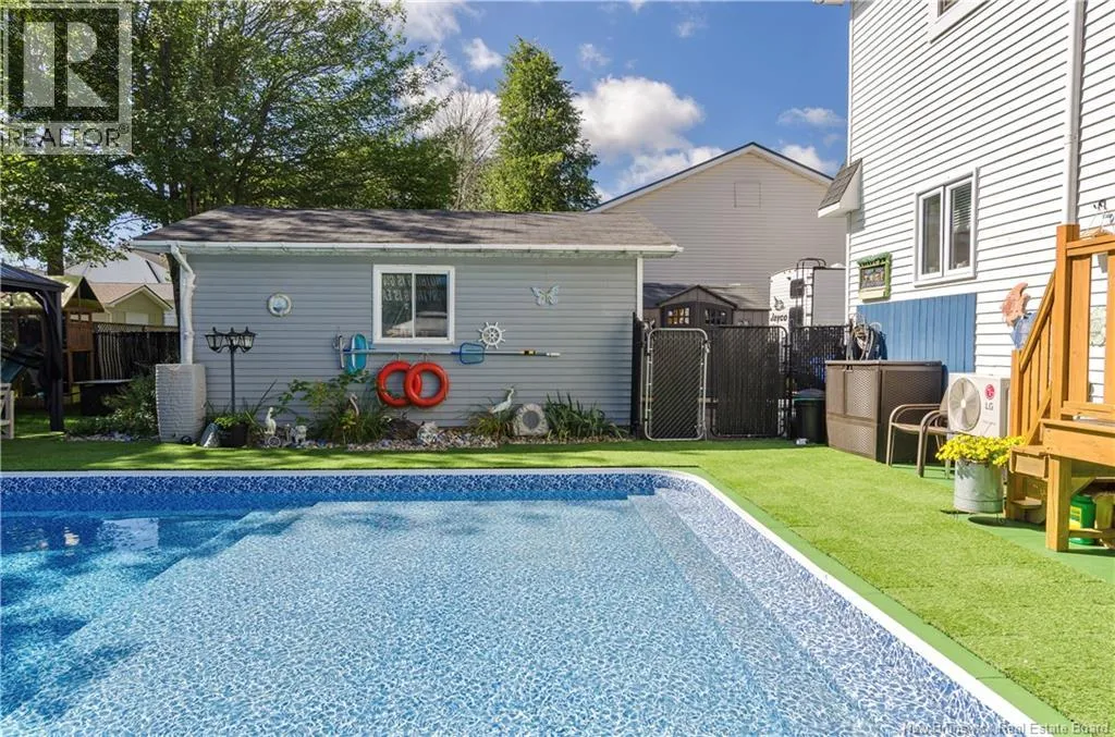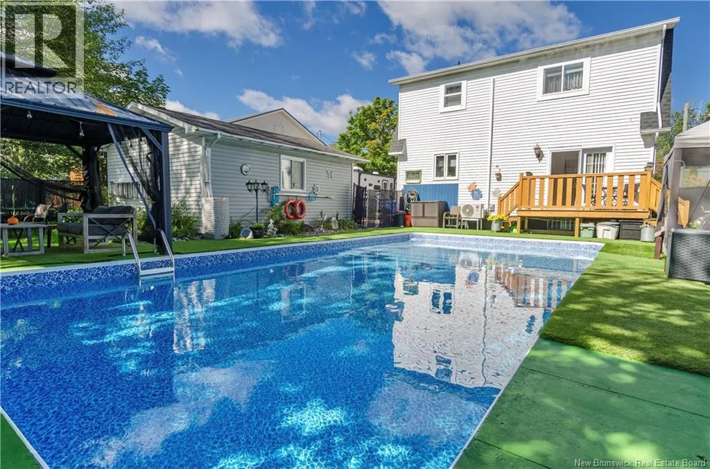 Off of Mountain Road Welcome to Evergreen Park in Moncton NB a highly desirable family-friendly neighbourhood featuring a large community playground steps away and convenient access to the nearby YMCA. This home truly has staycation written all over it, with a stunning heated saltwater in-ground pool and backyard oasis designed for family fun, summer BBQs, and entertaining friends. The main floor showcases a beautiful new kitchen with a large island, perfect for prepping meals and gathering together. The dining area features patio doors leading to the deck overlooking the pool ideal for outdoor dining, relaxing evenings, and weekend get-togethers. A cozy living room completes the main floor. Upstairs offers a spacious primary bedroom, two additional well-sized bedrooms, and a stylishly renovated modern bathroom. The fully finished basement adds valuable living space with a newly renovated family room, a 3-piece bathroom, and a non-conforming bedroom suited for guests, hobbies, or a home office. Two ductless mini-split heat pumps provide efficient comfort year-round. The insulated garage is currently set up as a gym but can easily adapt to your needs. With many improvements over the past four years, this move-in ready home blends comfort, lifestyle, and outdoor enjoyment perfect for making lasting family memories. (id:27476)