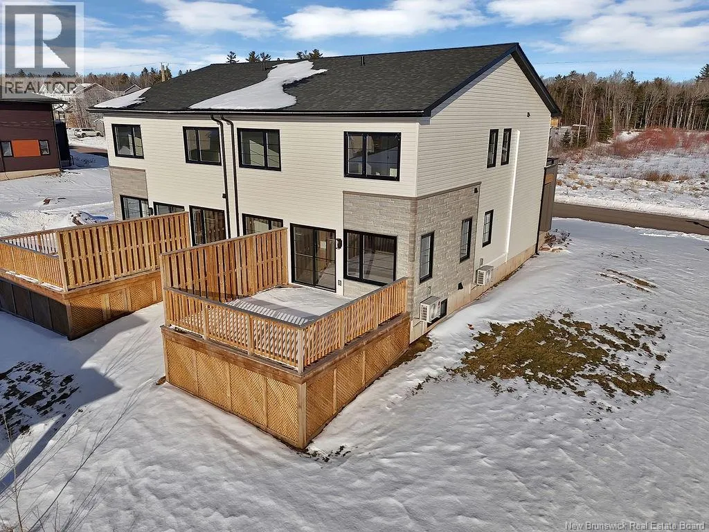 From Ryan, turn on Penrose. Turn left on Lady Russel, and left again on Edington. #126 will be on your left. Welcome to this beautifully designed modern home offering the perfect balance of style and functionality. The property makes a strong first impression with eye-catching curb appeal, a contemporary exterior design, stone and siding details, and a wide double driveway. A bright, flowing main floor creates the perfect setting for gatherings, featuring a contemporary kitchen with smooth-finish cabinetry, quartz countertops, an oversized island, and eye-catching lighting and a Pantry. The Open Concept dining area flows into the sun-filled living room, highlighted by a modern electric fireplace with a tiled feature wall and large windows overlooking the backyard. Upstairs youll find three well-proportioned bedrooms, all with ceiling fans, highlighted by a private primary walk-in closet and an elegant ensuite. A full laundry room on the second floor adds comfort and functionalit.The FULLY FINISHED BASEMENT provides additional living space with a COZY FAMILY ROOM, an EXTRA BEDROOM, and a MODERN 3-PIECE BATHROOM, ideal for guests or a home office.Enjoy outdoor living on the EXTRA-LARGE PRIVATE DECK. Additional highlights include an attached garage, modern light fixtures throughout, two energy-efficient mini-split heat pumps, and finished bathrooms with mirrors installed. Situated in a quiet, family-oriented neighbourhood, this move-in-ready home is designed for todays lifestyle.New Home rebate and NB Power grant to builder on closing.8 Year HOME WARRANTY TO BUYER ON CLOSING! (id:27476)