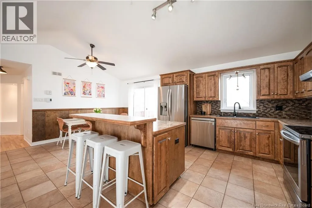 From Mountain Road turn onto Sunshine Drive Welcome to 203 Sunshine Drive, located in the ever-popular Moncton North area. This well-maintained family home offers a paved driveway, fully fenced backyard, and a large storage shedperfect for kids, pets, and all the toys that come with busy family life. Step inside the front door to a spacious living room anchored by a beautiful wood-burning fireplace, WETT-certified in 2022, creating a warm and inviting space to unwind or entertain. Just a few steps up, the main level features a bright kitchen and dining area that overlooks the living room, allowing effortless conversation and connection when hosting family and friends. A sliding patio door off the dining area provides direct access to the back deck, ideal for summer BBQs and outdoor living. Down the hallway, youll find three generous-sized bedrooms along with a convenient Jack-and-Jill style 4-piece bathroom, offering functional family living all on one level. The lower level expands your living space with a secondary rec room, a second full bathroom with laundry, a non-conforming bedroom, and a large additional room that was previously used as a games room and is currently set up as a spacious bedroom, perfect for teens, guests, or a home office setup. With flexible living space, a great backyard, and a prime location close to schools, amenities, and everything Moncton North has to offer, this home is an excellent opportunity for families looking to put down roots in a sought-after neighbourhood. (id:27476)