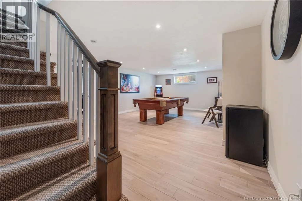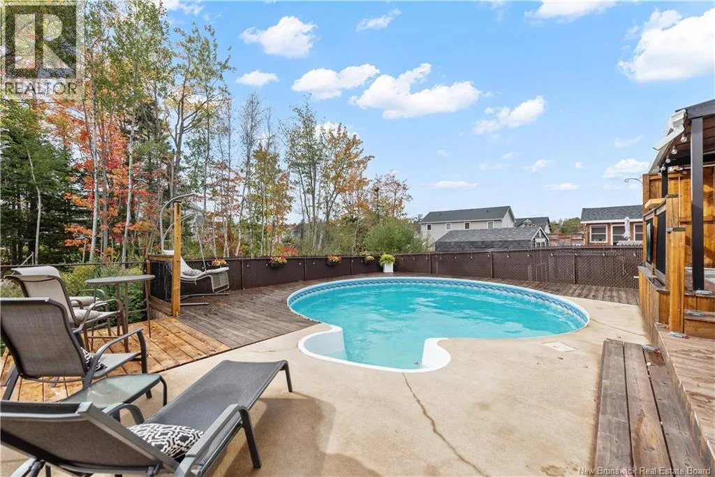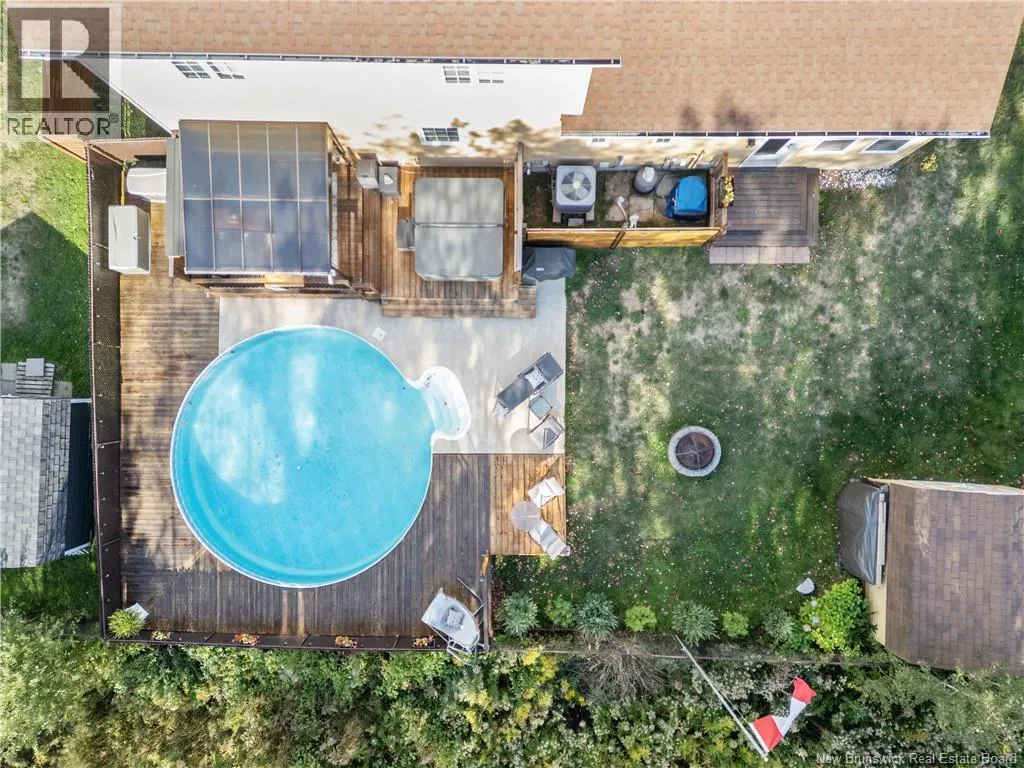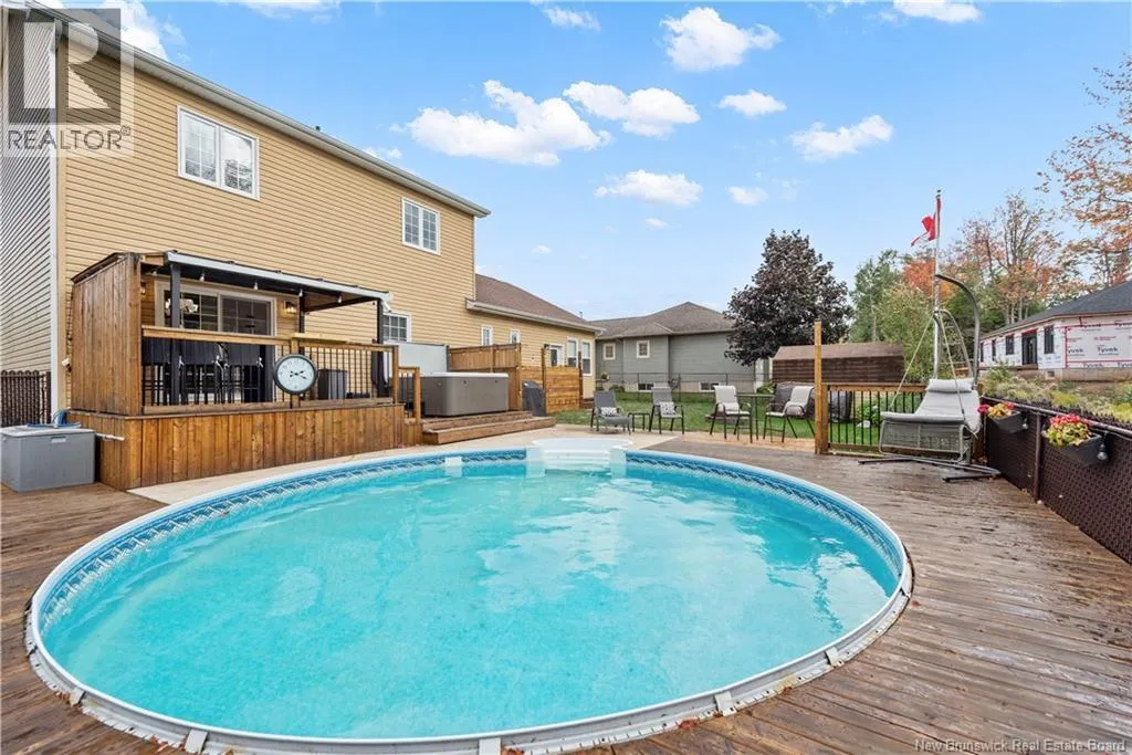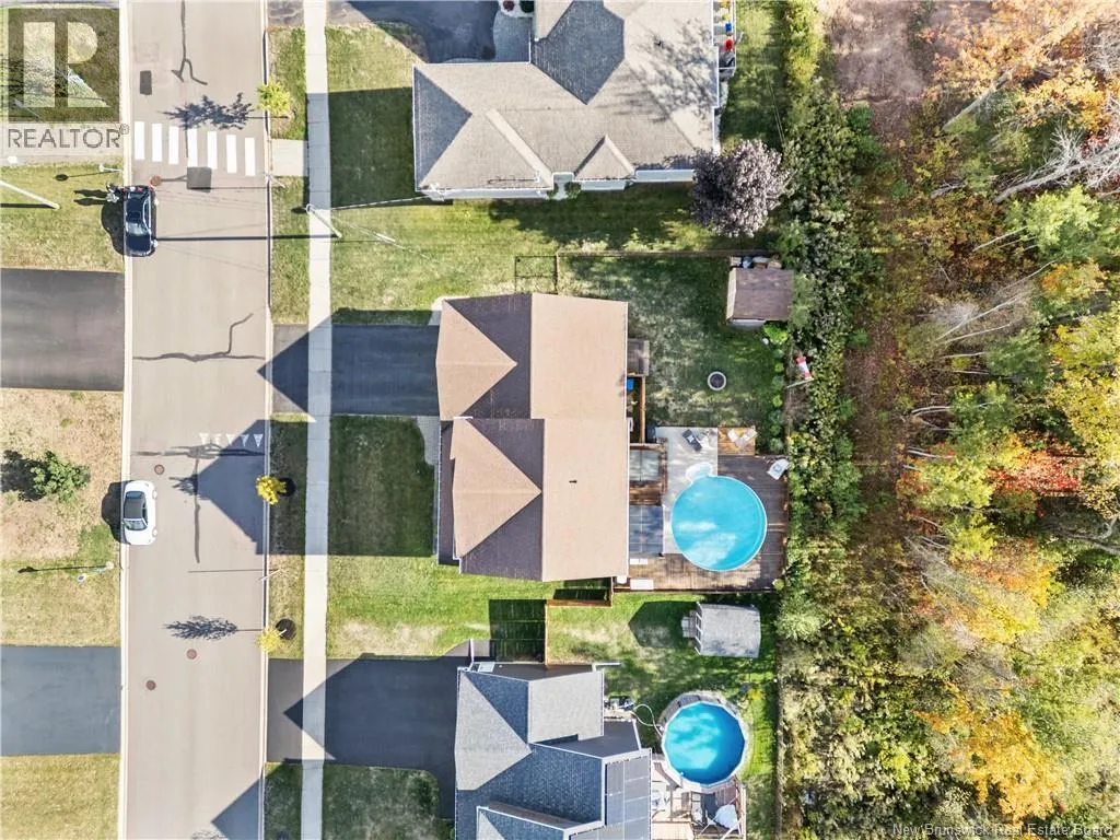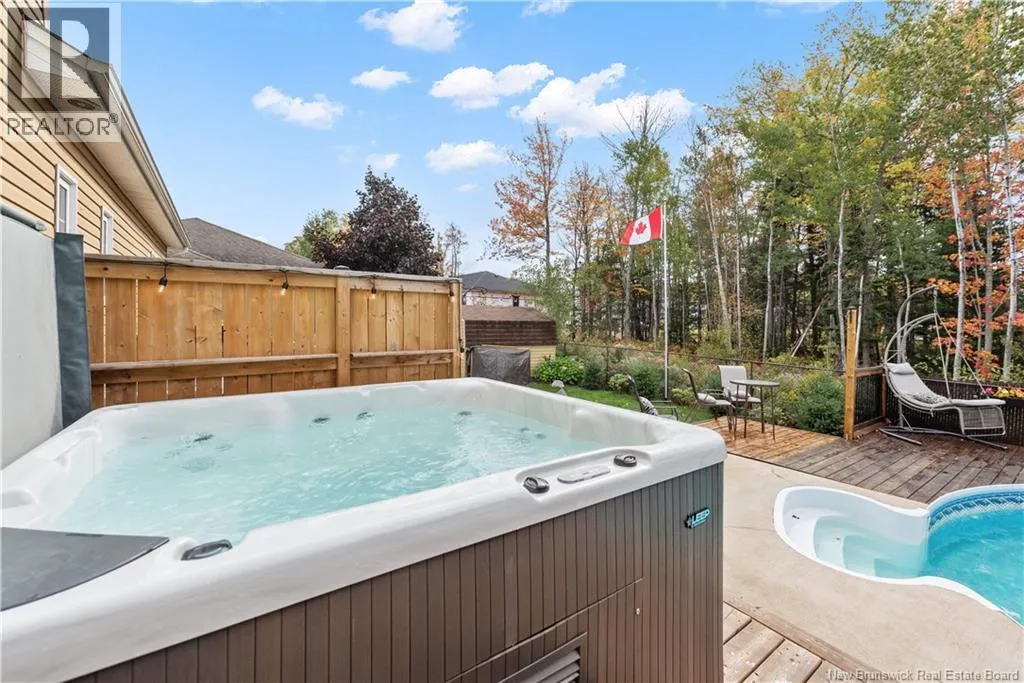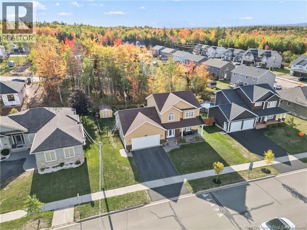 Shediac Rd to Glengrove, turn left Ripplewood and then right onto Erinvale 165 Erinvale is a spacious two-storey 3 bedroom home in the desirable Grove Hamlet subdivision, close to schools, parks, and amenities. The entire interior was freshly repainted last year, giving the home a bright, updated feel throughout. The main level offers a large kitchen with quartz countertops, an extra-large island with generous stone surface and a brand-new KitchenAid induction range. A bright dining area, powder room, fully updated laundry room with new washer and dryer and a beautiful sunroom overlooking the backyard complete this level. The living room features a natural gas fireplace with a stone accent wall, and the double garage provides excellent storage and convenience. The home is also equipped with central air and an owned on-demand natural gas hot water heater and natural gas furnace. Upstairs, youll find three bedrooms and two full bathrooms, including the primary suite with a walk-in closet and updated ensuite. The finished basement includes a spacious TV/games room with in-floor heating, a spare bedroom, and a newly added half bath. Outside, the home offers a new composite front veranda, a fully fenced backyard, a saltwater pool and a brand-new hot tub. Bathrooms throughout have been updated with new cabinets, counters, and sinks, creating a perfect combination of comfort, function and style in one of Monctons most popular neighbourhoods. (id:27476)