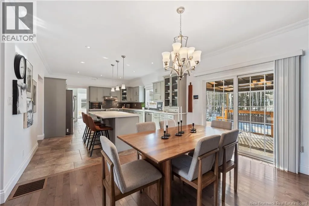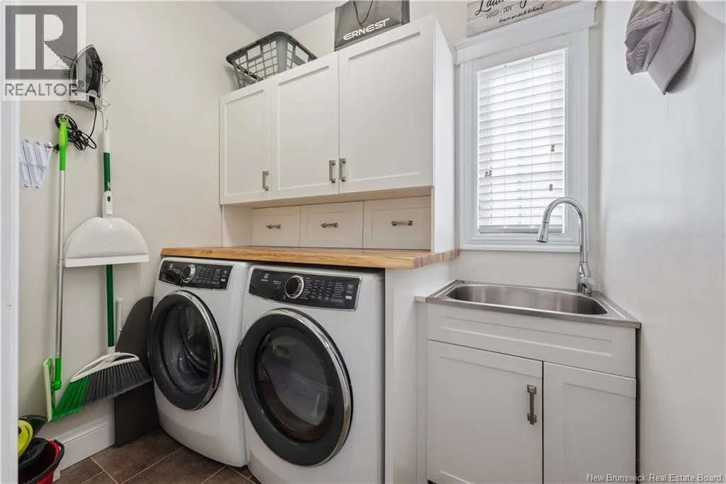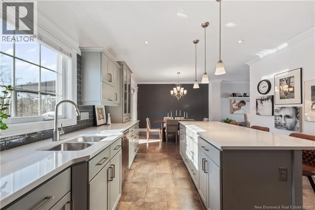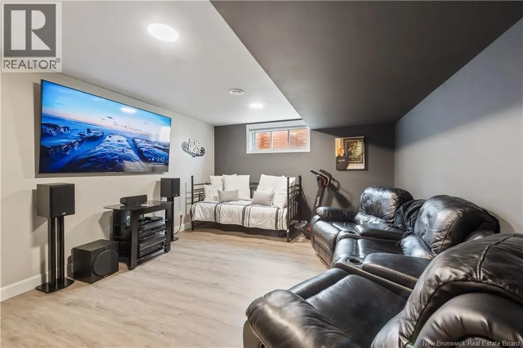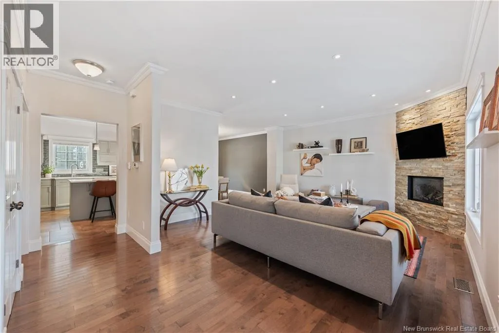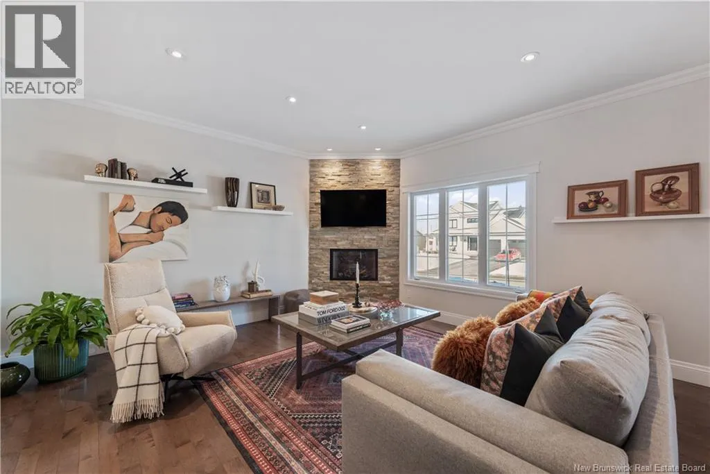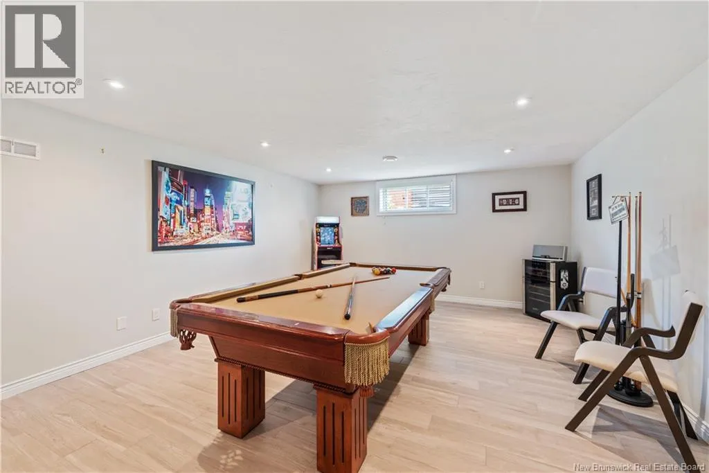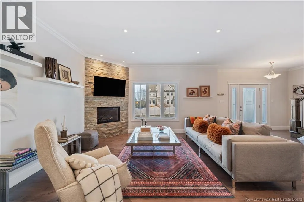 Shediac Rd to Glengrove, turn left Ripplewood and then right onto Erinvale 165 Erinvale is a spacious two-storey 3 bedroom home in the desirable Grove Hamlet subdivision, close to schools, parks, and amenities. The entire interior was freshly repainted last year, giving the home a bright, updated feel throughout. The main level offers a large kitchen with quartz countertops, an extra-large island with generous stone surface and a brand-new KitchenAid induction range. A bright dining area, powder room, fully updated laundry room with new washer and dryer and a beautiful sunroom overlooking the backyard complete this level. The living room features a natural gas fireplace with a stone accent wall, and the double garage provides excellent storage and convenience. The home is also equipped with central air and an owned on-demand natural gas hot water heater and natural gas furnace. Upstairs, youll find three bedrooms and two full bathrooms, including the primary suite with a walk-in closet and updated ensuite. The finished basement includes a spacious TV/games room with in-floor heating, a spare bedroom, and a newly added half bath. Outside, the home offers a new composite front veranda, a fully fenced backyard, a saltwater pool and a brand-new hot tub. Bathrooms throughout have been updated with new cabinets, counters, and sinks, creating a perfect combination of comfort, function and style in one of Monctons most popular neighbourhoods. (id:27476)