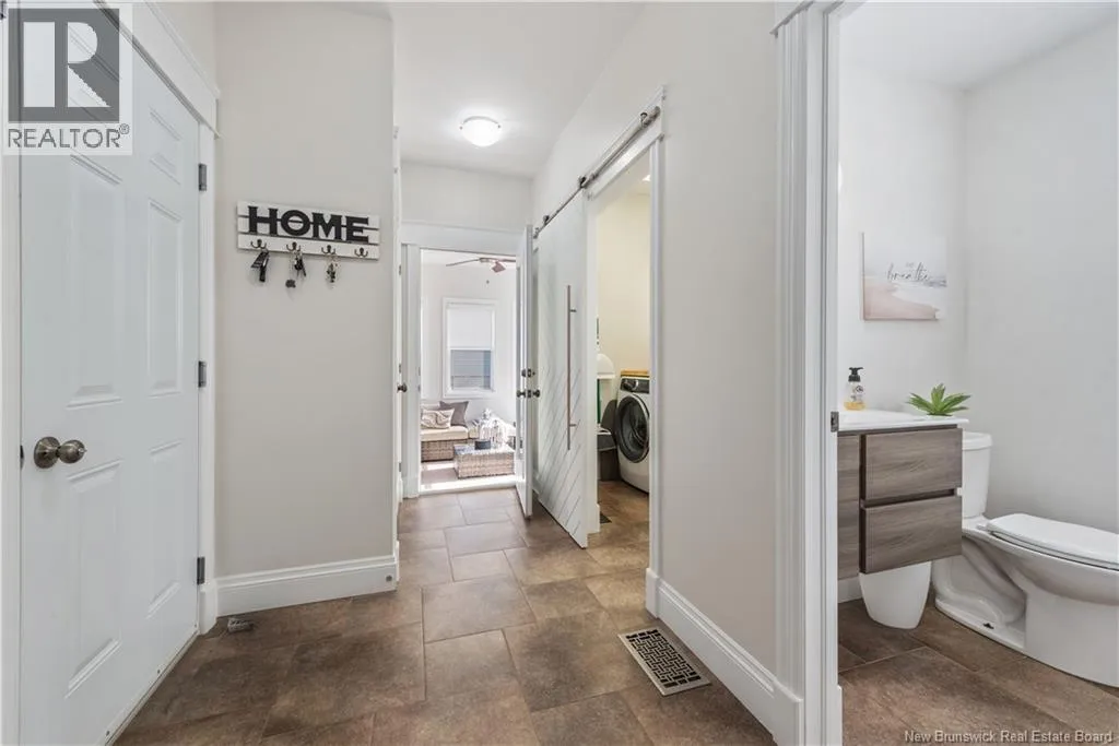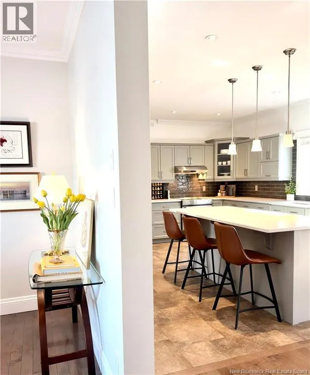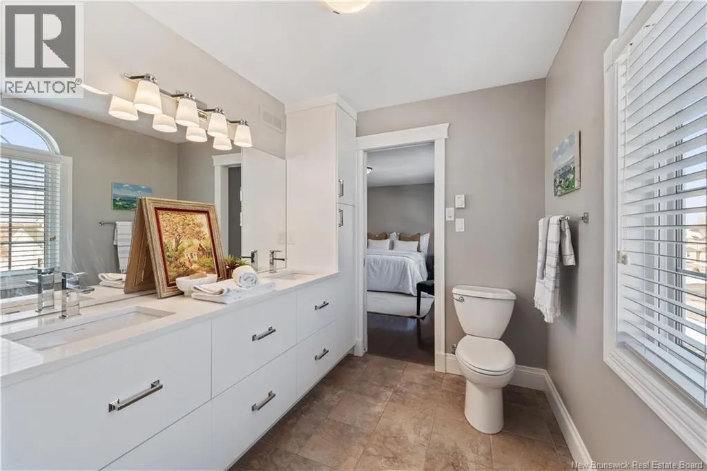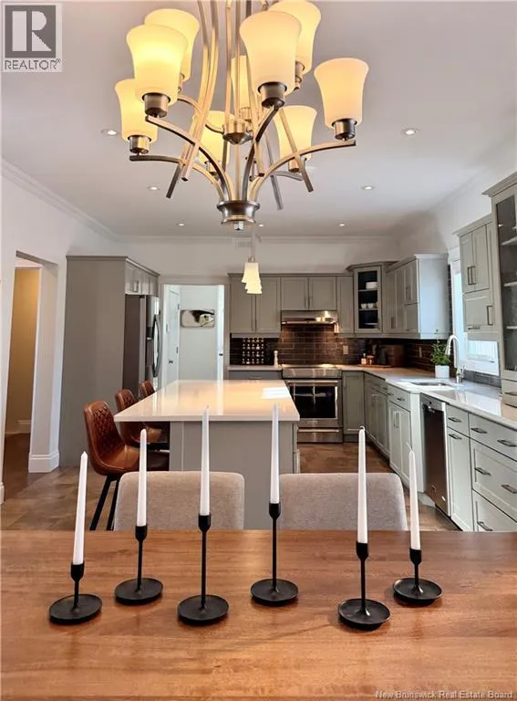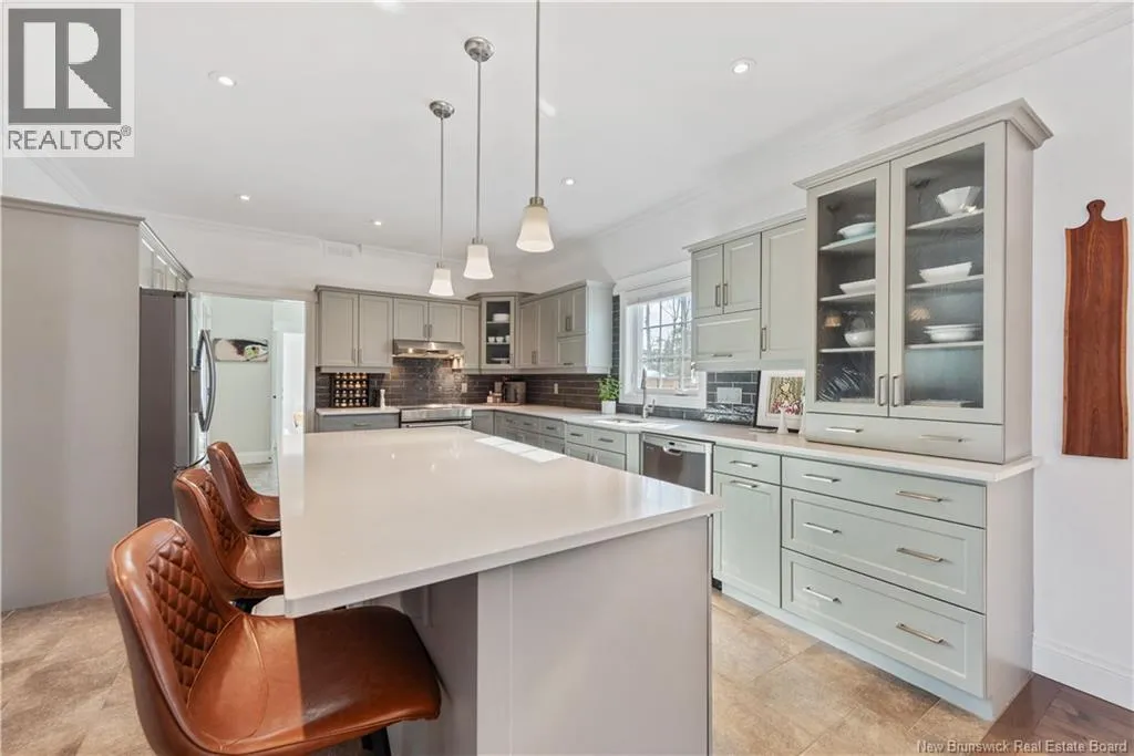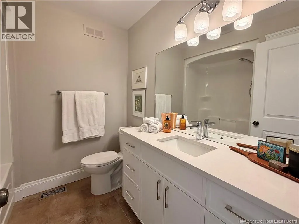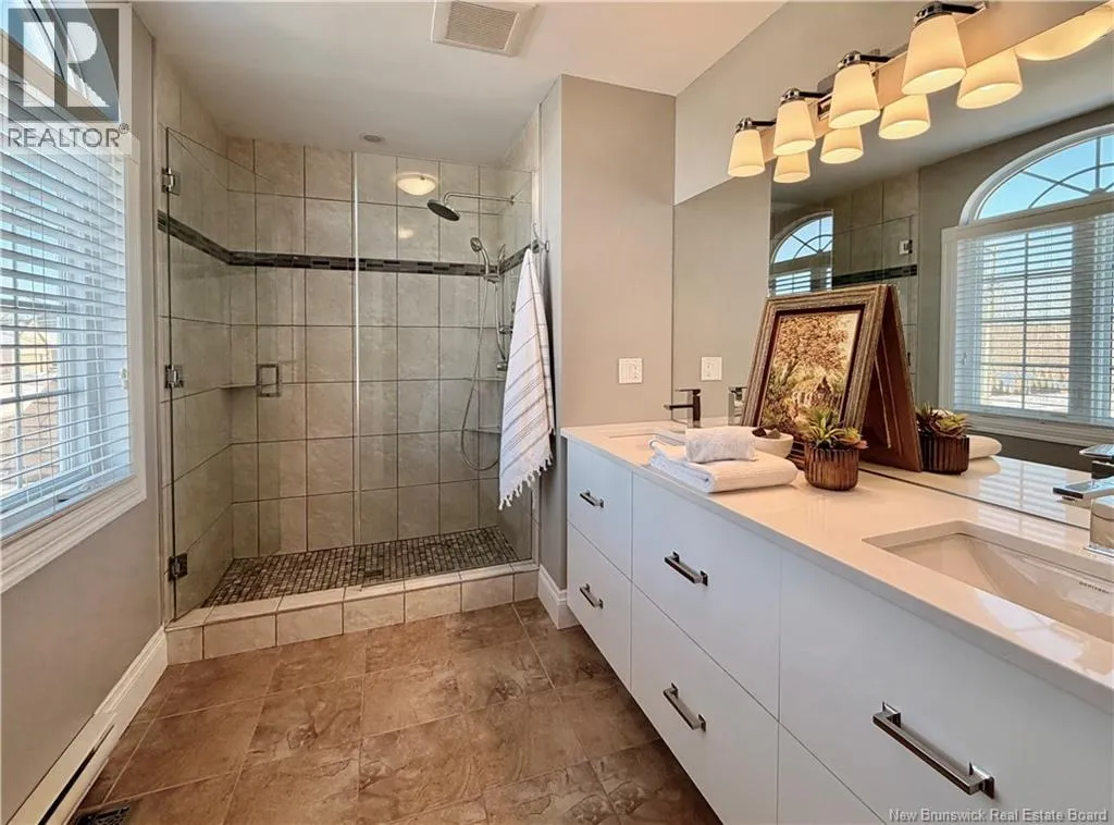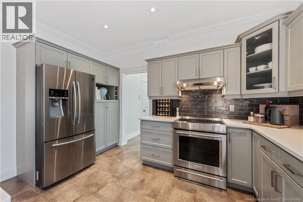 Shediac Rd to Glengrove, turn left Ripplewood and then right onto Erinvale 165 Erinvale is a spacious two-storey 3 bedroom home in the desirable Grove Hamlet subdivision, close to schools, parks, and amenities. The entire interior was freshly repainted last year, giving the home a bright, updated feel throughout. The main level offers a large kitchen with quartz countertops, an extra-large island with generous stone surface and a brand-new KitchenAid induction range. A bright dining area, powder room, fully updated laundry room with new washer and dryer and a beautiful sunroom overlooking the backyard complete this level. The living room features a natural gas fireplace with a stone accent wall, and the double garage provides excellent storage and convenience. The home is also equipped with central air and an owned on-demand natural gas hot water heater and natural gas furnace. Upstairs, youll find three bedrooms and two full bathrooms, including the primary suite with a walk-in closet and updated ensuite. The finished basement includes a spacious TV/games room with in-floor heating, a spare bedroom, and a newly added half bath. Outside, the home offers a new composite front veranda, a fully fenced backyard, a saltwater pool and a brand-new hot tub. Bathrooms throughout have been updated with new cabinets, counters, and sinks, creating a perfect combination of comfort, function and style in one of Monctons most popular neighbourhoods. (id:27476)
