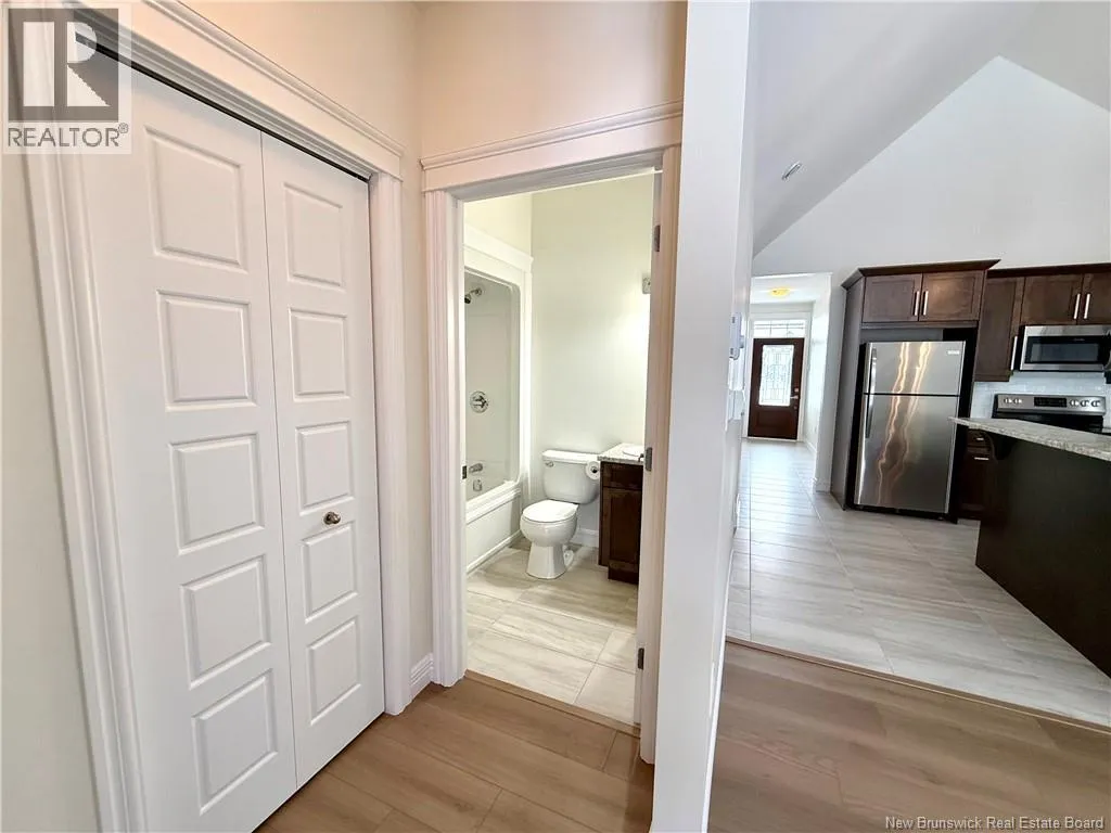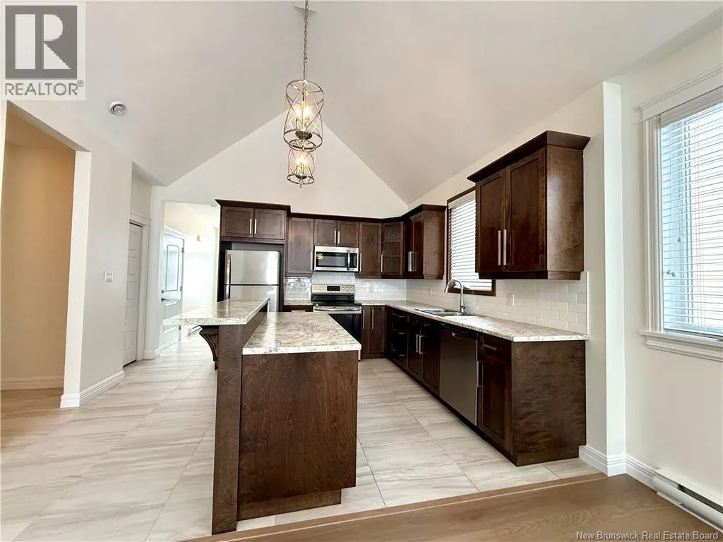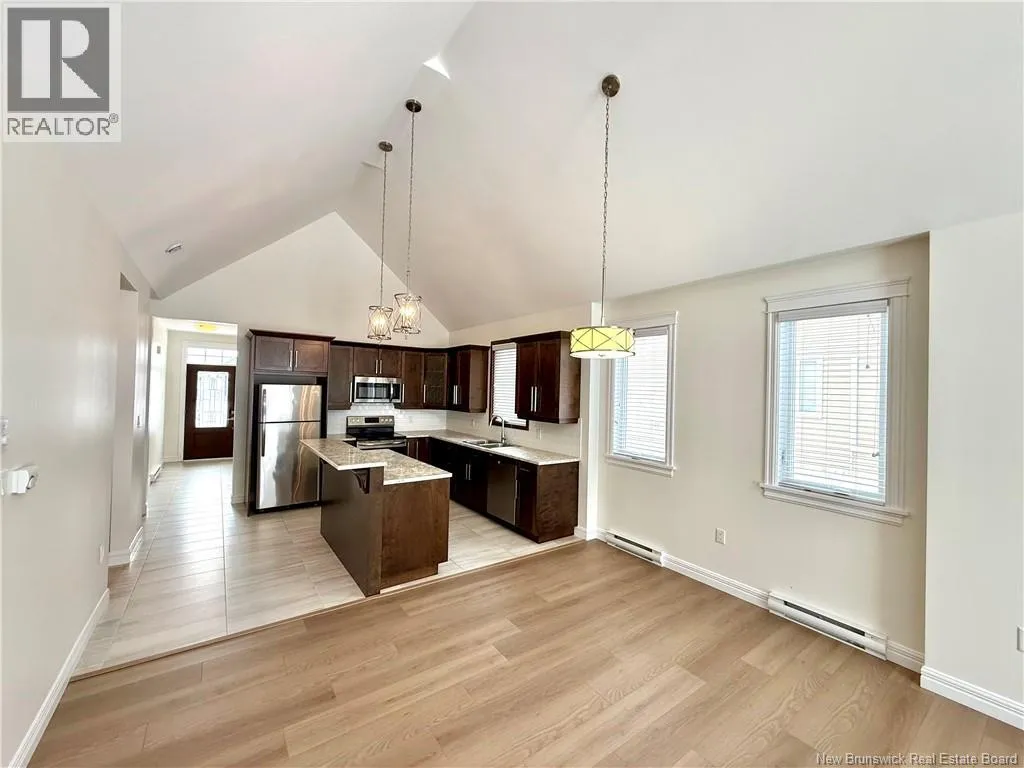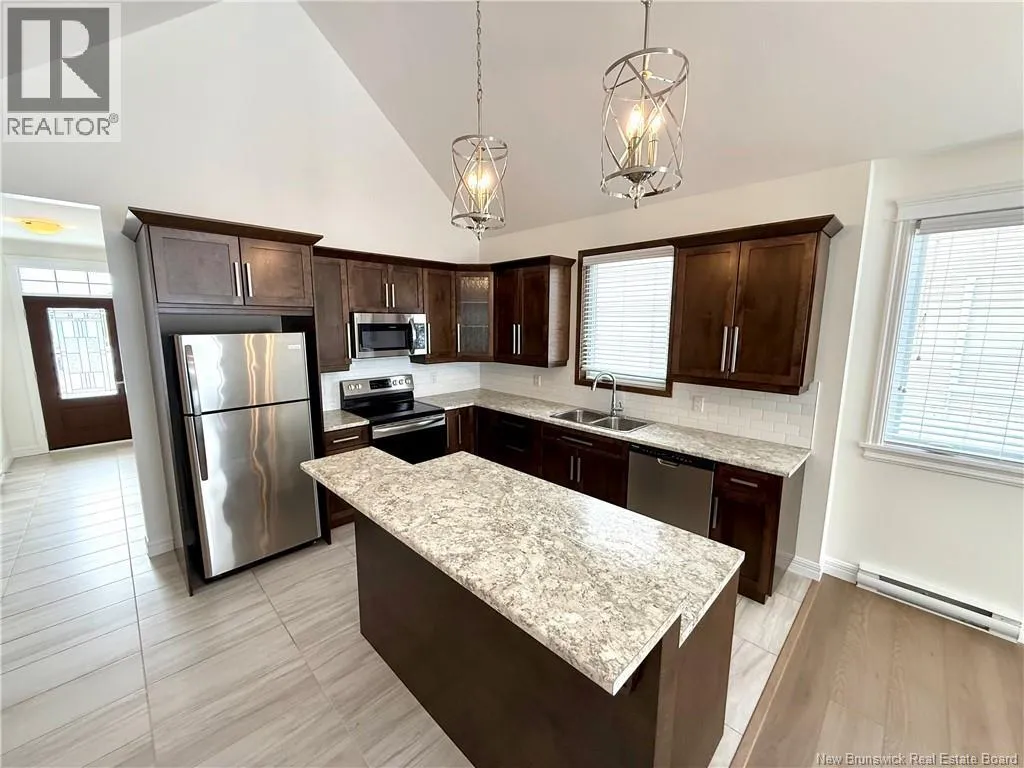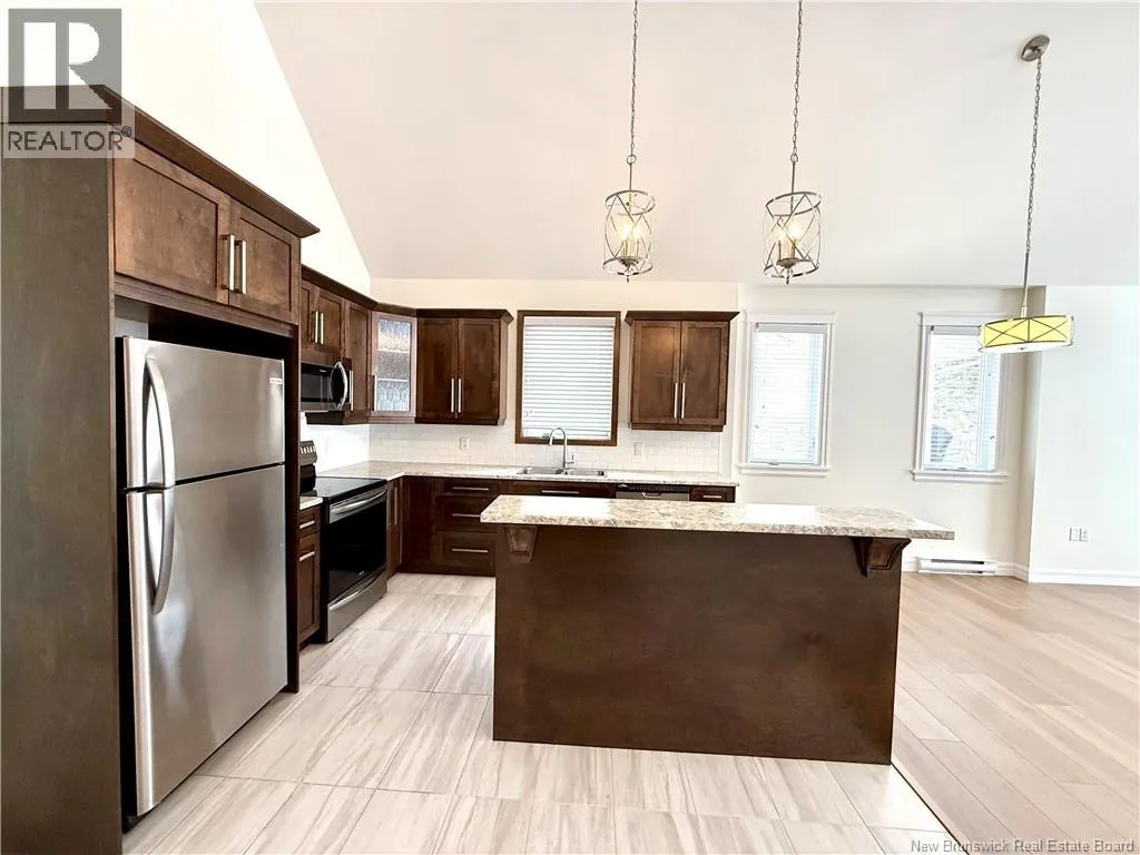Take Gorge Road off Mountain Road, left onto Chateau (across from Crandall University), then take second left onto Auberry EXECUTIVE ONE-LEVEL SEMI IN MOUNTAIN WOODS RARE SLAB BUNGALOW! Welcome to 53 Auberry Street, in Village on the Greena quiet street in North Monctons prestigious Mountain Woods community, steps from the golf course. This executive semi offers 1,200 sq. ft. of stylish, maintenance-free living on one convenient level and is vacant for quick closing. A spacious front entry opens to a bright, open-concept living and dining area with a vaulted ceiling, large windows, and patio doors leading to the back deck, perfect for relaxing or entertaining. The custom kitchen features excellent cabinetry and generous counter space, ideal for the home chef. A main floor laundry room adds everyday ease. The primary suite offers a peaceful retreat with a double closet and private ensuite. A second bedroom, ideal for guests or a home office and a full guest bath complete the layout. Outside, enjoy the covered front porch, paved driveway, and fully landscaped yard. Efficient climate control comes from a ductless mini-split heat pump/AC plus electric baseboard heating. Perfect for those seeking luxury, simplicity, and location, this home lets you downsize without compromise in one of Monctons most desirable neighbourhoods. Appliances included;PROPERTY TAXES BASED ON NON-OWNER OCCUPANCY RATE, don't miss this rare slab-on-frost-wall gembook your private showing today! (id:27476)