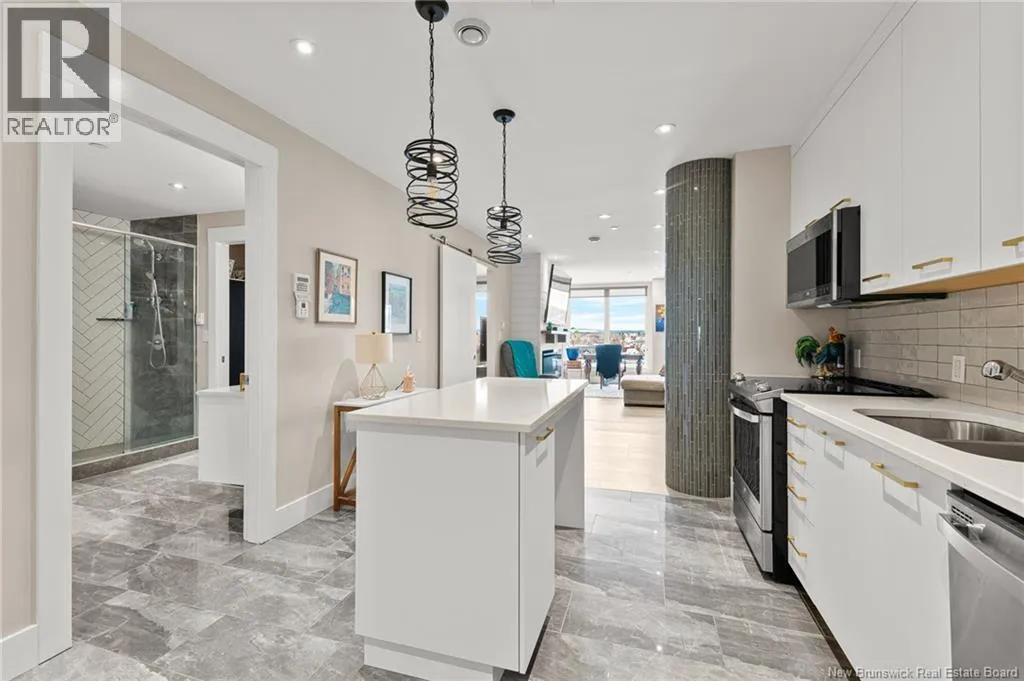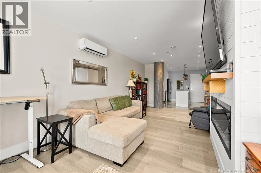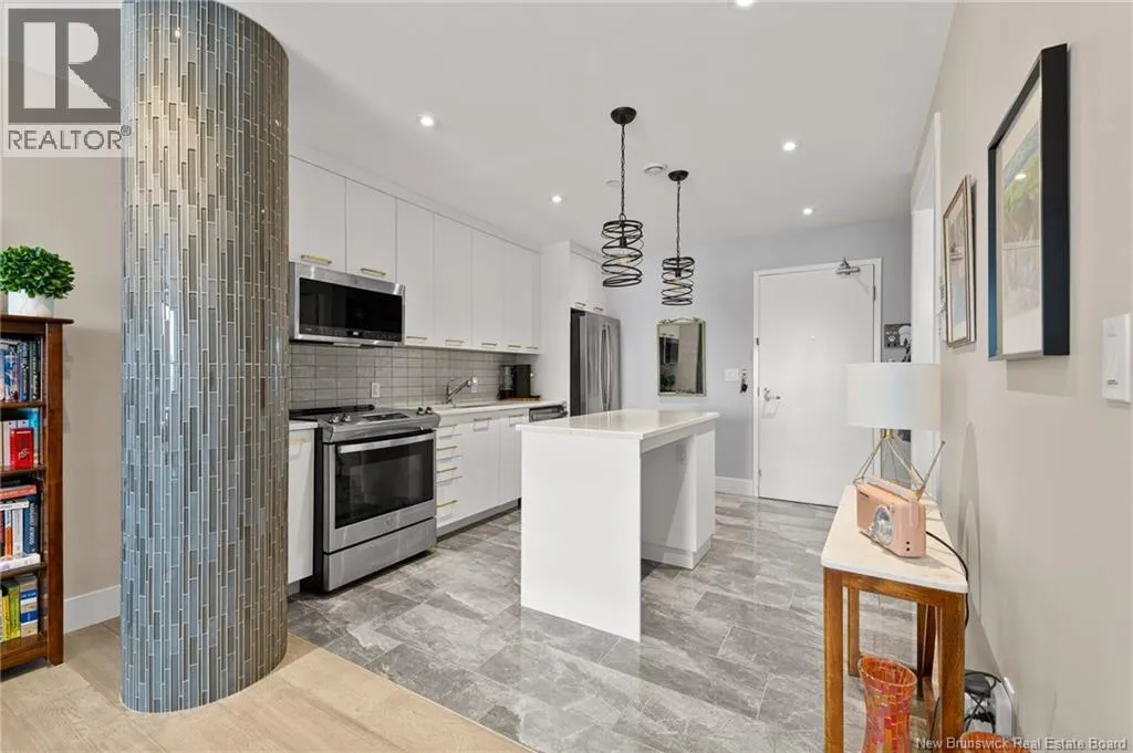 Corner of Queen Street & Lester Avenue, behind City Hall & Pump House Brew Pub. LUXURY DOWNTOWN LIVING at Monctons premier condo residence, FiveFive! This 7th-floor 1-bedroom, 1-bathroom unit offers a refined, low-maintenance lifestyle with exceptional amenities and walkable access to everything downtown. Inside, enjoy gleaming tile floors and an open-concept kitchen, dining, and living area featuring white cabinetry, gold hardware, and ample storage. The living room and bedroom are filled with natural light and offer sweeping north-facing city views, with a private balcony perfect for evening sunsets. The walkthrough closet connects to a spacious bathroom with a custom walk-in shower. Additional features include in-unit laundry, storage closet, and an energy-efficient ductless heat pump. FiveFive offers unmatched convenience and luxury, including underground parking, storage locker, fitness centre, residents lounge, exclusive rooftop patio, and secure access. Enjoy direct access to Bar55 Café, Gahan House Hub City, and the Palette Rooftop Bar & Patio. With elegant common areas (including a residents-only entertainment & relaxation area and exclusive rooftop patio on the 9th Floor (reservable for your own private events), guest intercom, mail facilities, and garbage chutes on every floor, this secure building delivers comfort, style, and true downtown ease. Combined with Canvas Moncton Tapestry Collection by Hilton Hotel, this offering provides every reason why this is the investment you've been waiting for. Schedule a guided tour today! (id:27476)