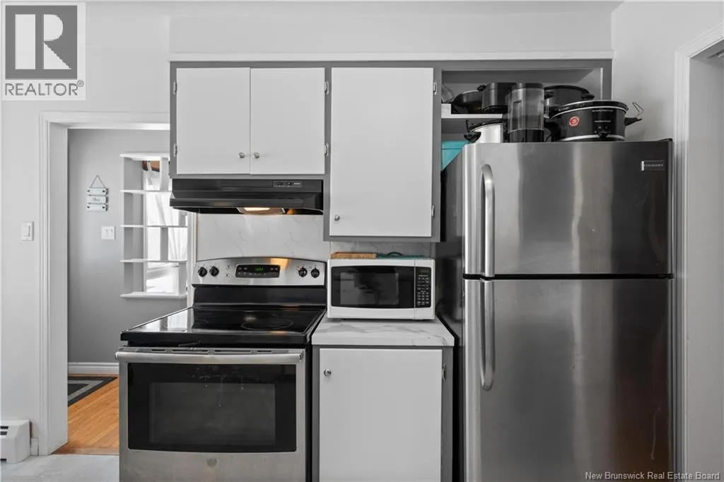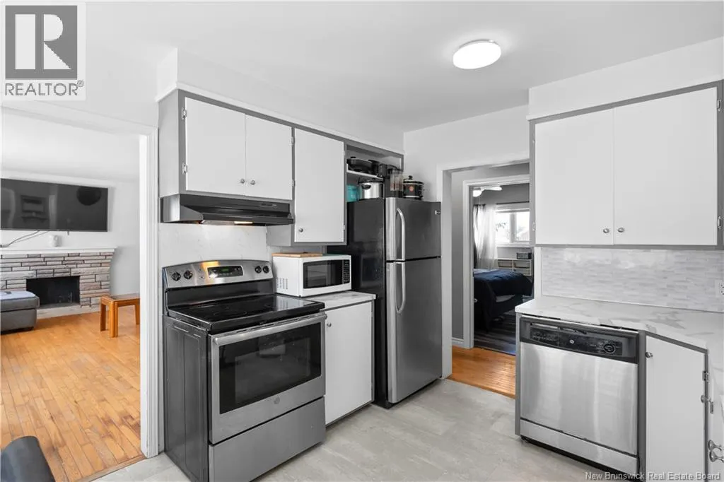 Head on Salisbury Road, Bell St is on the left just before Petro Canada Minutes to Downtown | Quiet Surroundings | Detached Garage. Welcome to 58 Bell Street in Moncton West, just off Salisbury Road; a well-established neighborhood close to shopping, schools, and everyday amenities, while offering quick access to NB-15 & Edinburgh Drive for easy commuting. This move-in ready bungalow offers a practical layout and great value, making it an excellent starter home or investment opportunity. The main floor features 3 bedrooms, including a spacious primary bedroom with double closets, a bright 4-piece bathroom, and a welcoming living room with original hardwood flooring and a large picture window that fills the space with natural light. The kitchen is equipped with stainless steel appliances, ample cabinetry, and flows into a bright dining area perfect for everyday family meals. The finished lower level adds flexibility with a non-conforming 4th bedroom, family room, Rec room, and a 3-piece semi-finished bathroom with laundry. With the side entrance and R2 zoning, theres potential to explore an in-law suite or income-generating options. Outside, youll appreciate the large paved driveway, partially fenced private backyard, and the oversized detached garage now equipped with a new mini-split heat pump offering excellent space for storage, hobbies, or a workshop. If youve been searching for an affordable home in a great location with room to grow and future potential, this property is worth a closer look. (id:27476)