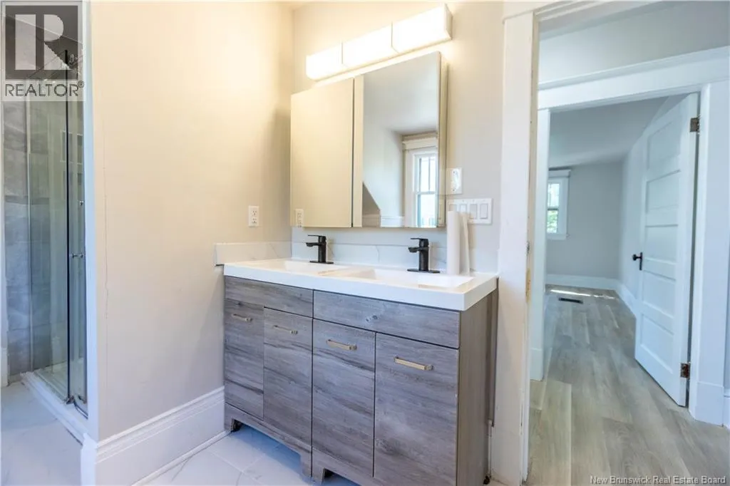 From Mountain Rd, turn left on Bonaccord St and then right on John St Welcome to 73 John St, a charming and well-maintained two-storey home located in the heart of Moncton. This inviting property blends classic character with extensive modern updates, including major renovations completed in 2022 providing peace of mind for the next owner. Upgrades include new plumbing, new electrical, new French drain system, new washrooms, new flooring, new deck, and new roof shingles, along with many other improvements.The home features a welcoming front porch and a fenced backyard, perfect for relaxing, entertaining, and enjoying outdoor gatherings with added privacy.Inside, high ceilings and an open-concept main floor create a bright and spacious atmosphere, seamlessly connecting the living room, dining area, and updated kitchen. The kitchen offers modern finishes and a large island, ideal for both everyday living and entertaining.The second floor includes three bedrooms, with two spacious rooms and one smaller bedroom, along with a beautiful five-piece bathroom featuring a stand-up shower, soaker tub, and double sinks.The basement provides ample storage space, adding to the homes functionality.Conveniently located close to many amenities, including Moncton City Hospital, Victoria Park, and Edith Cavell School, as well as restaurants, grocery stores, and quick access to Wheeler Boulevard and major highways.Book your private showing today (id:27476)