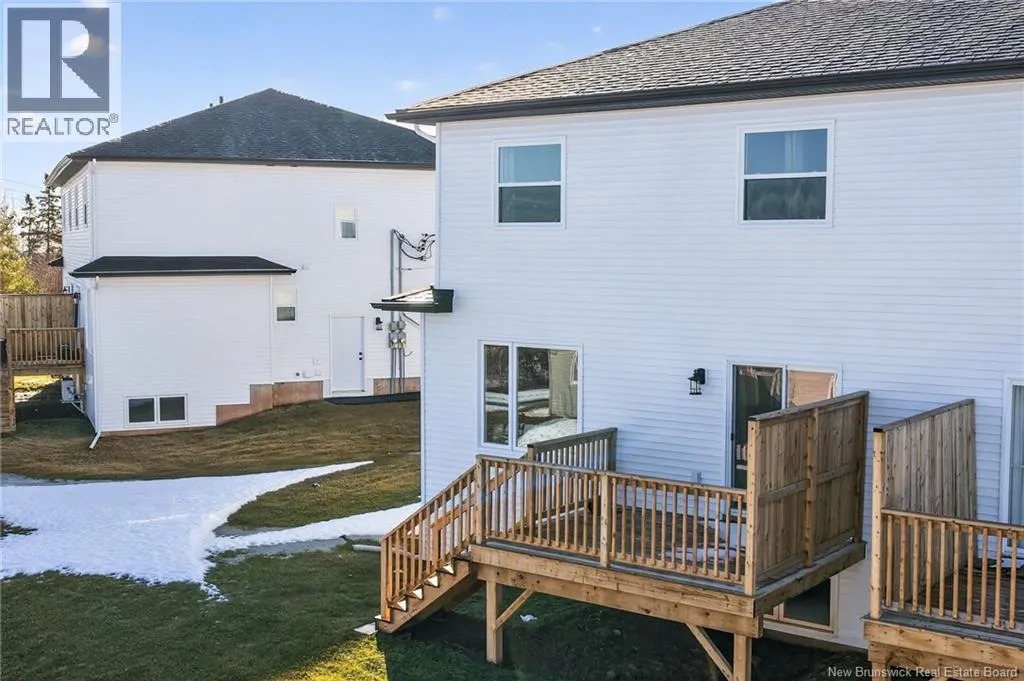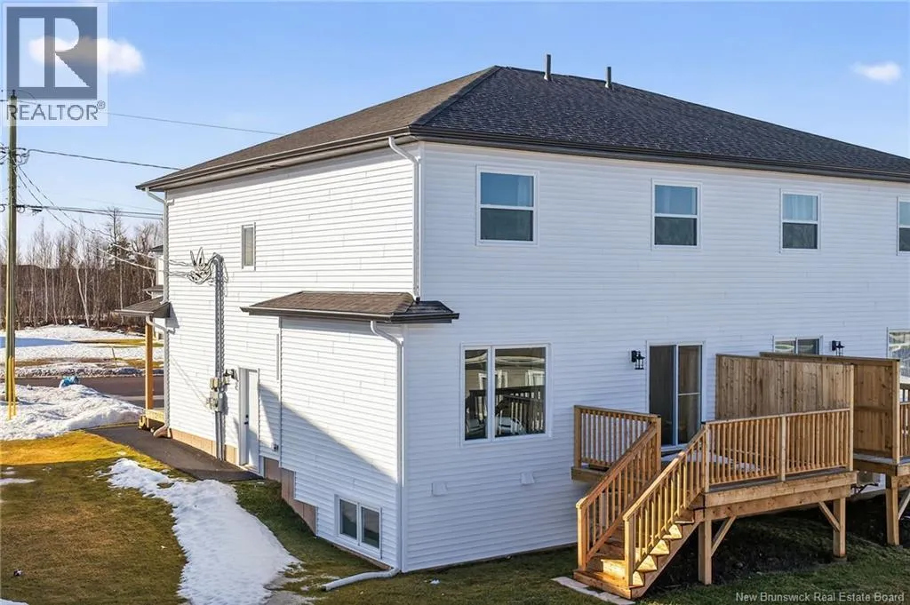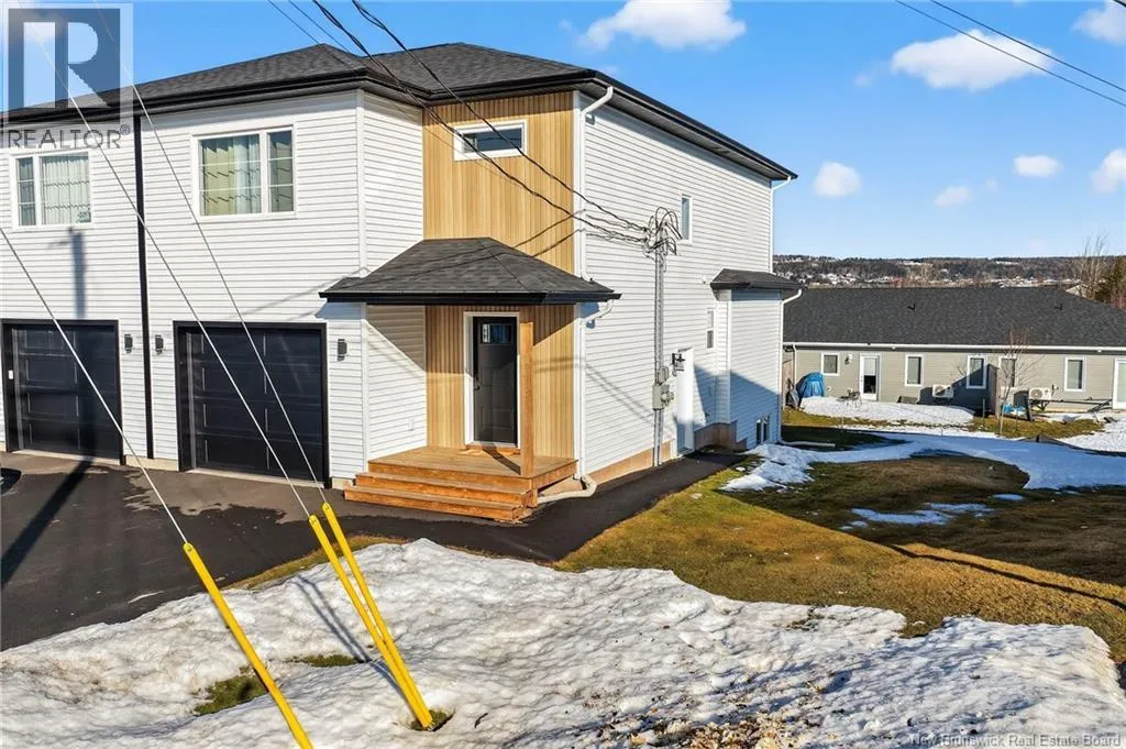 From Mountain Rd: Head North towards Ryan Rd. Turn Right onto Ryan Rd. Turn Left onto Satara Dr. Turn Right onto Teaberry Ave. Welcome to this beautiful 2025 semi-detached home in desirable Moncton North. This modern two-storey offers 3 bedrooms on the second floor, including a primary bedroom with ensuite and walk-in closet, plus the added convenience of second-floor laundry and a full main bathroom. Main Floor has a nice foyer, open concept kitchen, dining and living space with electric fireplace. The fully finished basement features a separate entrance and an in-law suite complete with kitchen, bedroom, and full bathroom, making it ideal for extended family or rental potential. Additional highlights include attached garage, a paved driveway and transferable LUX New Home Warranty for added peace of mind. Brand new appliances with 4 year warranty. Located close to schools, shopping, restaurants, and all Moncton North amenities, this property is a fantastic opportunity to own a nearly new home with income potential. (id:27476)