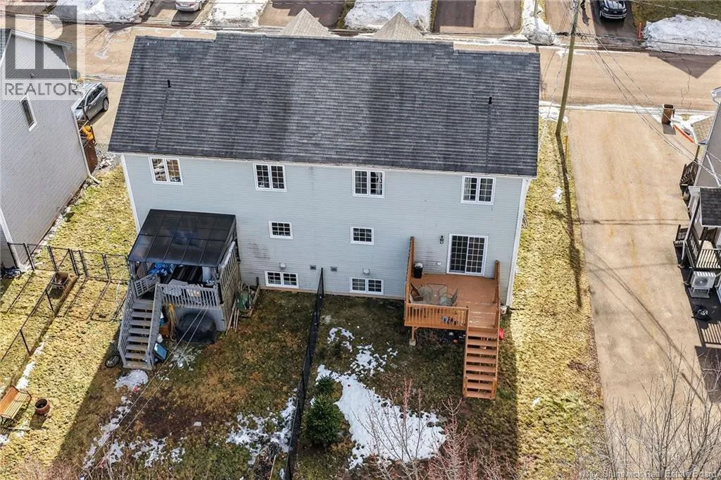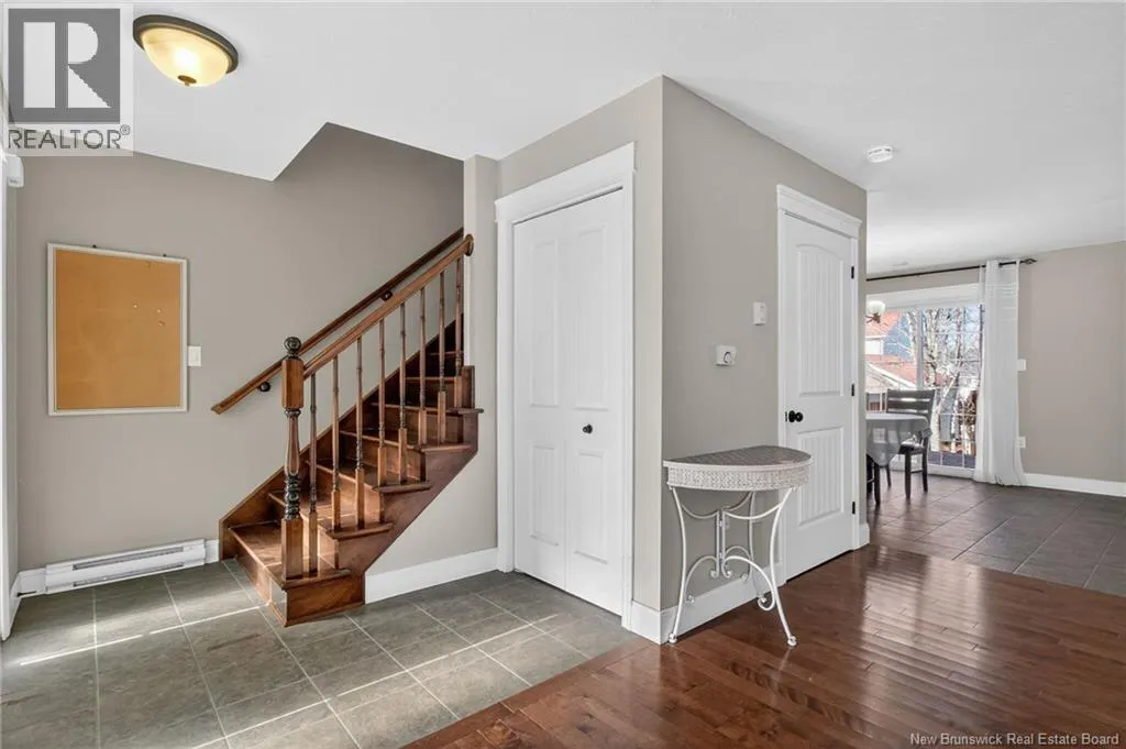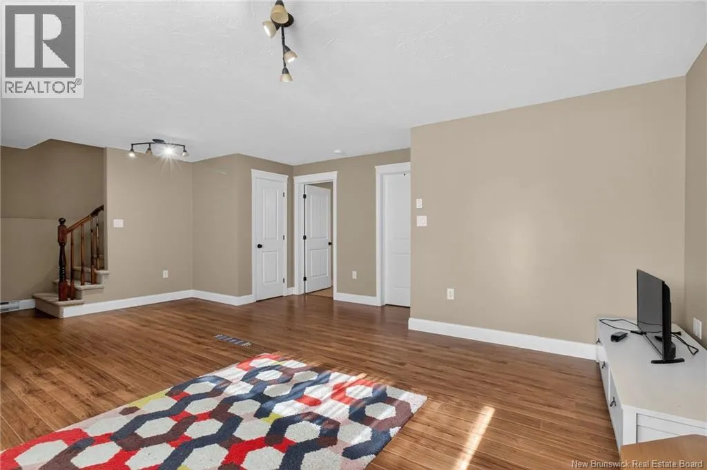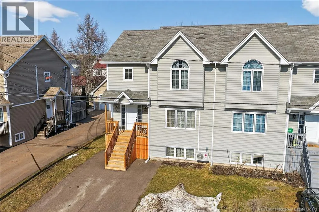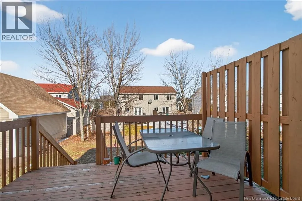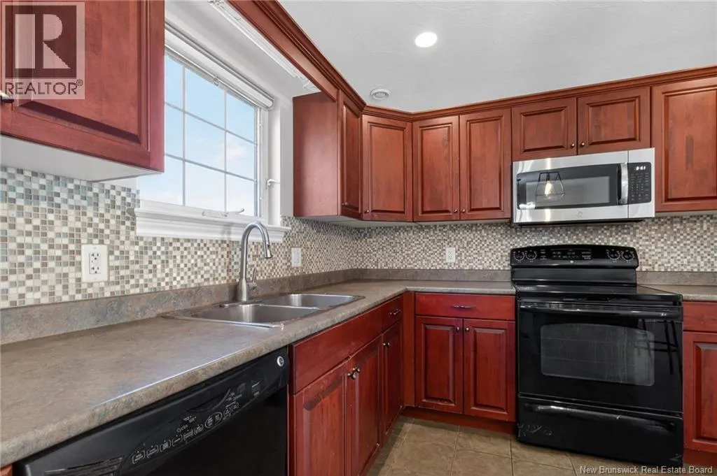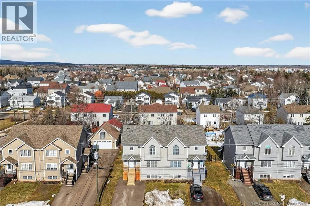 From Mountain Road, turn onto Hildegard Drive. Turn right onto Rennick Road, left onto Holland Drive, then left onto Aspenrose Court. The property will be on the left. Welcome to this well-maintained semi-detached home located on a quiet cul-de-sac in Moncton North. The property features a double paved driveway, attractive landscaping, and a backyard with mature trees offering privacy. Inside, youll find a spacious living room that flows into a bright kitchen with cherry wood cabinets, island, backsplash, dishwasher, and a built-in microwave. The large dining area includes patio doors leading to a 12 x 12 deck, perfect for outdoor enjoyment. The upper level offers a primary bedroom with vaulted ceiling and walk-in closet, two additional bedrooms, and a 4-piece bathroom with a convenient laundry area. The finished basement adds extra living space with a family room, fourth bedroom, 2-piece bathroom, and a utility room with plenty of storage. A great home in a desirable location close to schools, shopping, and amenities. (id:27476)