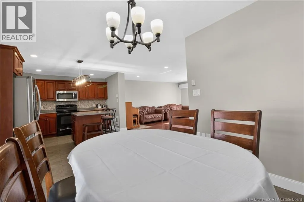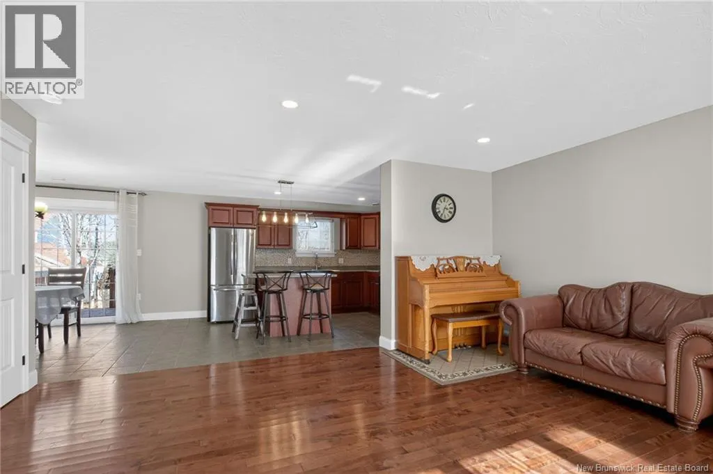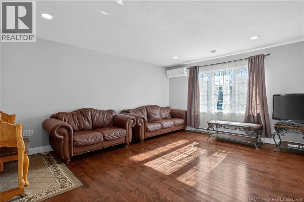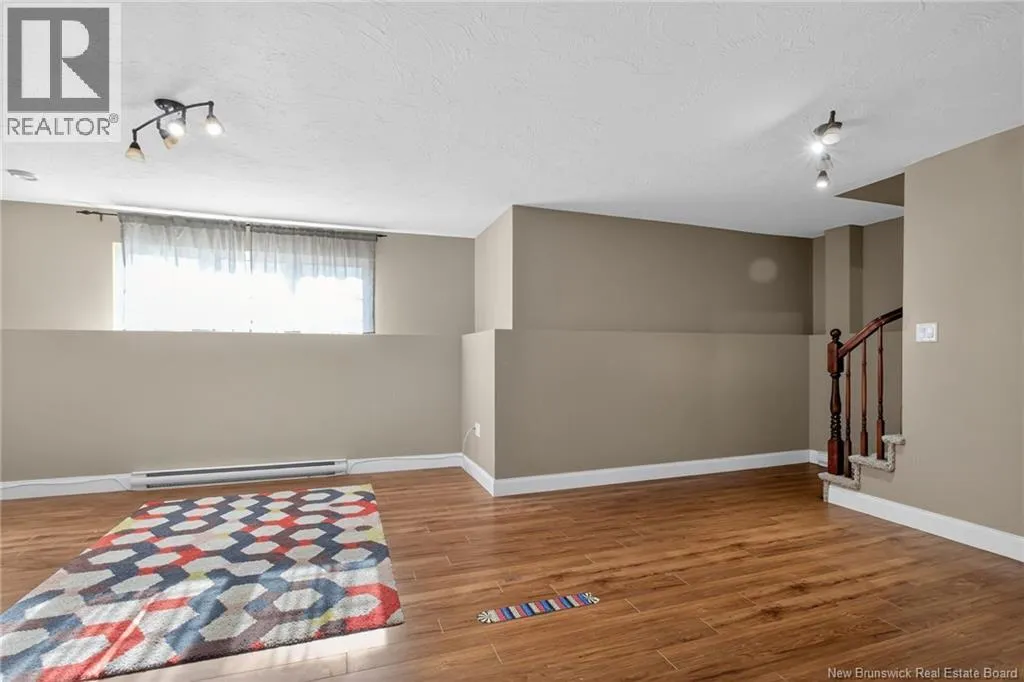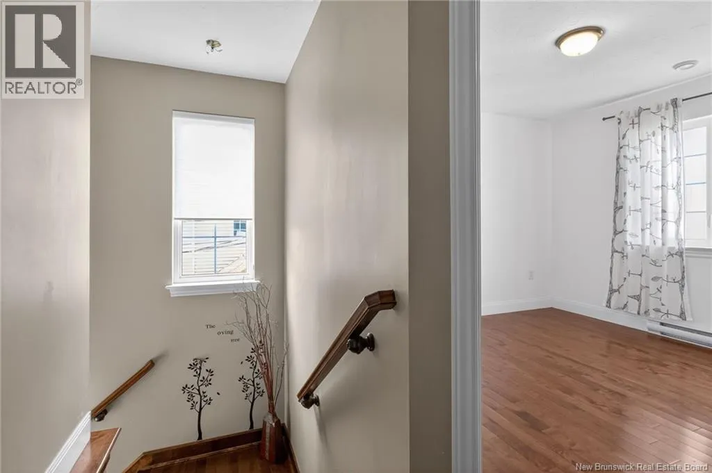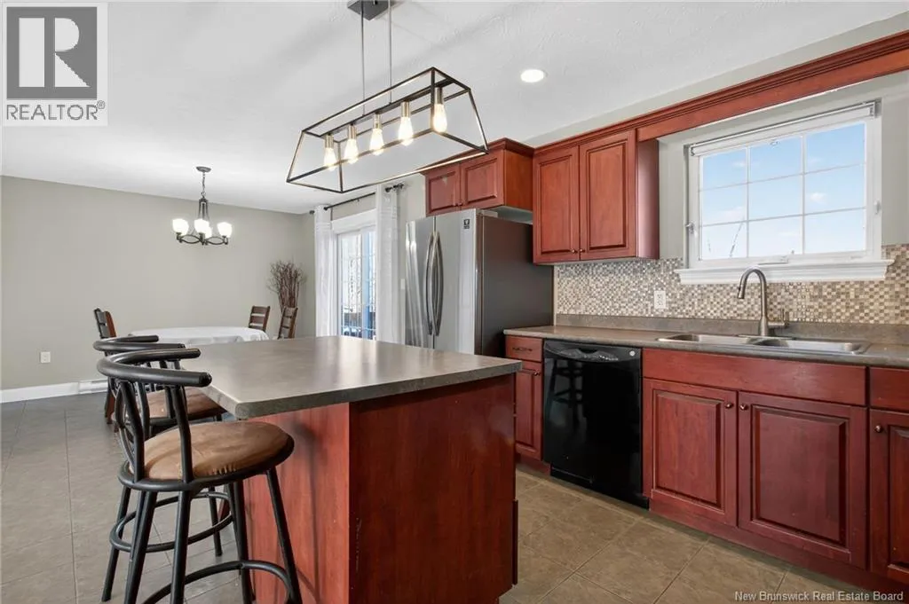 From Mountain Road, turn onto Hildegard Drive. Turn right onto Rennick Road, left onto Holland Drive, then left onto Aspenrose Court. The property will be on the left. Welcome to this well-maintained semi-detached home located on a quiet cul-de-sac in Moncton North. The property features a double paved driveway, attractive landscaping, and a backyard with mature trees offering privacy. Inside, youll find a spacious living room that flows into a bright kitchen with cherry wood cabinets, island, backsplash, dishwasher, and a built-in microwave. The large dining area includes patio doors leading to a 12 x 12 deck, perfect for outdoor enjoyment. The upper level offers a primary bedroom with vaulted ceiling and walk-in closet, two additional bedrooms, and a 4-piece bathroom with a convenient laundry area. The finished basement adds extra living space with a family room, fourth bedroom, 2-piece bathroom, and a utility room with plenty of storage. A great home in a desirable location close to schools, shopping, and amenities. (id:27476)