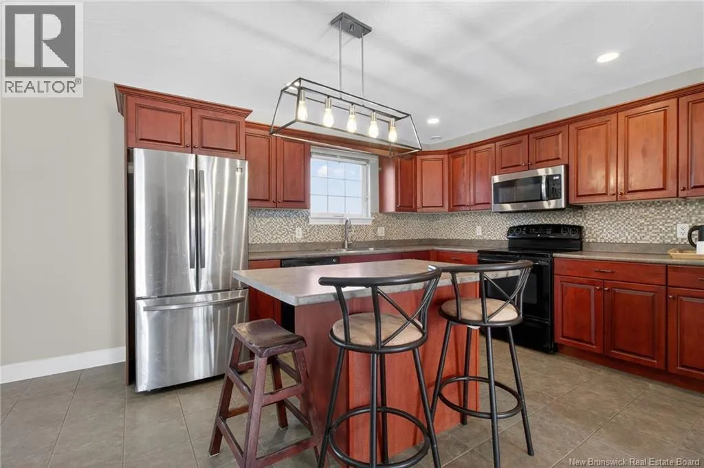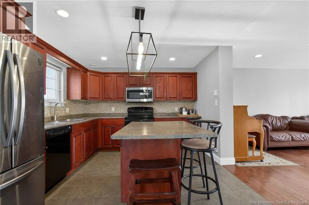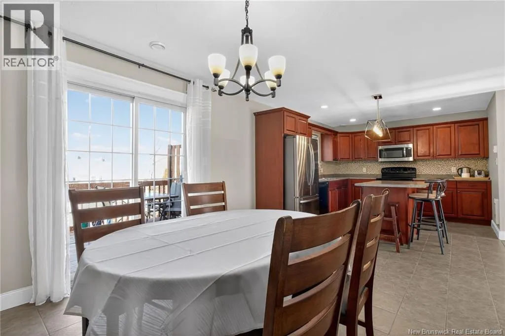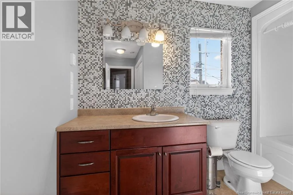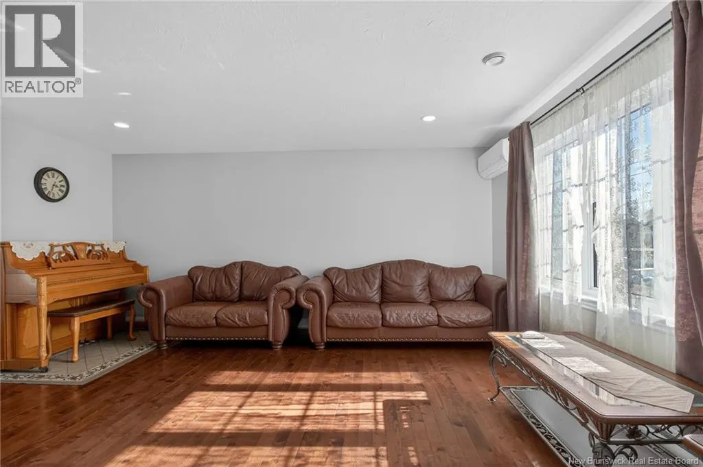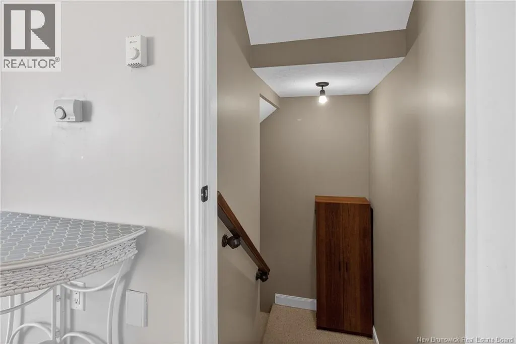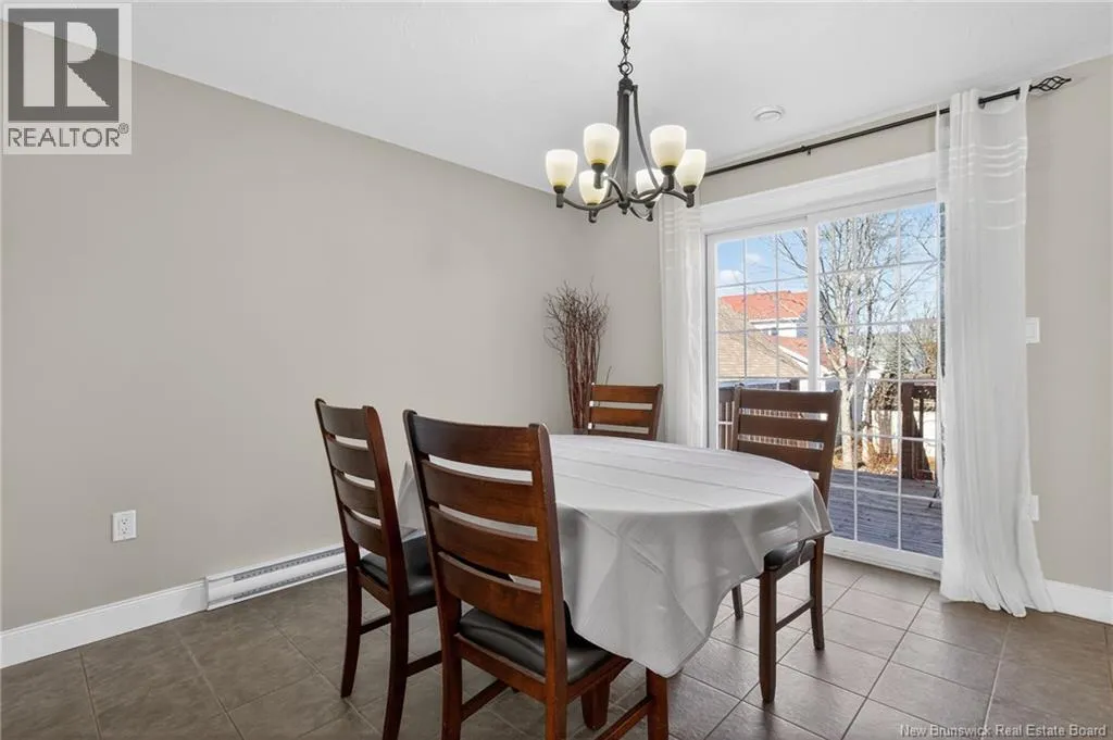 From Mountain Road, turn onto Hildegard Drive. Turn right onto Rennick Road, left onto Holland Drive, then left onto Aspenrose Court. The property will be on the left. Welcome to this well-maintained semi-detached home located on a quiet cul-de-sac in Moncton North. The property features a double paved driveway, attractive landscaping, and a backyard with mature trees offering privacy. Inside, youll find a spacious living room that flows into a bright kitchen with cherry wood cabinets, island, backsplash, dishwasher, and a built-in microwave. The large dining area includes patio doors leading to a 12 x 12 deck, perfect for outdoor enjoyment. The upper level offers a primary bedroom with vaulted ceiling and walk-in closet, two additional bedrooms, and a 4-piece bathroom with a convenient laundry area. The finished basement adds extra living space with a family room, fourth bedroom, 2-piece bathroom, and a utility room with plenty of storage. A great home in a desirable location close to schools, shopping, and amenities. (id:27476)