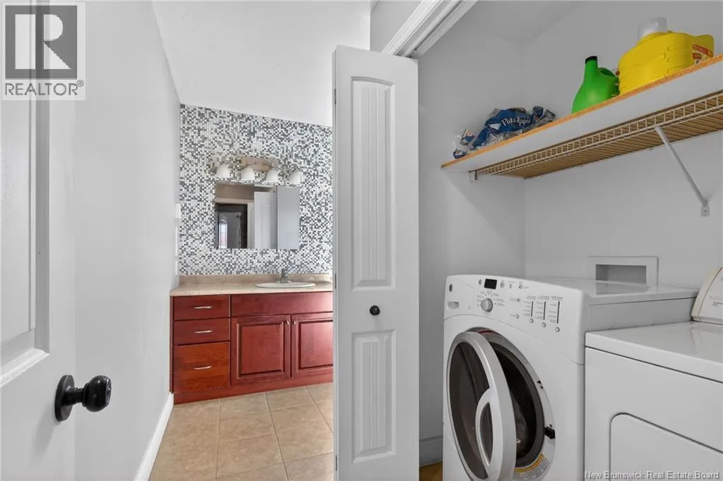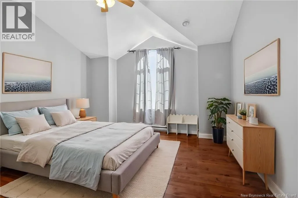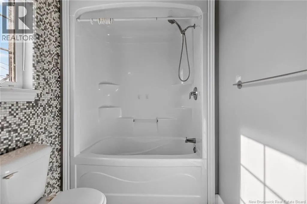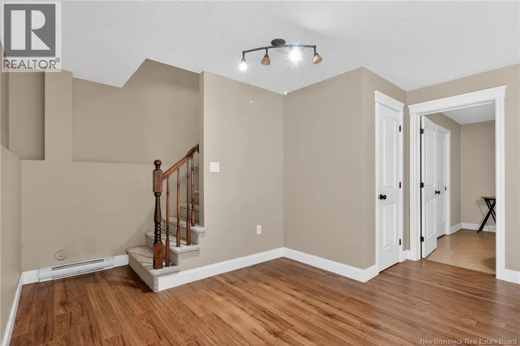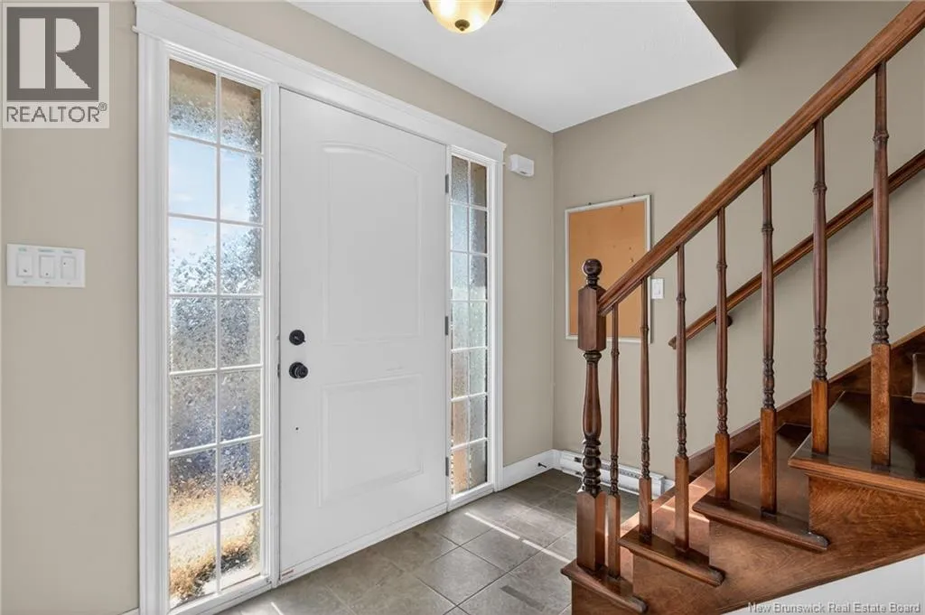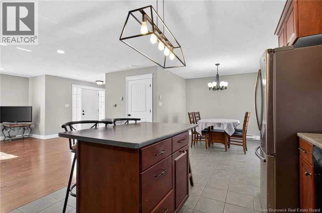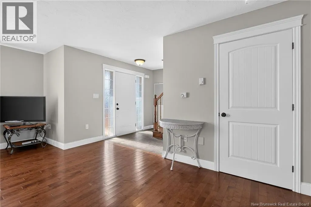 From Mountain Road, turn onto Hildegard Drive. Turn right onto Rennick Road, left onto Holland Drive, then left onto Aspenrose Court. The property will be on the left. Welcome to this well-maintained semi-detached home located on a quiet cul-de-sac in Moncton North. The property features a double paved driveway, attractive landscaping, and a backyard with mature trees offering privacy. Inside, youll find a spacious living room that flows into a bright kitchen with cherry wood cabinets, island, backsplash, dishwasher, and a built-in microwave. The large dining area includes patio doors leading to a 12 x 12 deck, perfect for outdoor enjoyment. The upper level offers a primary bedroom with vaulted ceiling and walk-in closet, two additional bedrooms, and a 4-piece bathroom with a convenient laundry area. The finished basement adds extra living space with a family room, fourth bedroom, 2-piece bathroom, and a utility room with plenty of storage. A great home in a desirable location close to schools, shopping, and amenities. (id:27476)