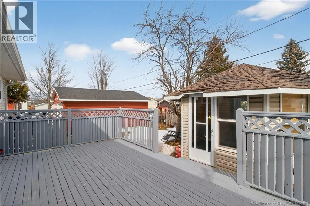 Mapleton Rd, turn on Kendra, turn right on Miller Dr. LOCATION! Conveniently located close to NBCC and Trinity Shopping Centre, this well-maintained home offers great living space and flexibility. The main level features a spacious living room with hardwood floors and a beautiful fireplace with electric insert. The bright eat-in kitchen with ceramic tile flooring leads to the backyard where you will find a large deck and a 3-season octagon gazebo, perfect for relaxing or entertaining. This level also offers three good-sized bedrooms and a 4-piece bathroom The lower level, with separate entrance, includes a kitchen, family room, office, rec room, and a 4-piece bathroom, providing plenty of additional living space. The fully fenced backyard, double paved driveway, and large storage shed complete this property. Great location close to schools, shopping, and amenities. (id:27476)