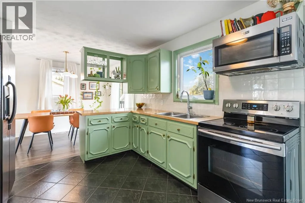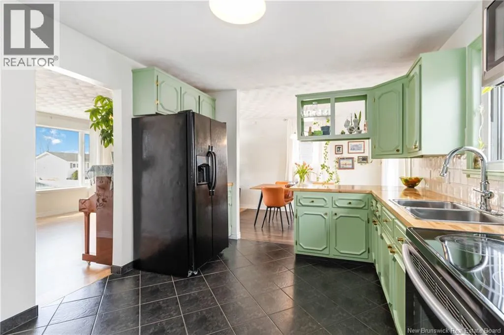 From Mill Road turn onto Martin street and then left onto Palisade Drive. Turn right onto Notingham and 115 Notingham is on your left. CENTRAL HEAT PUMP(2019) / ENCLOSED BACK YARD WITH WOODEN FENCE/ OVERSIZED BACK DECK/ Welcome to 115 Notingham in Moncton. This 3 bedroom bungalow is sure to please with many updates over the years. Upon entering the front door you will find a bright well sized living room. Towards the back of the house is an open concept kitchen and dining room combo, offering an updated kitchen with butcher block countertops and a white tray tile backsplash. Down the hallway you will find 3 bedrooms and a full bathroom. The basement is unfinished, offering man options for a family or many hobbyist uses. In 2019 a new 200 AMP electrical panel was installed along with a Carrier central heat pump. The back yard is enclosed with a wooden fence. The back yard also features an oversized back deck that was stained last year and a storage shed for all of your seasonal items. This home is located within a short drive to many amenities including Champlain Mall. (id:27476)