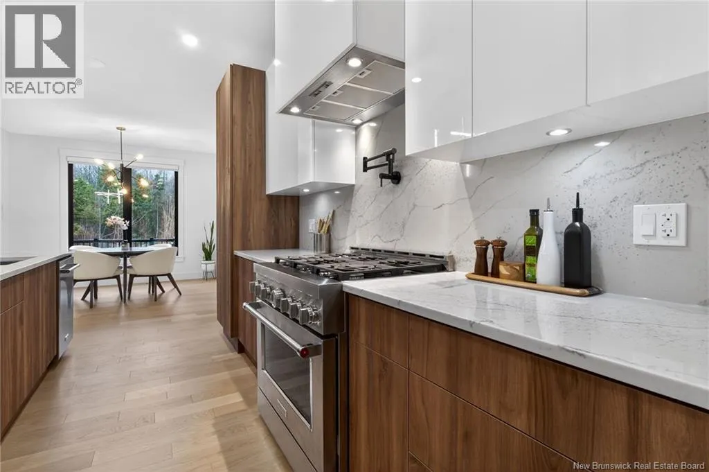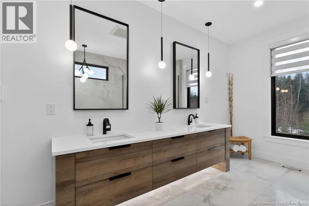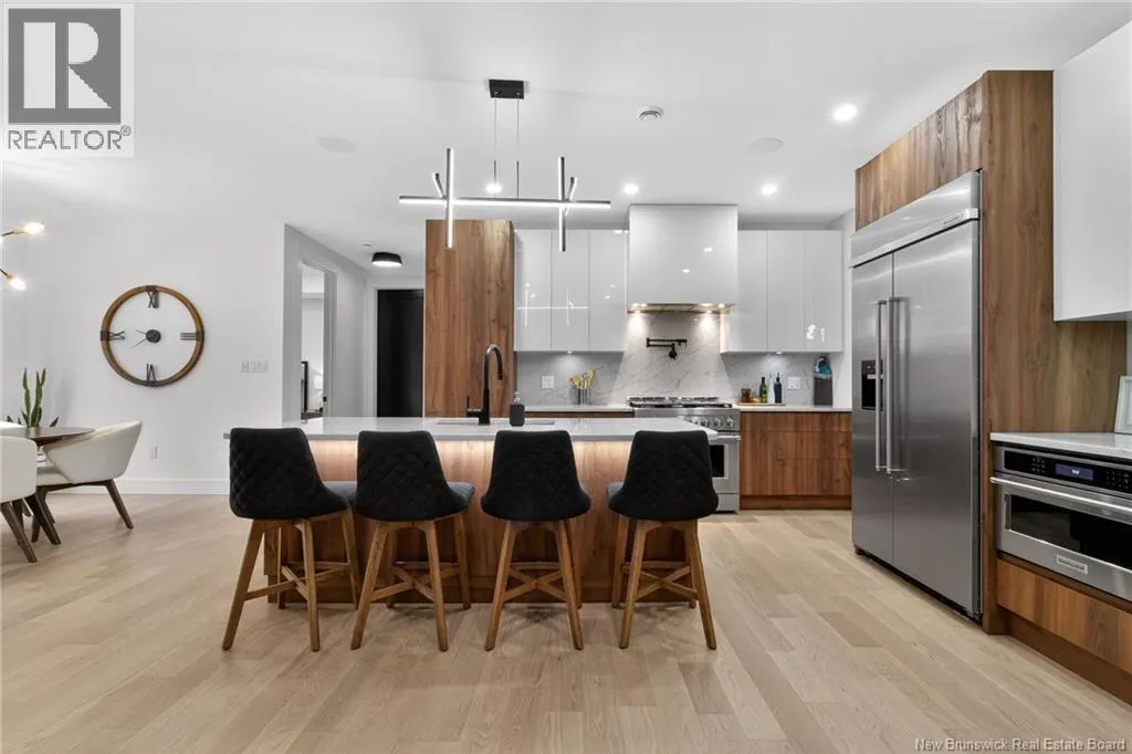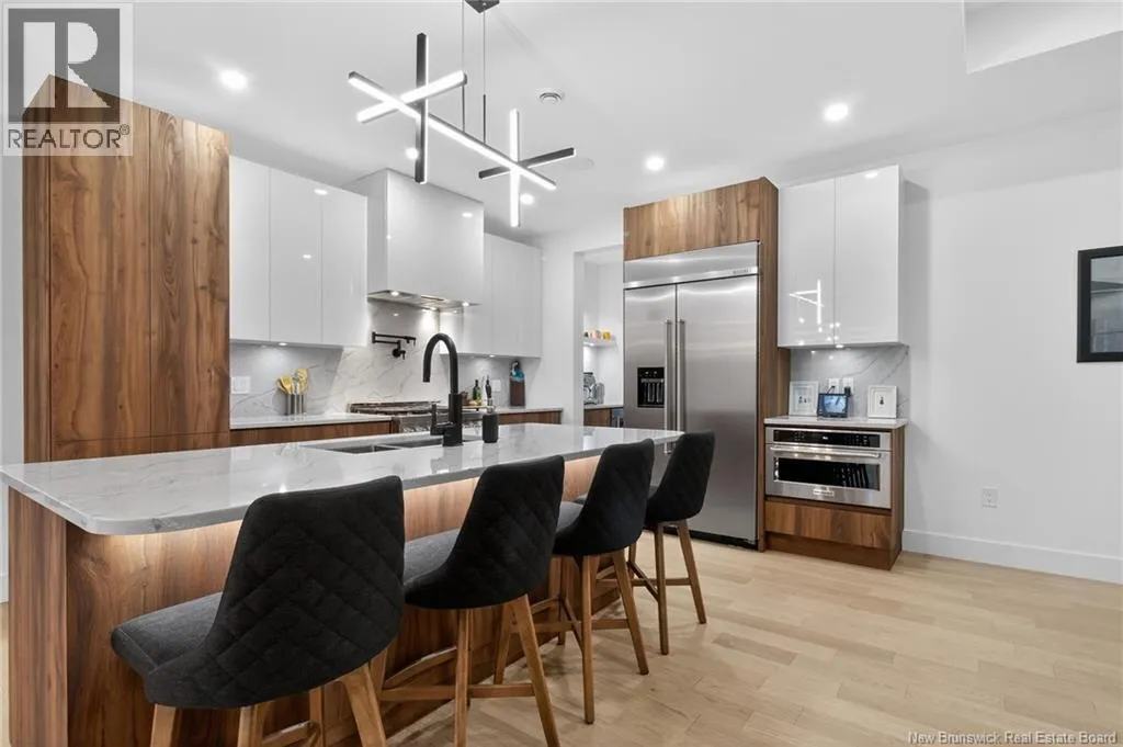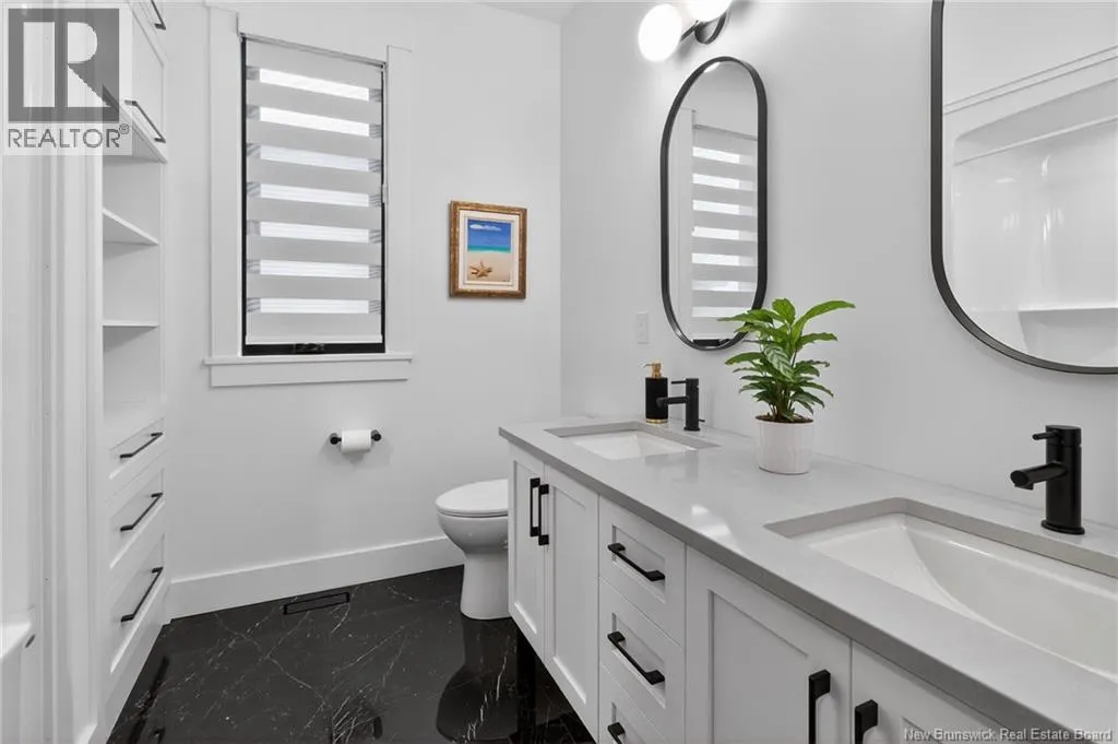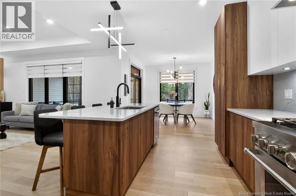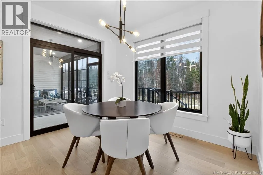 Elmwood Dr to Royal Oaks Blvd entrance on your left not far after you pass the Tim Hortons. *** TOP QUALITY CUSTOM DESIGNED BUNGALOW // DOUBLE ATTACHED HEATED GARAGE // FORCED AIR HEAT PUMP *** Welcome to 83 Royal Oaks, a true masterpiece blending a Craftsman style/modern farmhouse design. Attention to detail shows throughout, starting on the main floor with 9ft CEILINGS and ENGINEERED HARDWOOD flooring. This level is highlighted by a beautiful white and wood-panelled kitchen with HIGH-END APPLIANCES, PROPANE RANGE, QUARTZ BACKSPLASH, ISLAND, COFFEE BAR, and PANTRY. From the cozy breakfast nook, access the 3-SEASON SUNROOM with concrete flooring, pot lights, and access to a COMPOSITE DECK overlooking your backyard. The living room features an ACCENT WALL and PROPANE FIREPLACE, while the FORMAL DINING ROOM is perfect for gatherings. Relax in your primary bedroom with SPA-LIKE 5pc ENSUITE and BOUTIQUE STYLE WALK-IN CLOSET while 2 spare bedrooms and a 5pc family/guest bath with MOTION-ACTIVATED LIGHTING are perfect for your children or guests. Descend the lighted staircase to the FULLY FINISHED BASEMENT with nice vinyl plank flooring. Here youll find a spacious family room INCLUDING HOME THEATRE and stylish wet bar, a flex room for gym/playroom space, 2 additional bedrooms, 4pc bath, and finished storage and utility rooms. This gem also includes CUSTOM MOTORIZED BLINDS in the top floor bathrooms and living room, HEATED FLOORS in all bathrooms, GENERATOR PANEL, central vacuum, and thick aluminum windows. Great location near the Irishtown nature park and all amenities! (id:27476)