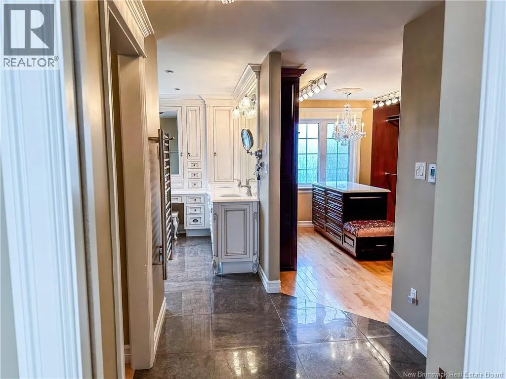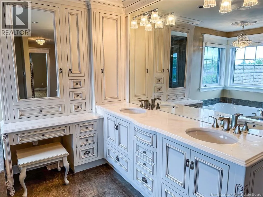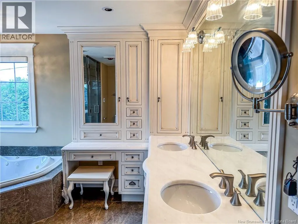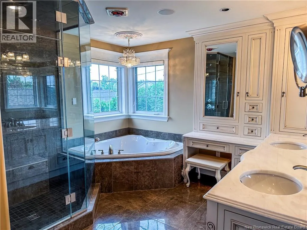 Off Mailhot Ave or Willshire Way to Foxwood Dr. Nestled in the heart of Moncton North, this executive home is a rare gem that seamlessly combines timeless elegance with modern convenience. Professionally landscaped and enhanced with an irrigation system and enchanting landscape lighting, this residence welcomes you with a grand foyer featuring vaulted ceilings and a dramatic staircase. The main floor boasts a formal living room with a cozy fireplace, a formal dining room with its own fireplace, and a gourmet kitchen equipped with heated floors, a double wall oven, a gas range stove with an industrial hood range, a 2-drawer dishwasher, and a center island with a prep sink, all complemented by quartz countertops and high-end finishes. The open-concept design extends to the main-floor family room with a gas fireplace and a south-facing 4-season room. Upstairs, discover a pristine main 4pc bath, two large stately bedrooms, and a Royal master bedroom with a separate shoe/purse closet, ensuite with a corner tub, steam shower, double vanity, and your personal dressing room. Outdoors, a cedar deck, a pergola, gas hookup for BBQ, a hot tub and interlocking walkways create an idyllic retreat and relaxation. Additional features include 9-foot ceilings, remote-controlled window coverings, a security system, and convenient basement access from the garage. This property offers an exceptional blend of luxury and comfort for discerning buyers seeking an elegant yet functional home in Moncton North. Call to schedule your private viewing! (id:27476)