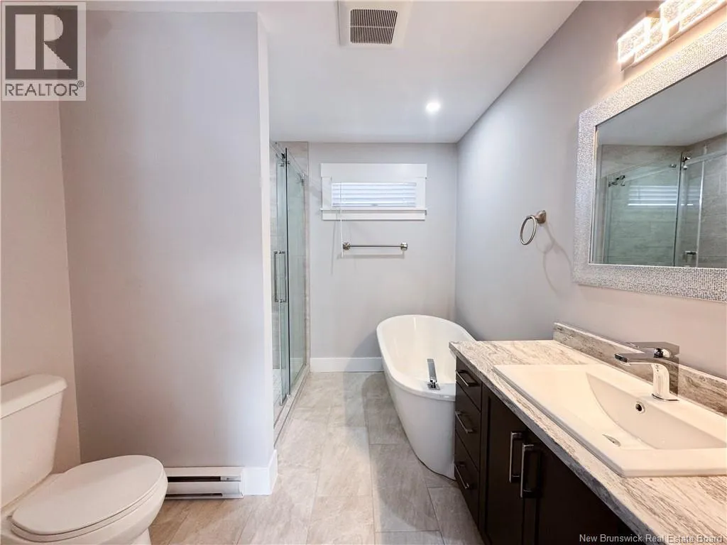 From Ryan Street to Satara Drive. Welcome to 77 Satara Drive, a modern designed home located in the highly desirable Moncton North! This beautifully maintained property offers an attached garage, paved driveway, landscaped yard, and a mini-split heat pump for year-round comfort. Step inside to a bright and inviting open-concept main floor, where the living room, dining area, and kitchen flow seamlessly togetherperfect for both everyday living and entertaining. Large windows flood the living space with natural light, while a cozy fireplace adds warmth and charm. The modern kitchen is a true highlight, featuring quartz countertops, a spacious island with breakfast bar, pantry, sleek cabinetry, and ample storage. The dining area provides direct access to the back deck, ideal for outdoor enjoyment. This level also includes a dedicated home office, a convenient laundry room, and a well-placed half bath. Upstairs, beautiful hardwood stairs lead to four generously sized bedrooms, including a stunning primary suite complete with a walk-in closet and a luxurious ensuite featuring a corner soaker tub and separate glass shower. A full family bathroom completes the upper level. The fully finished basement adds even more versatile living space, offering a large family room, rec/games area, a fifth bedroom, full bathroom, and a spacious bonus roomperfect for a home gym, media room, or additional storage. Current taxes based on non-owner occupancy. Call for more information or to schedule your private viewing. (id:27476)
