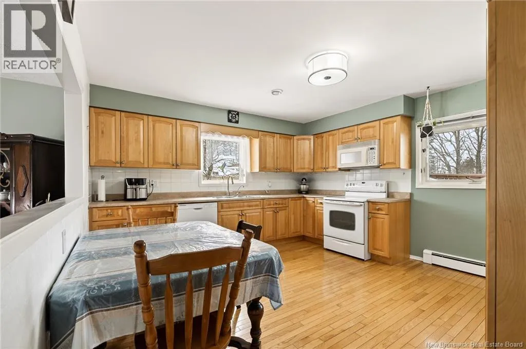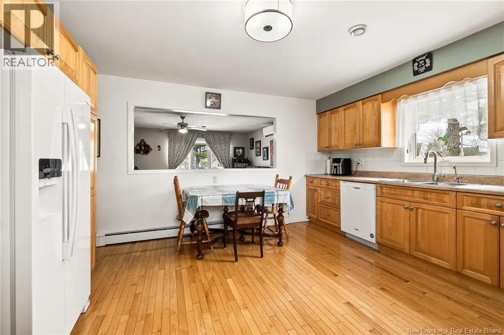 From Elmwood, turn onto Ellerdale and left onto Queen Mary Rd. 4 BEDROOM BUNGALOW WITH IN-LAW SUITE ON A LARGE CORNER LOT IN MONCTONS EAST END PERFECT FOR FAMILIES OR INVESTORS! This well-maintained home offers hardwood floors throughout the main living areas including the living room, dining room, kitchen, and all bedrooms. The bright living room features a large front window and flows into the dining area and kitchenideal for everyday living and entertaining. The spacious eat-in kitchen offers ample cabinetry with pull-outs, backsplash, garburator, and over-the-range microwave. Main level includes 4 generous bedrooms and main floor laundry. The lower level offers excellent flexibility and income potential with family room, games/hobby room, office, 3-piece bath, and in-law suite potential with legal egress window, additional non-conforming bedroom, and separate lower-level laundry. Nearly complete setup with kitchen sink on site (not installed). Lower level currently rented. Updates include 3 mini splits, 200 AMP breaker panel, egress window, basement bathroom, and more. Two driveways on separate streets and baby barn. Close to TCH, Costco, Sobeys, and all amenities! (id:27476)