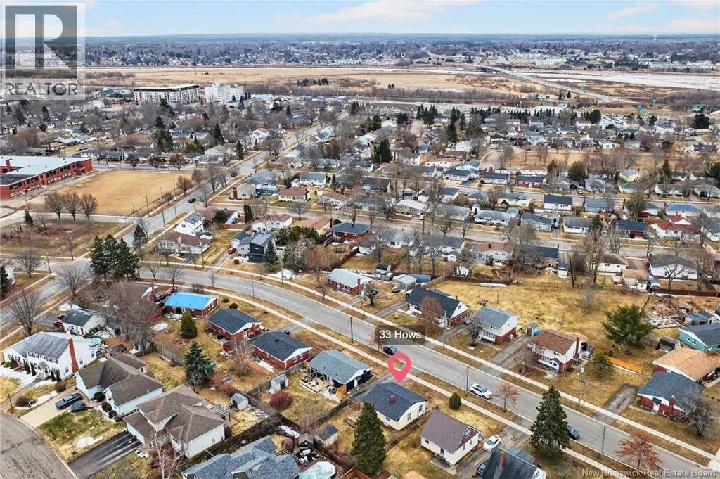St George Blvd - Turn on to Milner - Right on Hows Cres OR Main St - Turn on to Milner - Left on to Hows Cres Welcome to 33 Hows Cres in Monctons West End. This charming 2 bedroom bungalow features a bright living room with hardwood floors and is open to the updated kitchen with centre island. This home is complete with two bedrooms including a spacious primary with double closet. The second bedroom feautes a half bath. The lower level includes a family room redone in 2024, plus two storage rooms and a cold room. Enjoy the front verandah and a fenced backyard with storage shed. Additional features include a heat pump and new electrical panel. Close to schools, Centennial Park, shopping, highways and downtown. Taxes are non-owner occupied. (id:27476)