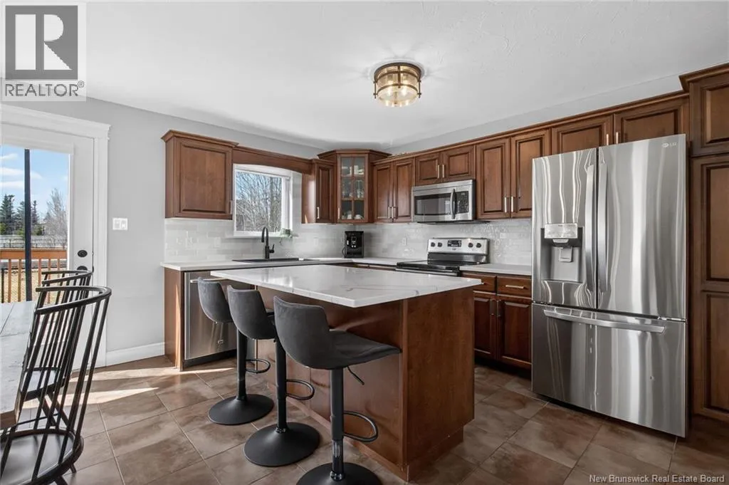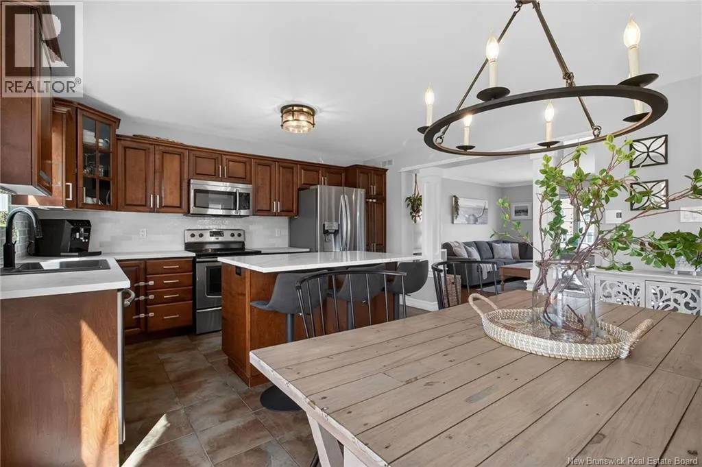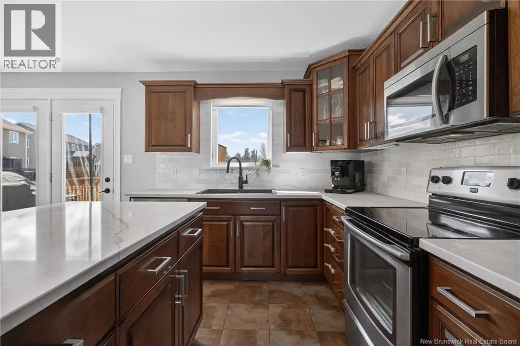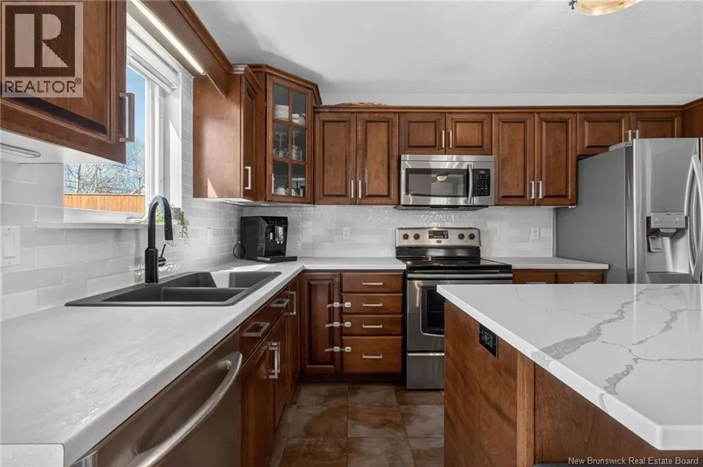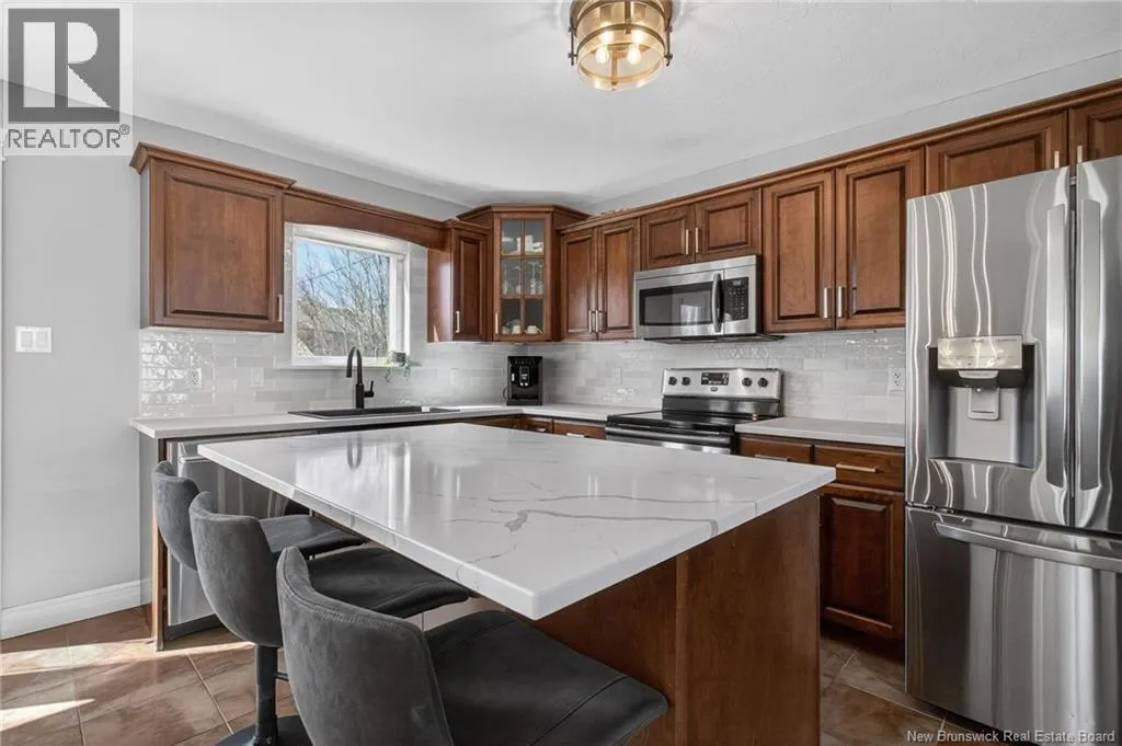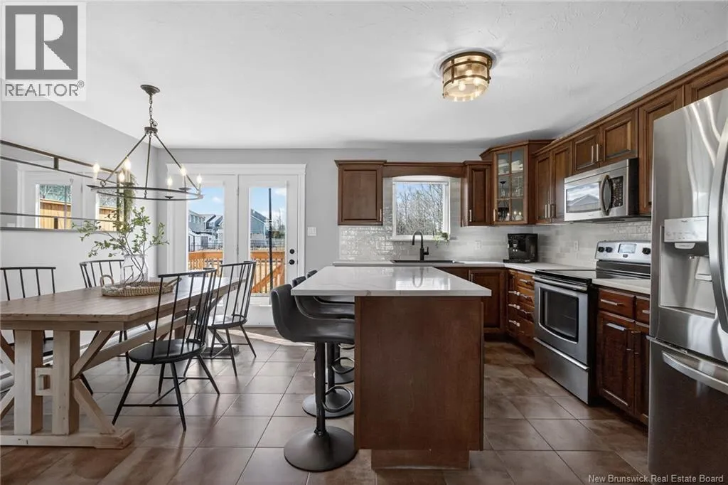 Sunshine to Oak Ridge to Deerfield to Naples or Twin Oaks to Sunshine to Algonquin to Deerfield to Naples. *** 4 BEDROOM AND 2.5 BATHS // 2 STOREY SEMI-DETACHED // FULLY FINISHED BASEMENT // MINI-SPLIT HEAT PUMP // FENCED WEST-FACING BACKYARD *** Welcome to 53 Naples, a beautifully maintained 2 storey semi located in the desirable Liberty Hill neighbourhood of Moncton North. This property offers generous living space across all 3 levels and a fenced, west-facing backyard that captures plenty of afternoon and evening sunlight, ideal for BBQs, entertaining, or playtime. The main floor features a welcoming entrance with DOUBLE CLOSET, lots of NATURAL LIGHT, MINI-SPLIT, HARDWOOD and CERAMIC floors, and DECORATIVE PILLARS. The spacious living room flows into the kitchen/dining area, highlighted by dark-stained cabinetry and patio door access to your deck with privacy wall. In 2023, the kitchen was upgraded with an ENLARGED ISLAND TOPPED WITH QUARTZ, NEW LIGHT FIXTURES, and a NEW BACKSPLASH. A convenient 2pc bath with laundry completes this level. Upstairs, the primary bedroom offers a WALK-IN CLOSET and CHEATER DOOR to the 4pc family bath, while 2 spare bedrooms are perfect for family or guests. The fully finished basement has a large FAMILY ROOM with POT LIGHTS, 4th BEDROOM, and another 4pc BATH. Additional features of this property include DOUBLE-WIDE PAVED DRIVEWAY and BABY BARN for extra storage. 53 Naples offers everything you are looking for in a semi-detached and more - modern touches, excellent condition, fenced yard, and plenty of finished living space! MOVE RIGHT IN!! (id:27476)