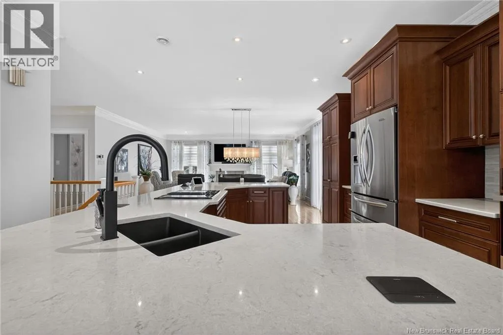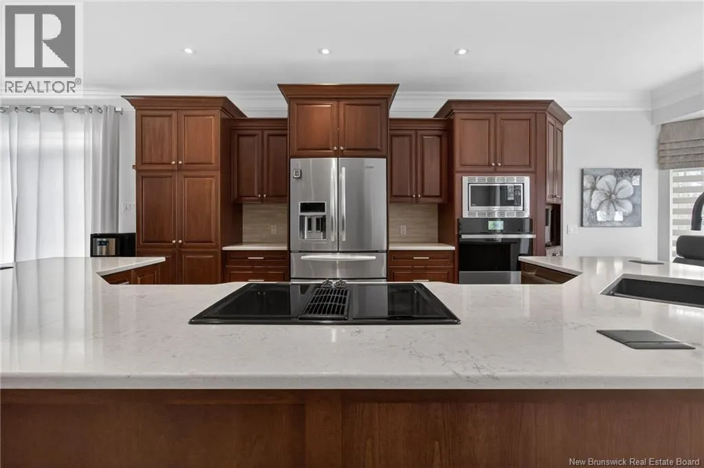 Elmwood Dr to Royal Oaks Blvd entrance on your left after you pass the Tim Hortons. *** PRIVATE FENCED BACKYARD OASIS // PRISTINE CONDITION & UPDATED THROUGHOUT // FULLY FINISHED // FORCED AIR HEAT PUMP *** Welcome to 60 Royal Oaks, an exceptional, executive-style bungalow with a striking brick and stucco exterior, paver stone driveway, and double attached garage with HEATED TILE FOOR. Inside, the main floor has 9ft CEILINGS and features a cozy breakfast nook and stunning kitchen with NEW APPLIANCES (except for cooktop) and QUARTZ COUNTERTOPS. From here, youll love the dining area, living room with PROPANE FIREPLACE, and convenient 2pc bath. The primary bedroom is flooded with natural light and includes 2 CLOSETS (double and walk-in) and a beautifully RENOVATED ENSUITE (2024) with a custom shower, heated floors, soaker tub, and custom vanity. A spare bedroom completes this level. The basement offers NEW HEATED FLOORS, LARGE WINDOWS, family room with 9ft ceiling and NEW ACCENT WALL with ELECTRIC FIREPLACE, and WET BAR with NEW COUNTERTOPS. Theres also an exercise room/office with 9ft ceiling, 3rd bedroom with 2 closets, 4pc bath with updated vanity, cedar closet, large finished storage room, and laundry. The SOUTH-FACING, FENCED BACKYARD is a retreat featuring COMPOSITE DECK with GLASS RAILING, PERGOLA with cedar shingles, OUTDOOR KITCHEN with grill and smoker, GORGEOUS PAVER STONES, FLOWERS, SHRUBS, POND WITH WATERFALL, JACUZZI with automatic cover, and BABY BARN with power. This beauty also has an alarm system, central vacuum, and newer heat pump (2022). (id:27476)