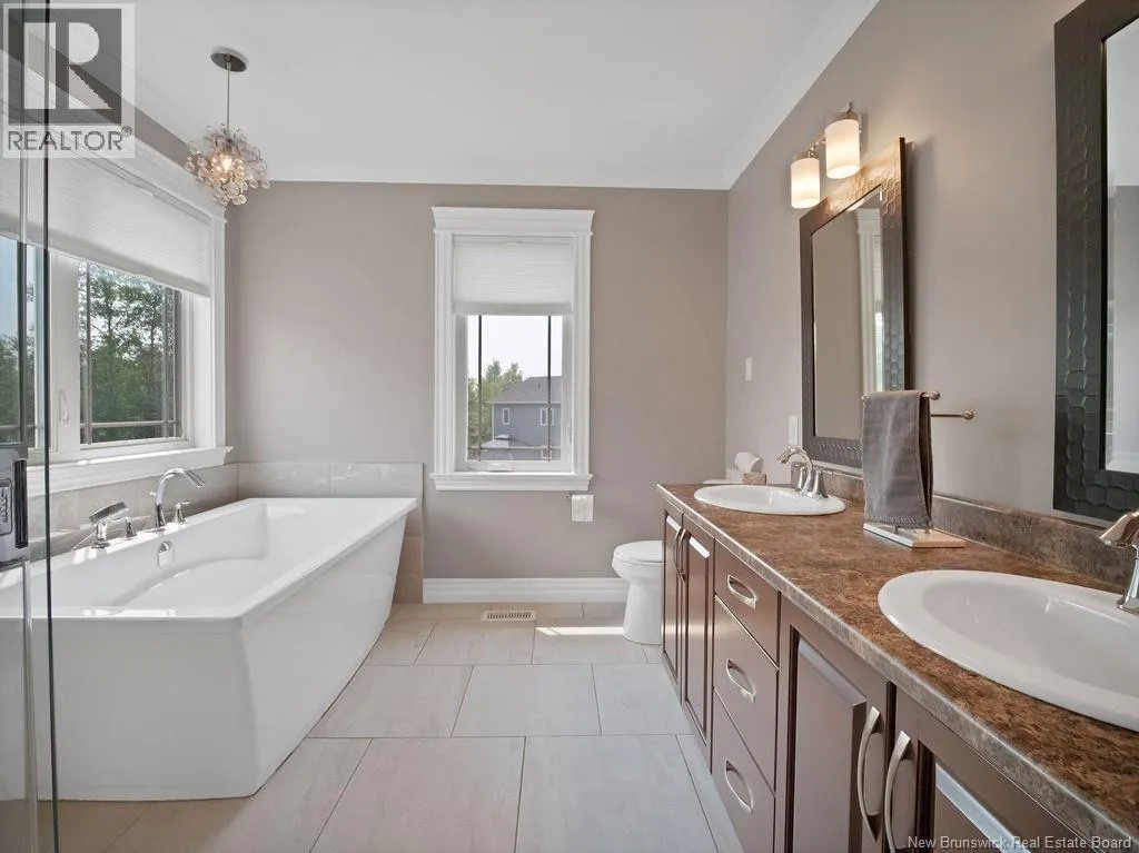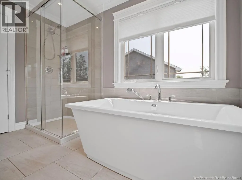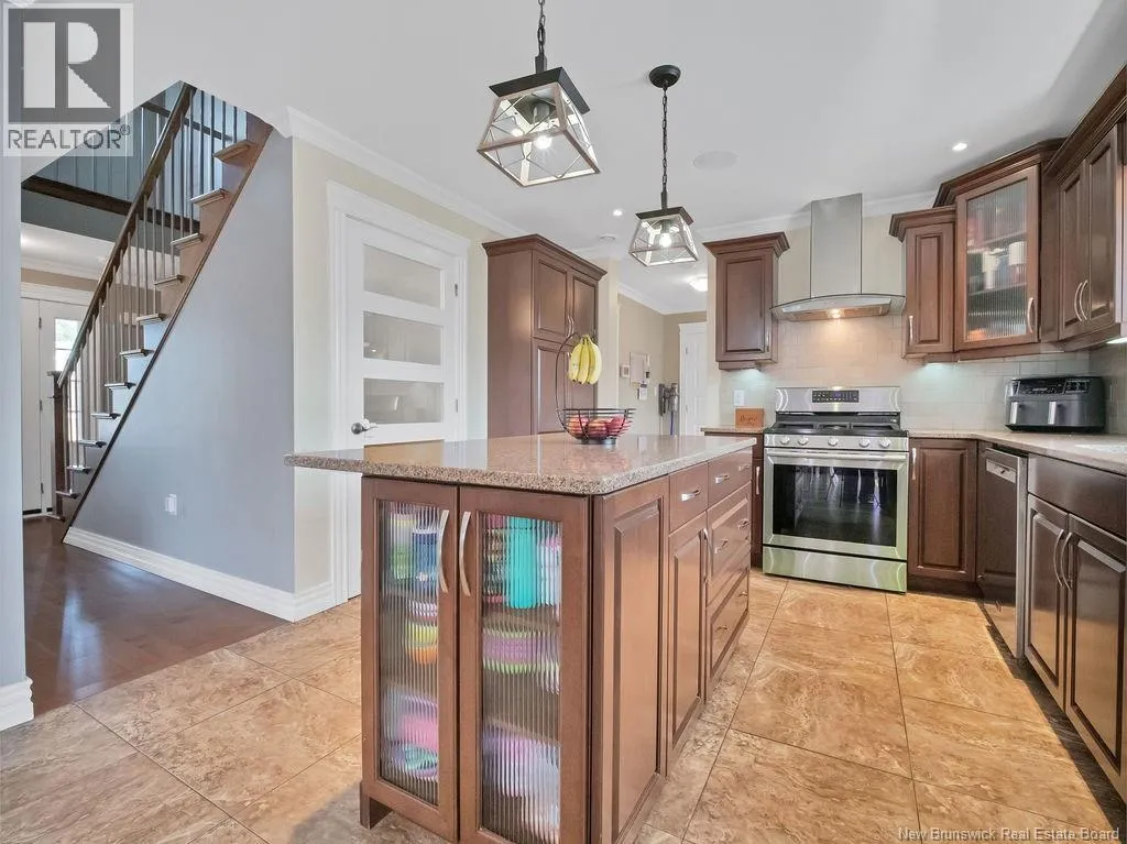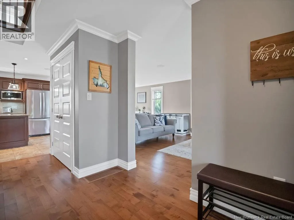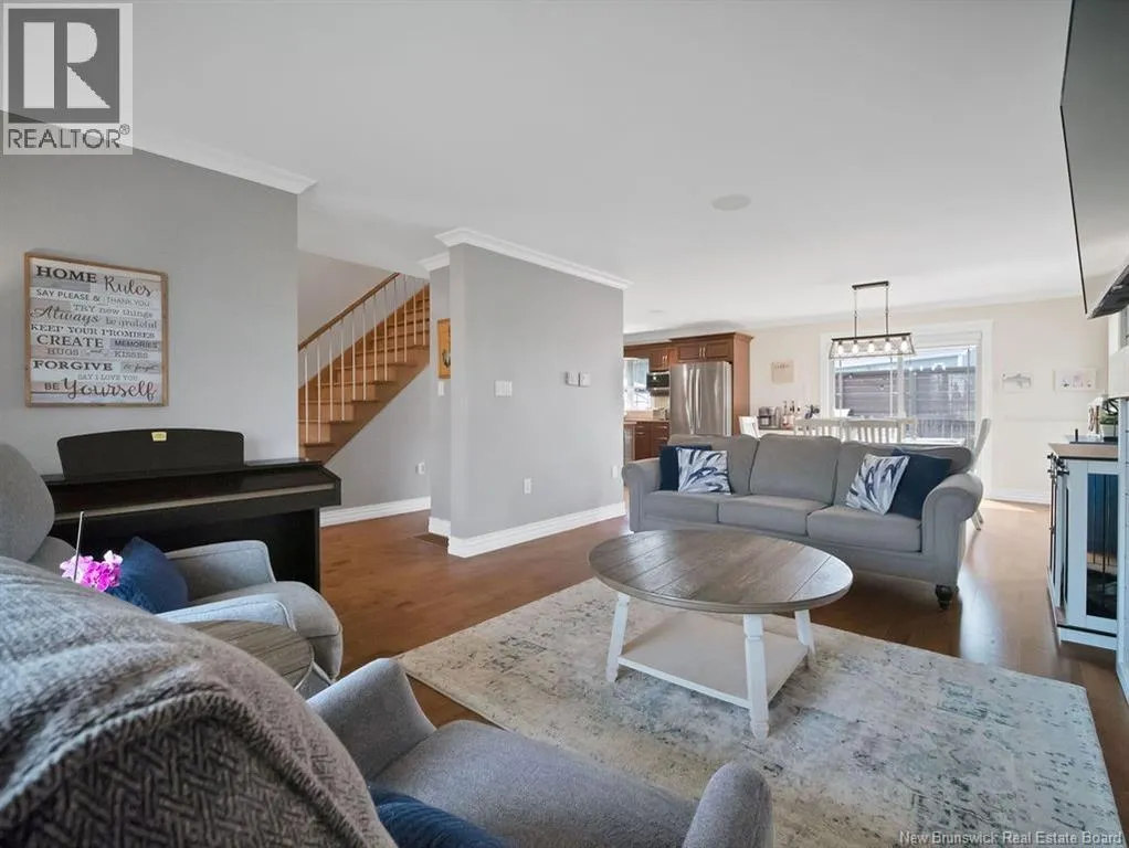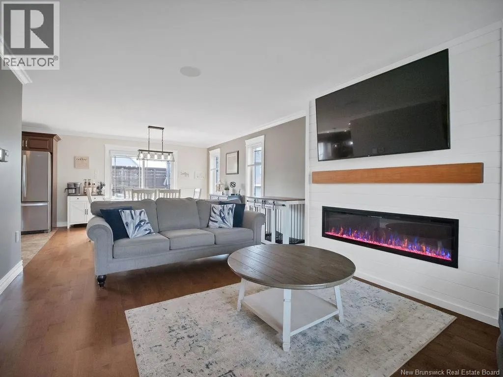 From Ryan rd, take Evergreen and right on Shiajan, house number 75. QUICK CLOSING AVAILABILITY.. Immaculate, climate-controlled 2 storey home in sought-after North Moncton, just off Evergreen Drive. Nestled on a large lot, this property offers stunning curb appeal with landscaping, stone pavers, and a charming veranda. The double paved driveway leads to a 26-foot-wide attached garage, providing ample space for vehicles and storage. Step inside the spacious foyer with hardwood staircase and double closet. The bright, inviting living room showcases an updated electric fireplace, adding warmth and style. The open-concept layout flows into a large dining area with patio doors to a private, two-tiered back deck and fully fenced yard, perfect for enjoying the outdoors. The well-appointed kitchen is a chefs dream, with stained cabinetry, quartz countertops, gas range, and direct-vented hood fan. Just off the kitchen is a generous mudroom with large closet, a convenient 2-piece bath, and a dedicated laundry room with overhead cabinetry. Upstairs, you'll find two spacious bedrooms with walk-in closets, a full bathroom, and a luxurious primary suite featuring a walk-in closet and elegant ensuite bathroom. The fully finished lower level offers even more living space, including a large family room, two additional bedrooms (one non-conforming), and a full 4-piece bathroom. This move-in-ready home reflects true pride of ownership throughout and is perfectly suited for families seeking space, comfort, and location. (id:27476)
