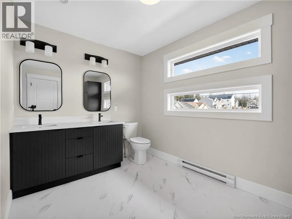 From Ryan, turn on Penrose. Turn left on Lady Russel, and left again on Edington. #114 will be on your left. Welcome to this beautifully designed modern home offering the perfect balance of style and functionality. The property makes a strong first impression with eye-catching curb appeal, a contemporary exterior design, stone and siding details, and a wide double driveway. A bright, flowing main floor creates the perfect setting for gatherings, featuring a contemporary kitchen with smooth-finish cabinetry, quartz countertops, an oversized island, and eye-catching lighting and a Pantry. The Open Concept dining area flows into the sun-filled living room, highlighted by a modern electric fireplace with a tiled feature wall and large windows overlooking the backyard. Upstairs youll find three well-proportioned bedrooms, all with ceiling fans, highlighted by a private primary walk-in closet and an elegant ensuite. A full laundry room on the second floor adds comfort and functionalit.The FULLY FINISHED BASEMENT provides additional living space with a COZY FAMILY ROOM, an EXTRA ROOM, a MODERN 3-PIECE BATHROOM, ideal for guests or a home office,and a Coldroom.Enjoy outdoor living on the EXTRA-LARGE PRIVATE DECK. Additional highlights include an attached garage, modern light fixtures throughout, two energy-efficient mini-split heat pumps, and finished bathrooms with mirrors installed. Situated in a quiet, family-oriented neighbourhood, this move-in-ready home is designed for todays lifestyle.New Home rebate and NB Power grant to builder on closing.8 Year HOME WARRANTY TO BUYER ON CLOSING! (id:27476)