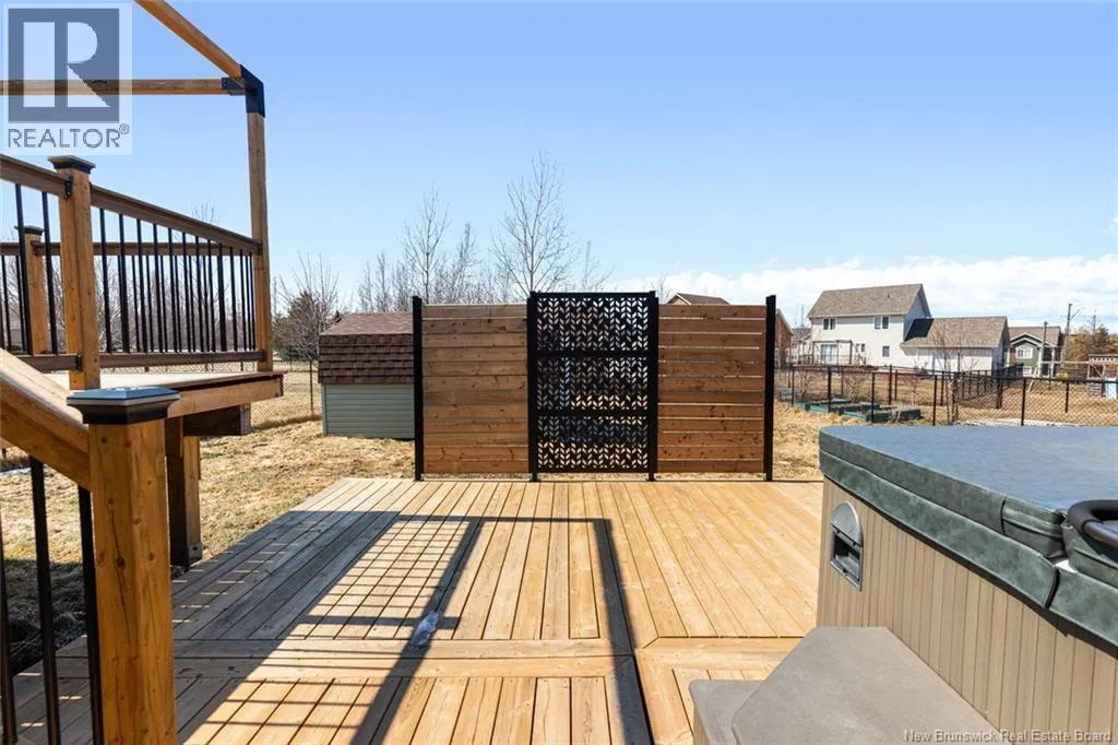 Shediac Rd, then Glengrove, then Spartan, then Melba. Welcome to this beautifully upgraded 5-bedroom, 2 bathroom home nestled in a highly desirable neighborhood. Just minutes from shopping, schools, and scenic walking trails. Designed for both comfort and style, the main floor features a bright open-concept layout connecting the kitchen, dining, and living areas, perfect for modern living and entertaining. The kitchen is a standout with upgraded quartz countertops, a stunning waterfall island, flooring and a tasteful backsplash that adds a touch of elegance. The living room is bright from charming bay windows and includes climate-controlled heating for year-round comfort. Step out from the dining area onto a spacious upper deck, which includes an additional large lower deck complete with a privacy wall, ideal for outdoor gatherings. The generous primary bedroom offers convenient Jack and Jill access to a fully renovated 5pc bathroom featuring dual sinks. The lower level expands your living space with two additional bedrooms, a cozy family room, a large games room or gym, a 3pc bathroom/laundry and ample storage. Additional highlights include central vacuum, a fully fenced yard, hot tub, storage shed,paved double driveway and more. This home truly has it all, space, upgrades, and an unbeatable location. Book your private viewing today! (id:27476)