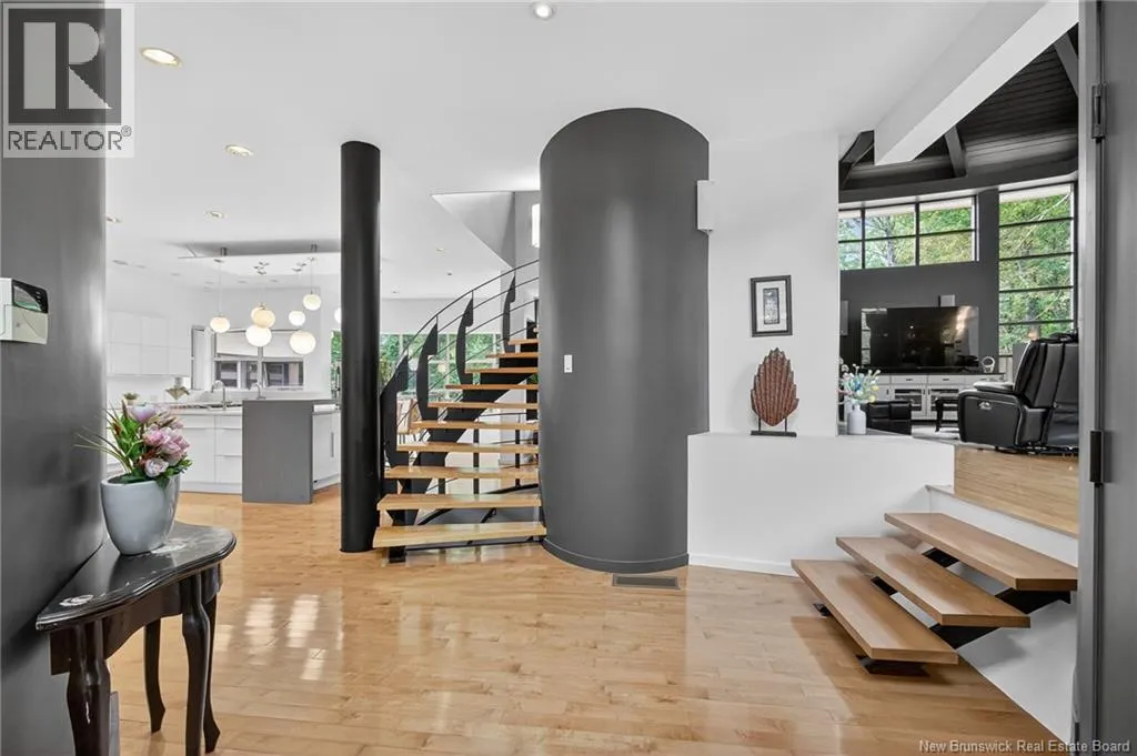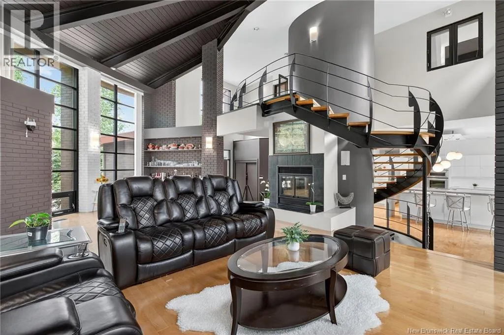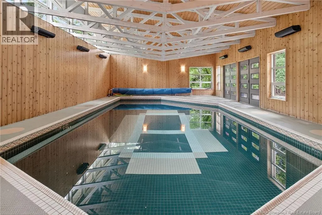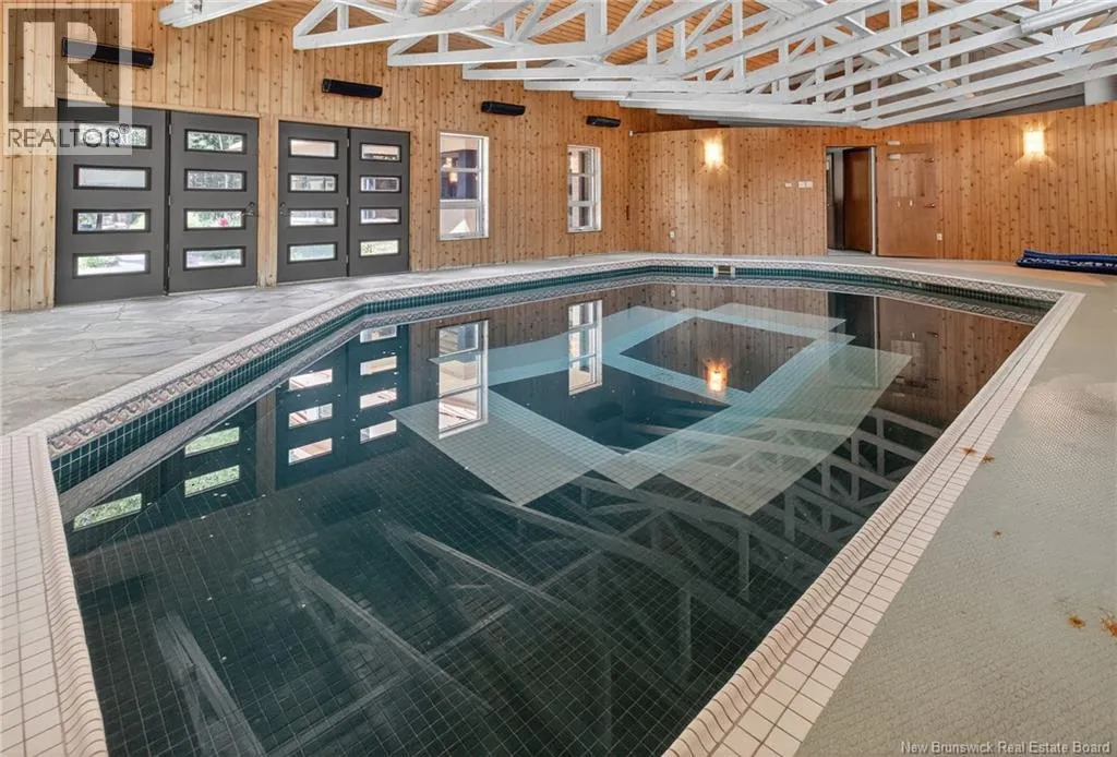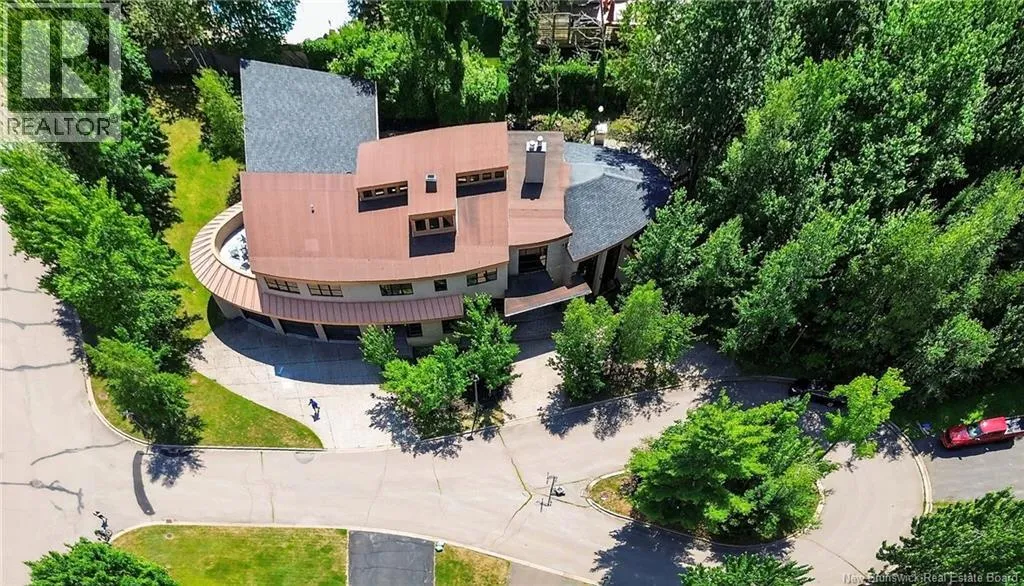 From Evergreen Dr, turn right onto Glencairn, then turn left onto Rosemount, the house is at corner of Brandywood and Rosemount LUXURY MONCTONS FINEST HOME IS HERE! A truly one-of-a-kind architectural masterpiece nestled on a quiet cul-de-sac in prestigious Moncton North. Situated on a lush, treed 0.78-acre lot with a circular driveway, this climate-controlled home offers over 8,000 sq. ft. of luxury living space, including a fully finished basement. Double lot of 3159m2 may be subdivided if desired. Step inside to soaring 19-ft vaulted ceilings, exposed I-beams, and a dramatic spiral staircase that sets the tone for this remarkable residence. The main level features a grand living room with floor-to-ceiling windows, a gourmet kitchen with oversized island and ample cabinetry, a formal dining room, mudroom, laundry area, and a commercial-grade 18x30 indoor heated pool with full bath and direct patio access. A beautiful bedroom with adjoining den completes this level. Upstairs, the spacious primary suite includes a walk-through closet, spa-inspired ensuite, and private balcony. Four additional bedrooms share two Jack & Jill bathrooms; one has access to a rooftop lookout. A second staircase connects all three levels. The lower level includes a rec room with fireplace, games room, studio, and 800-amp electrical panel. This energy-efficient home also features two geothermal systems, triple garage, and extensive concrete walkways and patios. (id:27476)