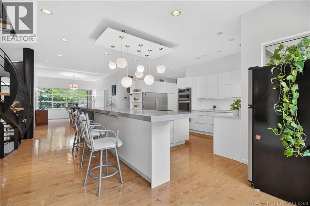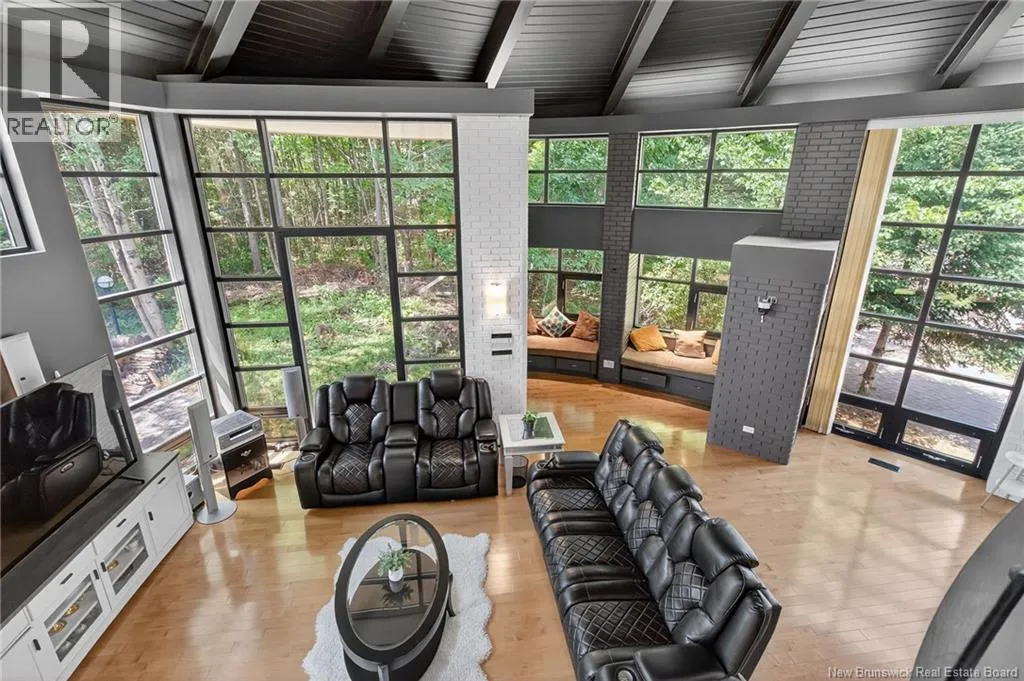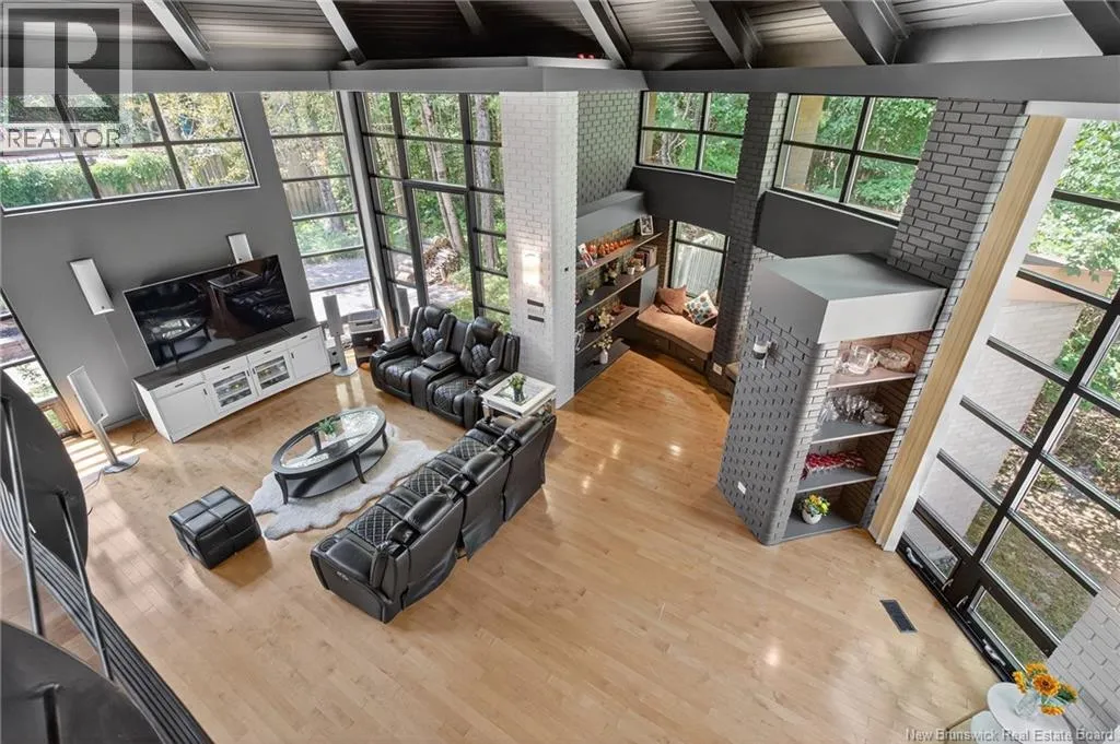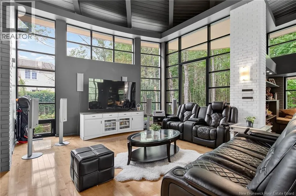 From Evergreen Dr, turn right onto Glencairn, then turn left onto Rosemount, the house is at corner of Brandywood and Rosemount LUXURY MONCTONS FINEST HOME IS HERE! A truly one-of-a-kind architectural masterpiece nestled on a quiet cul-de-sac in prestigious Moncton North. Situated on a lush, treed 0.78-acre lot with a circular driveway, this climate-controlled home offers over 8,000 sq. ft. of luxury living space, including a fully finished basement. Double lot of 3159m2 may be subdivided if desired. Step inside to soaring 19-ft vaulted ceilings, exposed I-beams, and a dramatic spiral staircase that sets the tone for this remarkable residence. The main level features a grand living room with floor-to-ceiling windows, a gourmet kitchen with oversized island and ample cabinetry, a formal dining room, mudroom, laundry area, and a commercial-grade 18x30 indoor heated pool with full bath and direct patio access. A beautiful bedroom with adjoining den completes this level. Upstairs, the spacious primary suite includes a walk-through closet, spa-inspired ensuite, and private balcony. Four additional bedrooms share two Jack & Jill bathrooms; one has access to a rooftop lookout. A second staircase connects all three levels. The lower level includes a rec room with fireplace, games room, studio, and 800-amp electrical panel. This energy-efficient home also features two geothermal systems, triple garage, and extensive concrete walkways and patios. (id:27476)