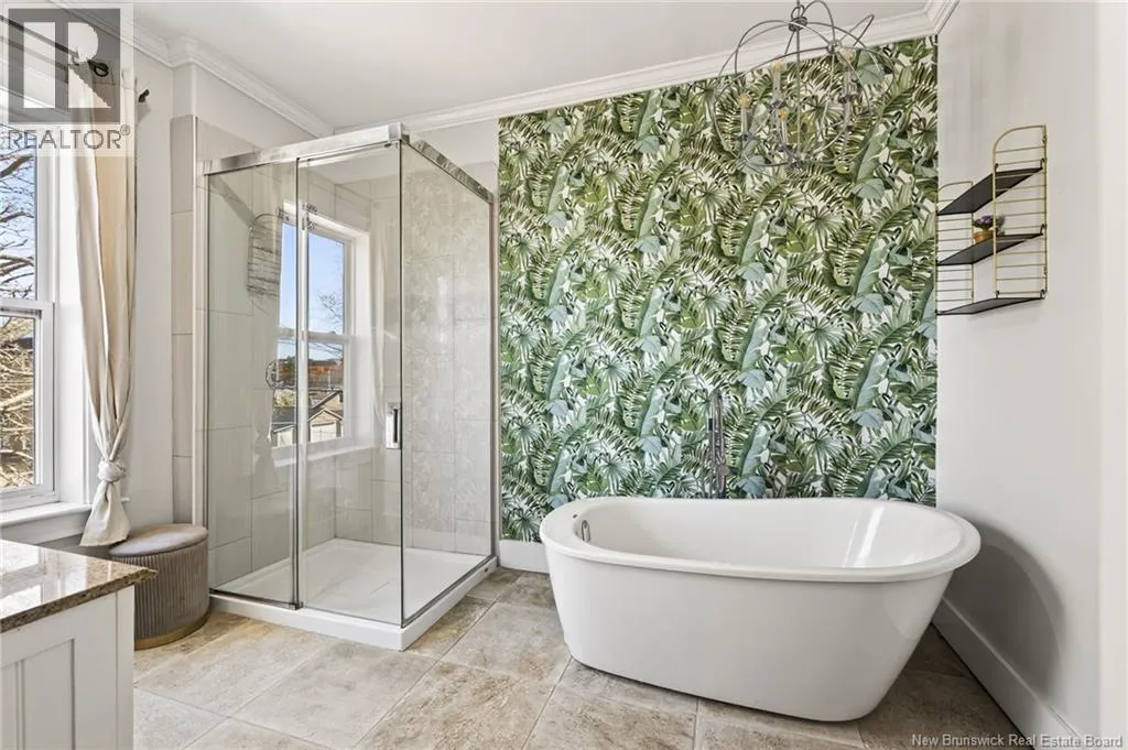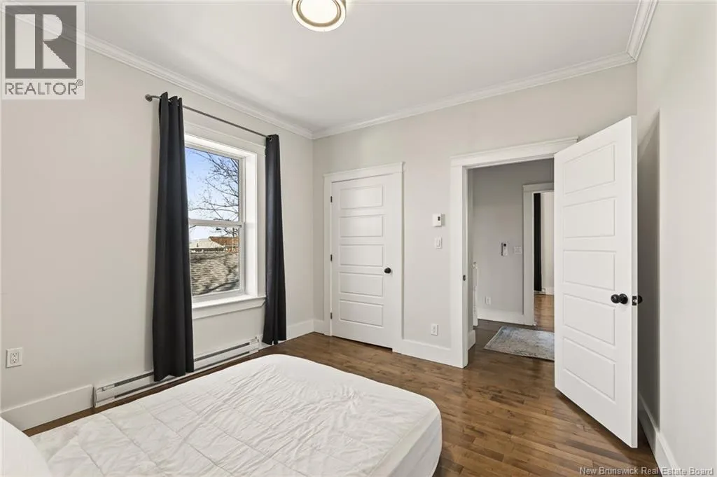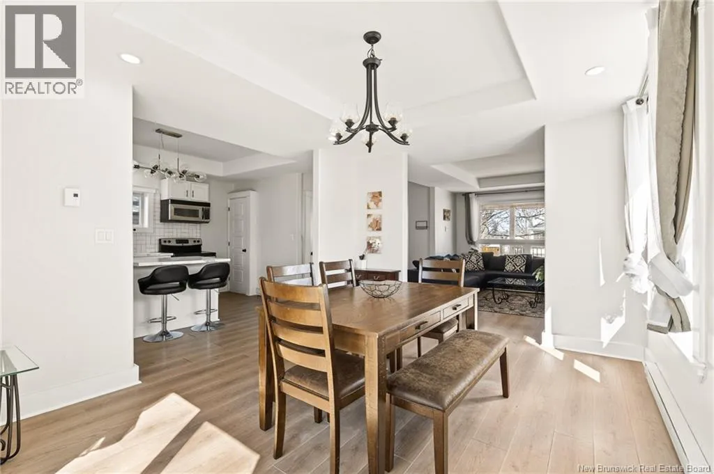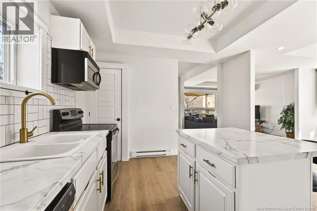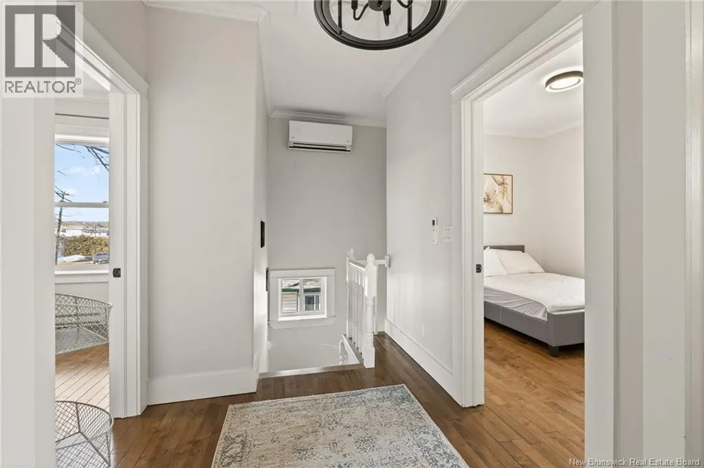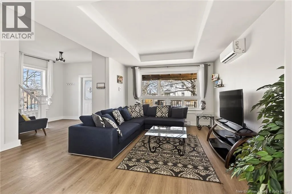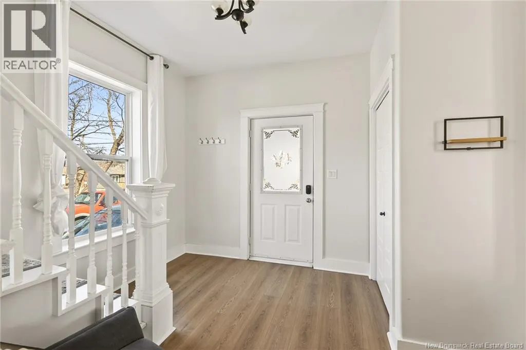 From Moncton Hospital onto Connaught Ave, turn on your left on Lefurgey Ave. Also accessible from Mountain Rd. Heritage charm meets modern living in the heart of Moncton! This beautifully renovated 2-storey home sits steps from the Moncton Hospital and checks every box without compromise. From the moment you walk through the door, you're greeted by an open-concept main floor with soaring ceilings, fresh laminate flooring, and a layout that just flows. The kitchen is a showstopper. White cabinetry with gold hardware, marble-look countertops, subway tile backsplash, a centre island, and a statement bubble chandelier. The dining room opens directly onto a gorgeous deck, perfect for summer entertaining. Upstairs, the primary bathroom features freestanding soaker tub, glass shower, and a bold tropical feature wall that has to be seen to be believed. Large bedrooms throughout, hardwood floors on the upper level, and two mini-splits keep everyone comfortable year-round. Outside: paved driveway, a beautiful deck, and a large yard ready for whatever you've got planned. Oh and all furniture is negotiable. Move in and just live. (id:27476)