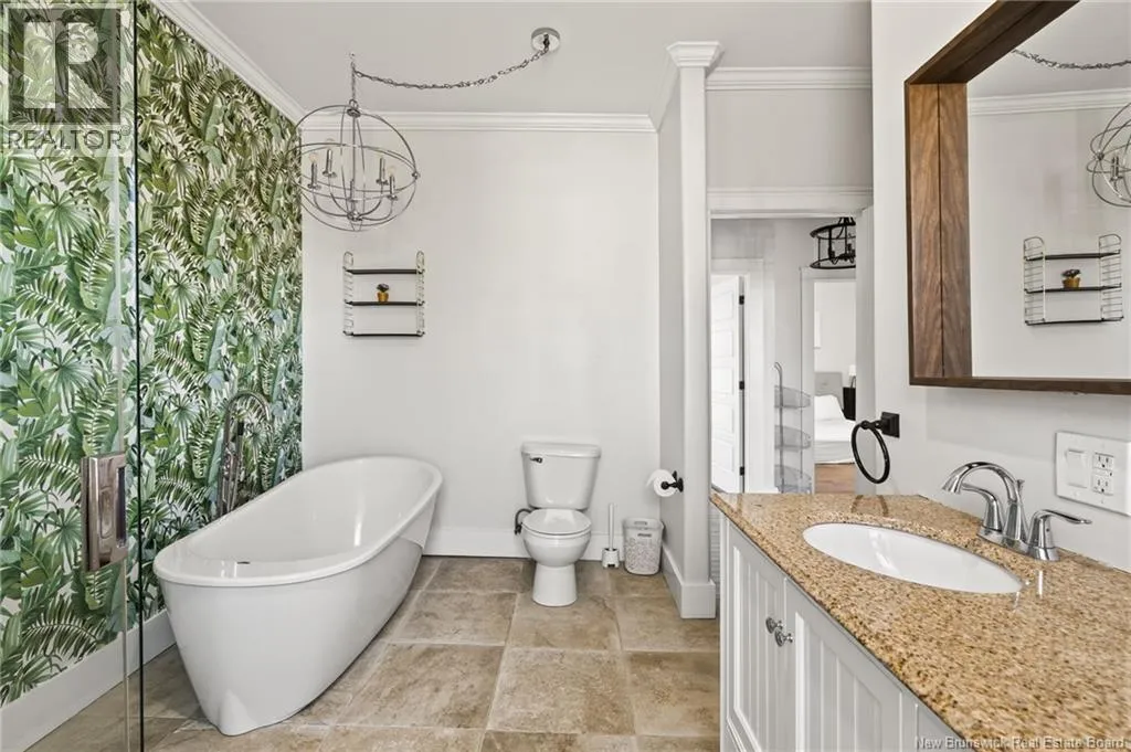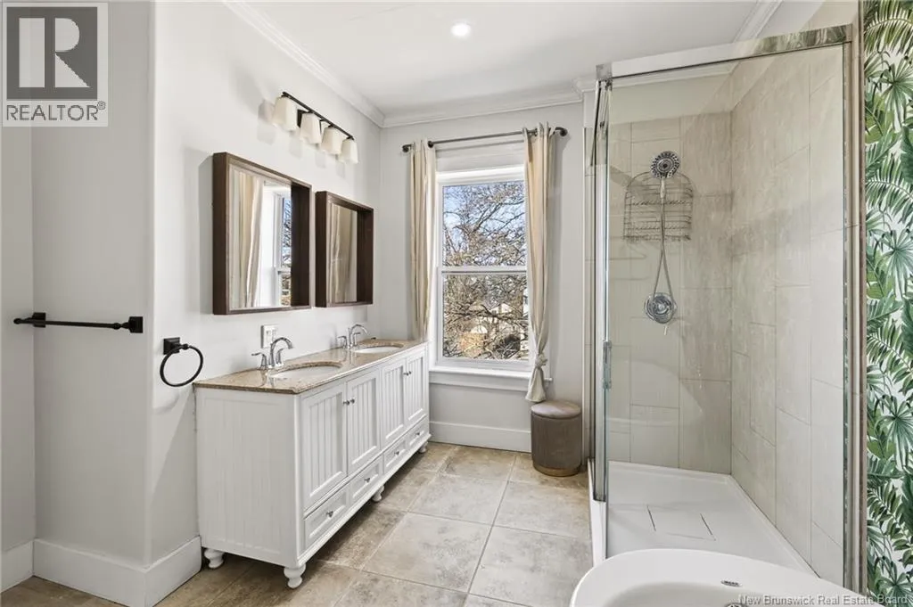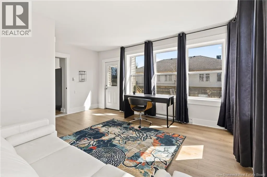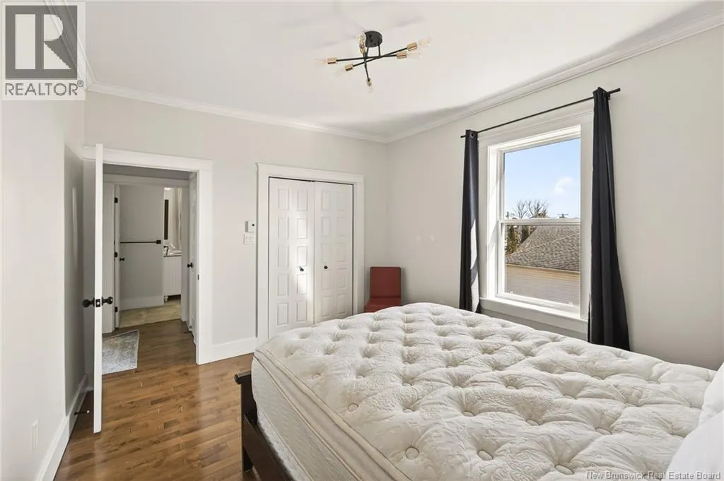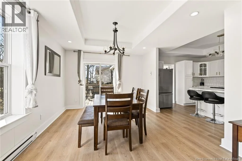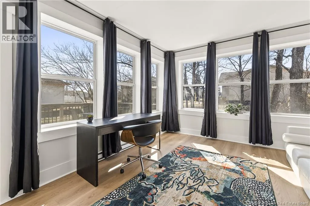 From Moncton Hospital onto Connaught Ave, turn on your left on Lefurgey Ave. Also accessible from Mountain Rd. Heritage charm meets modern living in the heart of Moncton! This beautifully renovated 2-storey home sits steps from the Moncton Hospital and checks every box without compromise. From the moment you walk through the door, you're greeted by an open-concept main floor with soaring ceilings, fresh laminate flooring, and a layout that just flows. The kitchen is a showstopper. White cabinetry with gold hardware, marble-look countertops, subway tile backsplash, a centre island, and a statement bubble chandelier. The dining room opens directly onto a gorgeous deck, perfect for summer entertaining. Upstairs, the primary bathroom features freestanding soaker tub, glass shower, and a bold tropical feature wall that has to be seen to be believed. Large bedrooms throughout, hardwood floors on the upper level, and two mini-splits keep everyone comfortable year-round. Outside: paved driveway, a beautiful deck, and a large yard ready for whatever you've got planned. Oh and all furniture is negotiable. Move in and just live. (id:27476)