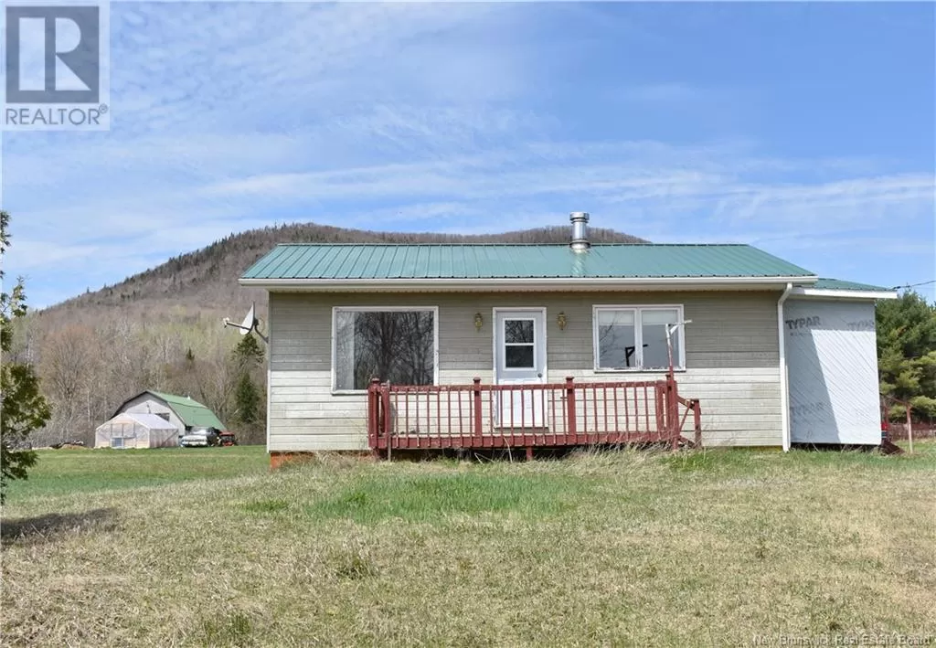Take Rte 105 to Cahill Rd. (Stay on Cahill Rd) and at Hall's Corner, go left on Rte 565 until Moose Mountain Road on right. House is on left, sign is posted. This sturdy, two bedroom home sits on 1.36 acres, overlooking Moose Mountain Lake. It was built approximately in 1995, sits on a 4' concrete perimeter wall, has a drilled well and would be a great place to start in your first home or downsize into. ""Tiny Home Living"" is popular and this cozy property offers good land for gardens, some pretty trees for privacy and of course, a beautiful lake view in one direction and Moose Mountain in the other direction. The porch entry offers space to keep your outdoor gear in and shelters you from entering directly into the home on a blustery day. Inside is open concept with the kitchen, dining area and living room all here, plus a door out to the side deck to enjoy your morning coffee and the views. The woodstove will easily keep this home heated throughout the winter season. Electric baseboards are the other heat source. Two bedrooms and a full bathroom finish the interior tour, The roof is metal and was installed approximately 4 years ago, and the hot water heater is a NB Power rental. Easy access to the basement crawl space. Enjoy country living at its finest here! (id:27476)