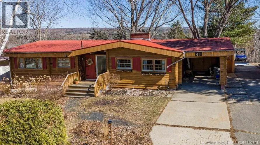 Nackawic - To Otis Drive, turn onto Pugsley Street. Civic Number 49. Sign is up Welcome to this charming log home in the heart of Nackawica rare opportunity to own an original Pan-Abode home, celebrated for its quality craftsmanship and timeless West Coast design. Tucked away on a quiet cul-de-sac and within walking distance to town amenities, this 3-bedroom, 1-bath property has been lovingly maintained by the same family for over 50 years. Inside, youll find a warm and inviting atmosphere, with rich natural wood finishes, a cozy fireplace, and a collection of quirky built-ins that add charm, character & storage. The kitchen offers a nostalgic country feel and the perfect canvas for your personal touch. Outdoors, the property offers privacy with a generous yard, mature landscaping, and beautiful lilac bushes that add colour and fragrance throughout the seasons. A ready-to-go vegetable patch and seasonal views of the scenic Saint John River complete the setting. A convenient carport and friendly neighbourhood enhance everyday living. The lower level provides additional space with great potential, ready for refinishing to suit your needs and add value. Located in a vibrant small-town community, Nackawic offers an impressive range of amenities including all three levels of schooling, a medical clinic, grocery store, pharmacy, brewery and the iconic World's Largest Axea true local landmark, while only being 35 minutes from Fredericton. This is a rare chance to own a well-loved home full of warmth, ready to welcome its next family! (id:27476)