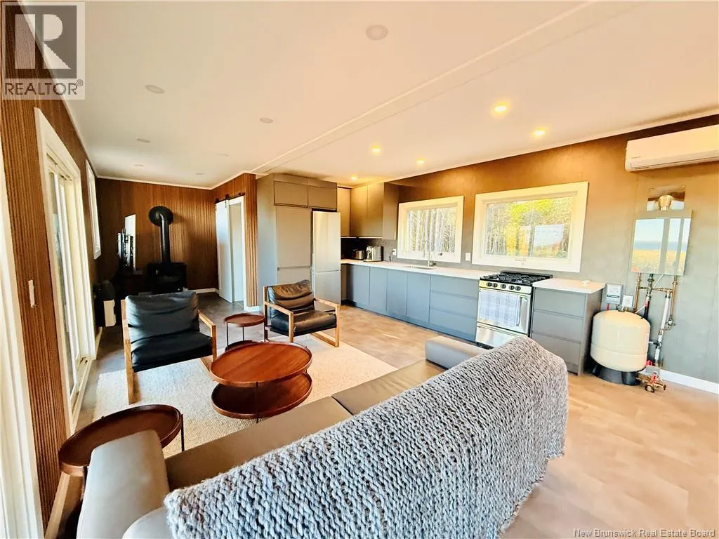 Off Hwy 11 heading South, turn onto the South Napan Road and continue onto Point aux Carr Rd almost to the end. Welcome to 731 Pointe aux Carr Rd in Napan, an off-grid waterfront retreat nestled on 21.7 gated and wooded acres with mature trees, perfect for enjoying stunning sunrises and sunsets. Located less than 10 minutes from Miramichi, NB, with all its amenities, and under 1.5 hours from Moncton and its airport, this property offers both convenience and tranquility. The brand-new home is fully equipped with off-grid infrastructure, including solar panels with battery storage, a backup generator, a drilled well, and a septic system. Enjoy year-round comfort with a propane mini-split for heating and cooling, plus a cozy wood stove. The modern kitchen boasts granite countertops and premium stainless steel appliances, while the spa-style bathroom features a spacious walk-in shower. Theres an option to purchase this fully furnished unit, and a C Can to provides secure storage. This outdoor paradise offers fishing, hunting, and trails nearby, along with peaceful privacy, making it move-in ready for complete off-grid living. (id:27476)