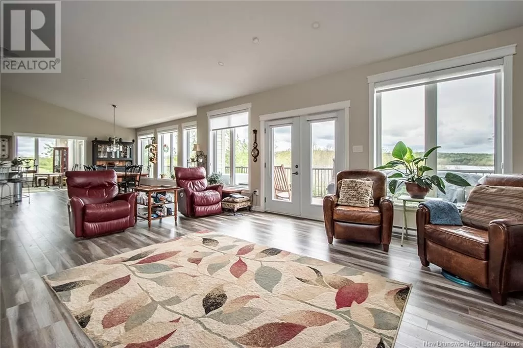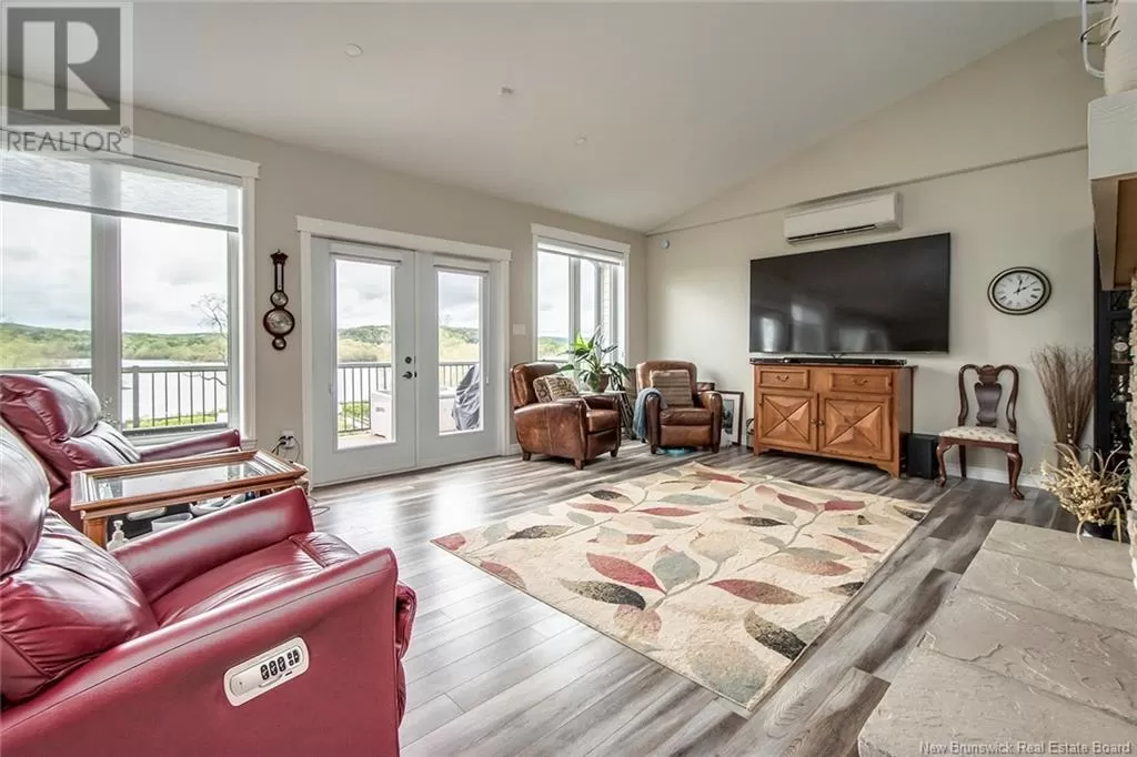 Welcome to 487 Route 100 in Nauwigewauk, New Brunswick! This tailor-made waterfront ranch-style bungalow is a true gem. Situated on nearly 5 acres of land, this property offers the perfect blend of comfort, elegance, and natural beauty. Step inside and experience the joys of one-level living, complemented by a 40-foot deck and expansive windows that showcase an unparalleled view of the waterway. The stunning landscape features meticulously maintained gardens, fruit trees, a serene pond, and abundant wildlife, creating a picturesque setting for you to enjoy breathtaking sunsets. The lower level of this home boasts an in-law suite with its own separate walk-out entrance and garage, providing both privacy and convenience. With its spectacular view, this space could also serve as an income property, offering a multitude of possibilities. One of the standout features of this property is the beautiful Island, an enchanting private escape that can be exclusively yours. The water system connected to Hammond River or Kennebecasis River offers ample opportunities for swimming, boating, or kayaking, allowing you to create cherished memories with friends and family. Crafted with exceptional quality in mind, this home showcases high ceilings, a tall fireplace, quartz countertops, heat pumps, a generator, and a wood stove, ensuring both comfort and functionality. Don't miss the chance to own this remarkable waterfront property that offers an idyllic lifestyle. (id:27476)