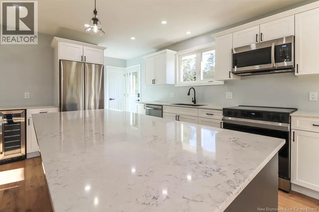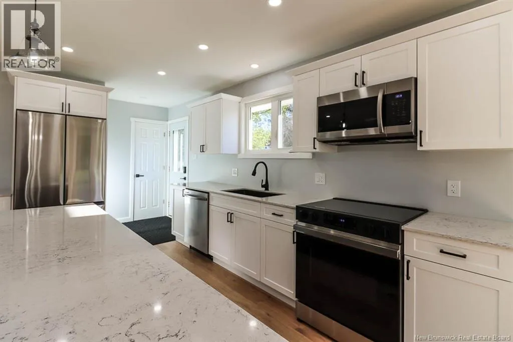 on the right hand side off Vaughan Drive. Welcome to 2 Young Road, where modern design meets country charm! This beautifully renovated 3-bed, 1-bath bungalow has been completely redone -- stripped down to the studs and rebuilt with care, quality, and style. Every detail has been thoughtfully upgraded to create a move-in ready home that feels brand new. Step inside to a bright, open-concept kitchen and dining area thats sure to impress. The stunning quartz-topped island and counters, high-end finishes, and stainless steel appliances - including a fridge, stove, microwave, dishwasher, and bar fridge - making this kitchen the true heart of the home. The spacious bedrooms offer plenty of comfort and natural light, while the full bathroom boasts beautiful detailing and a double vanity, combining function and luxury. Downstairs is ready for your customization and already plumbed for a bathroom. Outside, enjoy peaceful living on a semi-private lot with a large gravel driveway, small front deck, and a spacious back deck perfect for relaxing or entertaining. Everything has been taken care of new siding, electrical panel, eaves troughing, most windows replaced, a repointed chimney with a new liner, and roof (within 5 years). Plus, a new heat pump ensures year-round comfort and efficiency. This home is truly a turnkey gem stylish, solid, and ready to welcome you home. Located just 5 minutes from Hampton, this home offers the perfect blend of modern living and rural tranquility. Contact us for your private viewing! (id:27476)