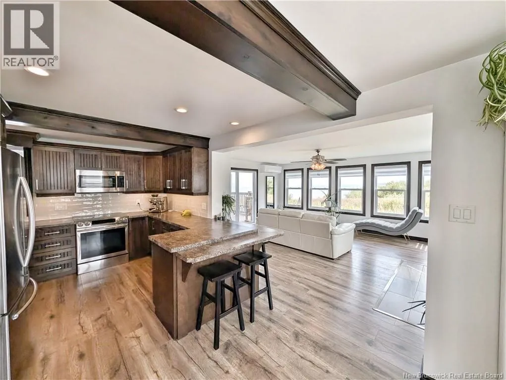 From Bathurst lake Rte -11 When Viewing This Property On Realtor.ca Please Click On The Multimedia or Virtual Tour Link For More Property Info. Located in the beautiful coastal region of New Bandon, this property offers an idyllic lifestyle with breathtaking ocean views and stunning sunsets. Nestled in a sought-after area, it combines tranquility, natural beauty, and proximity to services, all within the wide-open landscapes of the Acadian coastline. The house, fully renovated with modern taste, impresses with its warm and contemporary style. The main floor features an open-concept layout including a kitchen with ample storage, a welcoming dining area, and a bright living room. A large family room with panoramic windows allows you to enjoy the magnificent ocean view at all times. A full bathroom combined with a convenient laundry room completes this level. Upstairs, the loft space has been converted into a spacious primary bedroom offering both comfort and privacy. This level also includes a full bathroom, adding a touch of luxury and convenience. Outdoors, a large covered back deck invites you to relax while enjoying the breathtaking ocean views. A garage provides additional storage or space for hobbies. For comfort, the home is equipped with oil and electric heating, along with heat pumps for efficient year-round heating and cooling. For added peace of mind, a propane generator system ensures backup power in case of outages. The durable metal roof is another valuable feature. (id:27476)