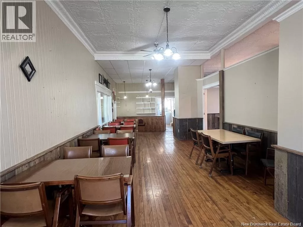 From route 108, turn onto Foley Brook Rd. Property will be on the right This popular historic property was at one time well known for its Danish cuisines. Sitting on 3.81 acres of land and comes complete with an above 3-bedroom apartment. Giving you the choice to live there or rent it for additional income. The restaurant boasts two dining rooms with original vintage tin ceilings, outdoor patio seating and holds a capacity of 80 guests. Many updates have been done to the building in the recent years. A little piece of well-known history in New Denmark is waiting for you. Imagine the possibilities (id:27476)