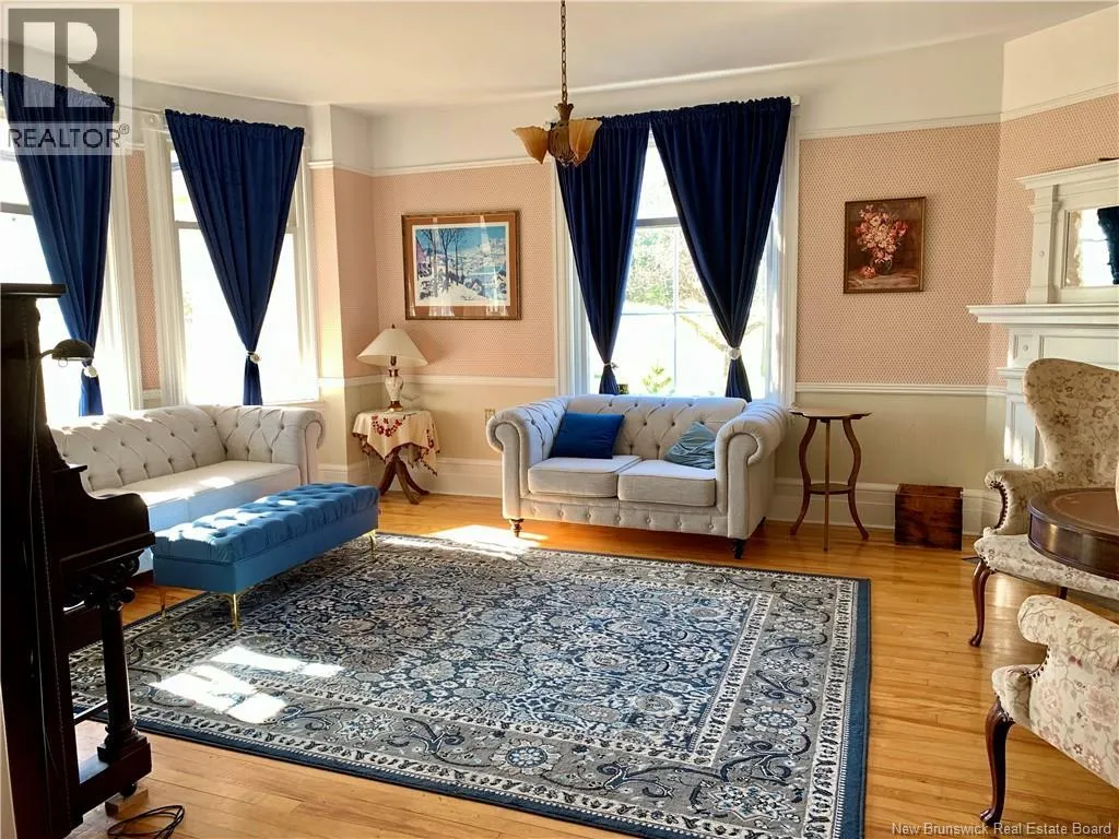 Highway 134 head to 24372 Route 134 New Mills Set on nearly 3 acres in a peaceful rural setting, this unique property was formerly a B&B and offers incredible space, charm, and potential. New Mills Wharf can be viewed from the home and is within walking distance to it. The home combines history and functionality, making it ideal for a large family, multi-generational living, or business opportunity. Inside, the main floor features a generous living area, a den, a dining room with seating for ten, and a large kitchen. Each of the eight bedrooms include their own private bathroom, providing comfort and privacy. Original details such as a maids staircase, a wrap-around porch, and period features throughout highlight the homes timeless character. The grounds include mature landscaping with fruit trees, and a detached hall perfect for hosting functions or special events. With its scenic location, expansive layout, and endless possibilities, this property is a rare find. Measures are approximate. (id:27476)