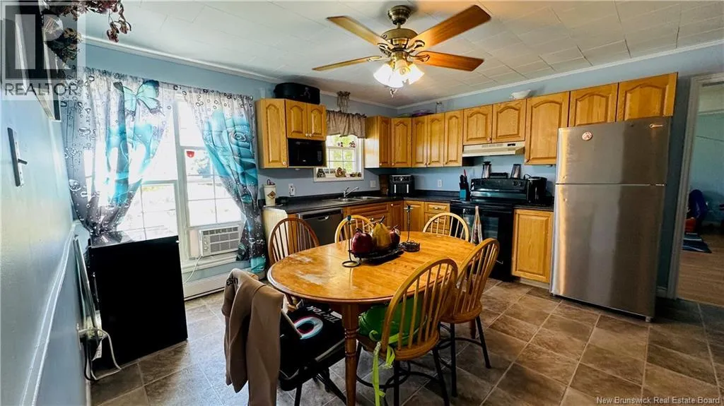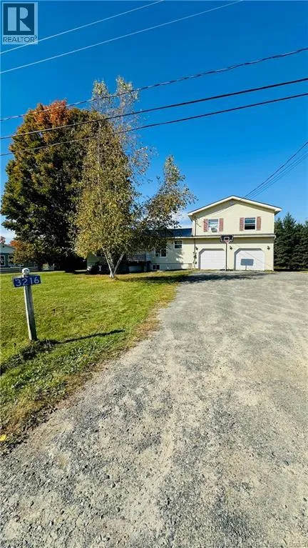 Drive over the Grafton bridge to Newbridge. Drive past the airport road. The house will be on the left hand side of the road Welcome to 3216 Route 585 in Newbridge, NB a spacious 3 Bedroom + Den (Den BASEMENT window may need switching to egress to meet modern day standards to create a 4th Bedroom) home with the incredible bonus of a 2-Bedroom Apartment above the Garage, complete with a private entrance. Perfect as a Mortgage Helper, Guest House, or In-Law Suite, this property offers endless possibilities. The main home is designed for easy one-level living. Step in through the Garage to a handy Mudroom, with a full 4-piece Bath right at hand. The bright, spacious eat-in Kitchen offers abundant cabinetry and is conveniently paired with main-floor Laundry. The oversized living room, filled with natural light, features French doors with potential for a wraparound porch or side deck imagine coffee mornings or entertaining guests with a view! A massive Primary suite boasts a 2-piece Ensuite and large closet, while two additional Bedrooms complete the level. Downstairs, a partially finished Basement includes a space framed for a Family Room, a large Den/Bedroom awaiting your finishing touches, plus a Utility room with a 200-amp panel, air exchanger, newer well pump, and UV water system. The attached oversized Garage provides plenty of space for parking and storage. Set on a beautiful and private lot with mature crabapple trees, a childrens swing set, and a storage shed, this property offers space, privacy, comfort, and versatility the perfect place to call home! (id:27476)