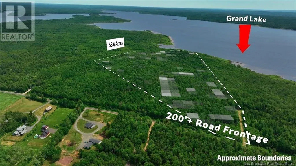Follow Route 10 into Minto, slight right onto Route 690(Lake Road), turn left at Newcastle Centre Road, turn right onto Chapman Road. Here's an opportunity to own a large parcel land on Grand Lake! High and dry land at municipal road, driveway already in place, and sandy seasonal water frontage at the other end of the property. Great 53 acre property to build your forever home, enjoy the privacy of the large woodlot, and relax by a dock, boat, travel trailer or fire on the beach! Absolutely beautiful 200'+ of lake frontage, with deep water and is protected from larger waves. Under 10 minutes to village amenities in Minto, and roughly 45 minutes to Fredericton or Oromocto. Don't let this one slip by! PID# 45210150 (id:27476)