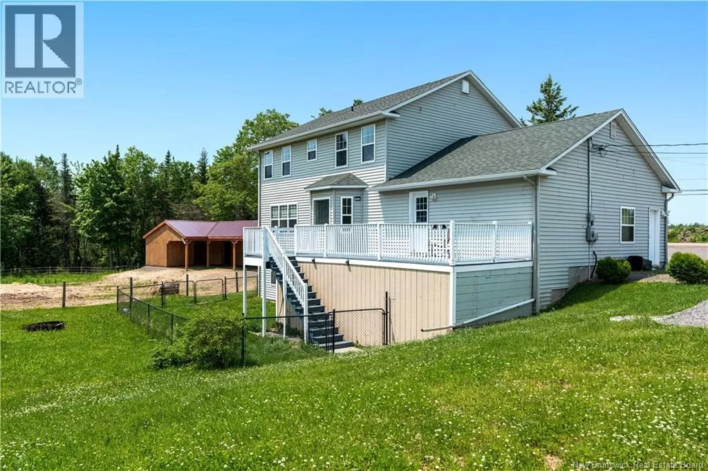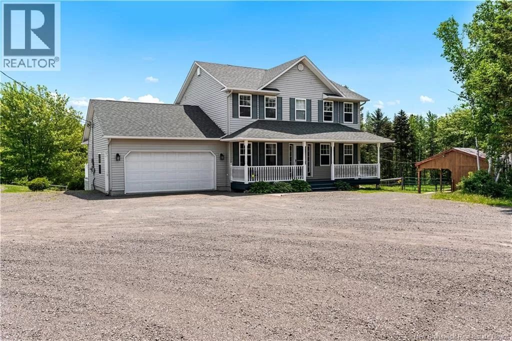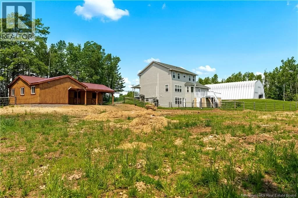 On Route 115 towards Notre-Dame, the property will be located on your right WALKOUT BASEMENT / LARGE FAMILY HOME & MORE. A large 2-storey home, sitting on 1-acre of land with hobby farm just minutes from Moncton. This home features an attached double car garage and a bright open-concept main floor that includes a spacious kitchen with high-end cabinetry and quartz countertops, a living room flooded with natural light, half bath, dining room and laundry with direct garage entry adds everyday ease. Upstairs, youll find 3 large bedrooms, including a spacious primary bedroom with a 5-pcs ensuite, and a separate 4-pcs bathroom for family or guests. The finished walkout basement adds even more living space and storage with a large family room, non-conforming bedroom, 3-pcs bath, and a pellet stove to keep things toasty in the winter. The basement is ready for endless opportunities like an in-law suite or basement apartment as a mortgage helper. A beautiful barn built in 2021, featuring 3 stalls, a tack room with concrete floor, R20 insulation, and solar-powered lighting, all connected to a horse paddock. Whether youre dreaming of keeping horses or simply enjoying wide open spaces, this property is awaiting it's next new family. (please note - the steel garage is not part of the property). (id:27476)