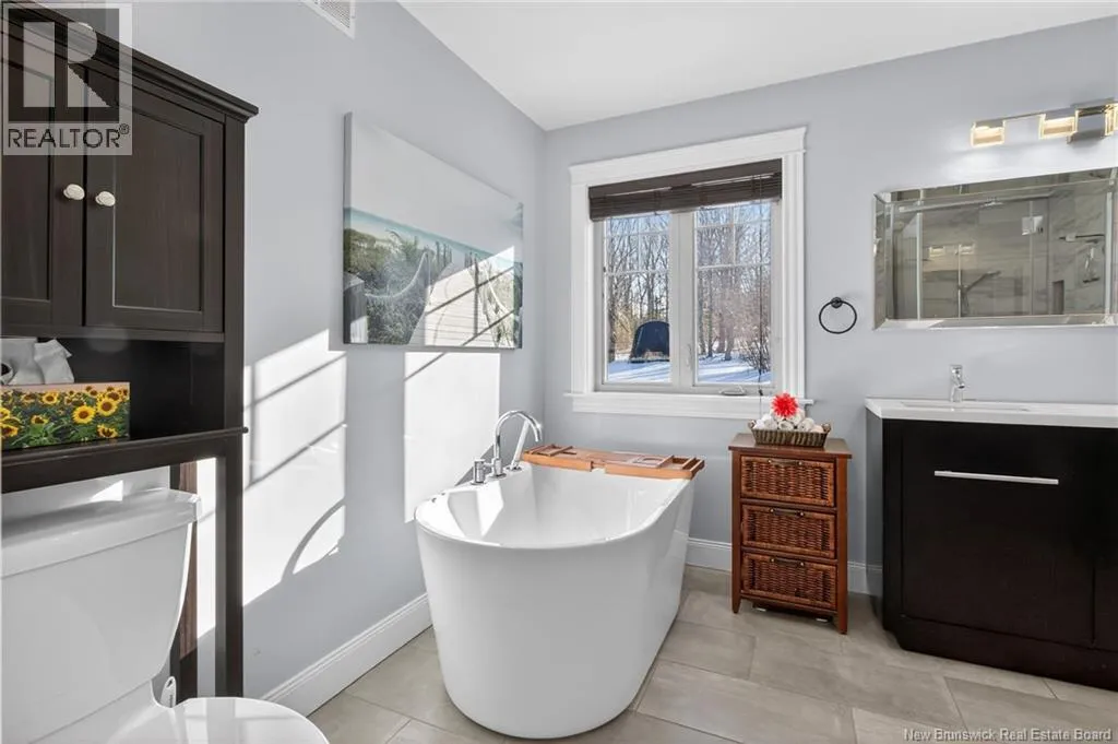 From Cocagne Sud Road, turn on La Montee. Continue all the way up until you reach #54 on your right. Welcome to 54 De La Montée, an immaculate property perfectly situated on over 3 acres of land, offering breathtaking views of the Cocagne River. From the moment you arrive, youll appreciate the peace and privacy this home provides. The property features a double detached, climate-controlled garage with both heat & air conditioning, as well as a new 21-ft pool surrounded by a beautiful deck with direct access from the primary bedroomperfect for summer relaxation and entertaining. Step inside to the main floor, where you are immediately welcomed by a stunning open-concept layout. The recently renovated kitchen boasts dark cabinetry, elegant quartz countertops & a layout ideal for entertaining or keeping an eye on the kids while preparing meals. Across from the kitchen, the dining area flows seamlessly into the living room, which features oversized windows that flood the space with natural light & showcase the picturesque river views.The main level is completed by three generously sized bedrooms & a stunning full bathroom, with access from the primary bedroom, featuring a luxurious soaker tub. The fully finished basement offers two additional bedroom, a large family room & a second full bathroom, providing ample space for family or guests. Comfort is ensured year-round with two ductless heat pumps, including one in the primary bedroom & another in the basement. For more information or to book a viewing, dont delay, call your favourite REALTOR® today. (id:27476)