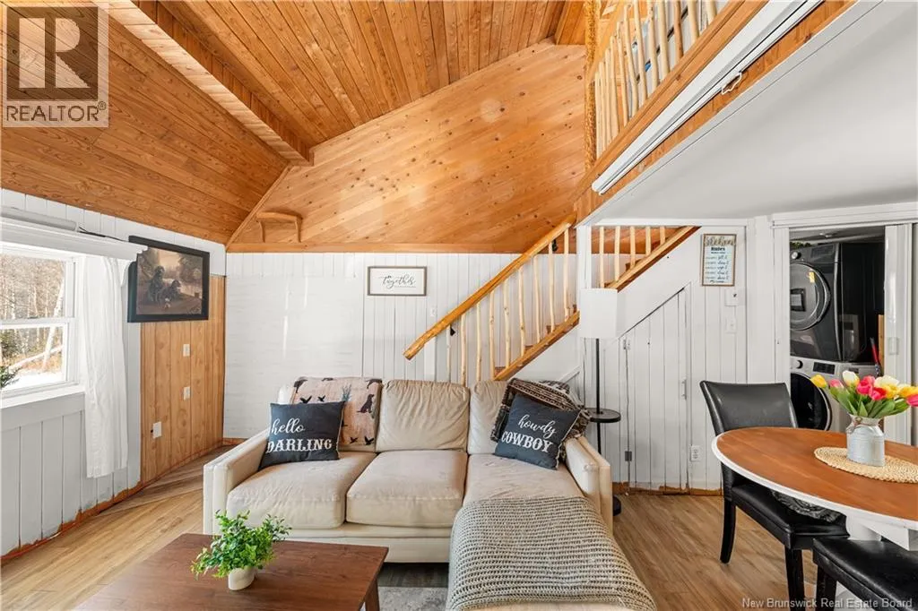 From Cocagne Sud Road, take Teed Road and civic #71 will be on your left. Set on a private 3.57-acre wooded lot along a quiet side street, this property is a perfect fit for nature lovers. The nearby ATV trail system runs alongside the property for easy access, while local streams and the nearby Cocagne River offer great opportunities for exploring and fishing. A bright sunroom-style foyer welcomes you in and leads to the open-concept main living area showcasing beautiful woodwork throughout. This space includes the living room, kitchen, and a 3-piece bath with laundry and a tiled shower. Upstairs, the loft-style bedroom overlooks the main living area below and leads to a large exterior deck. This home is well suited for first-time buyers, downsizers, a year-round cottage, or Airbnb potential. Call or text for more details or to schedule a private visit. (id:27476)