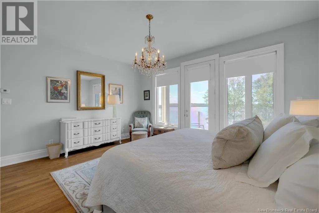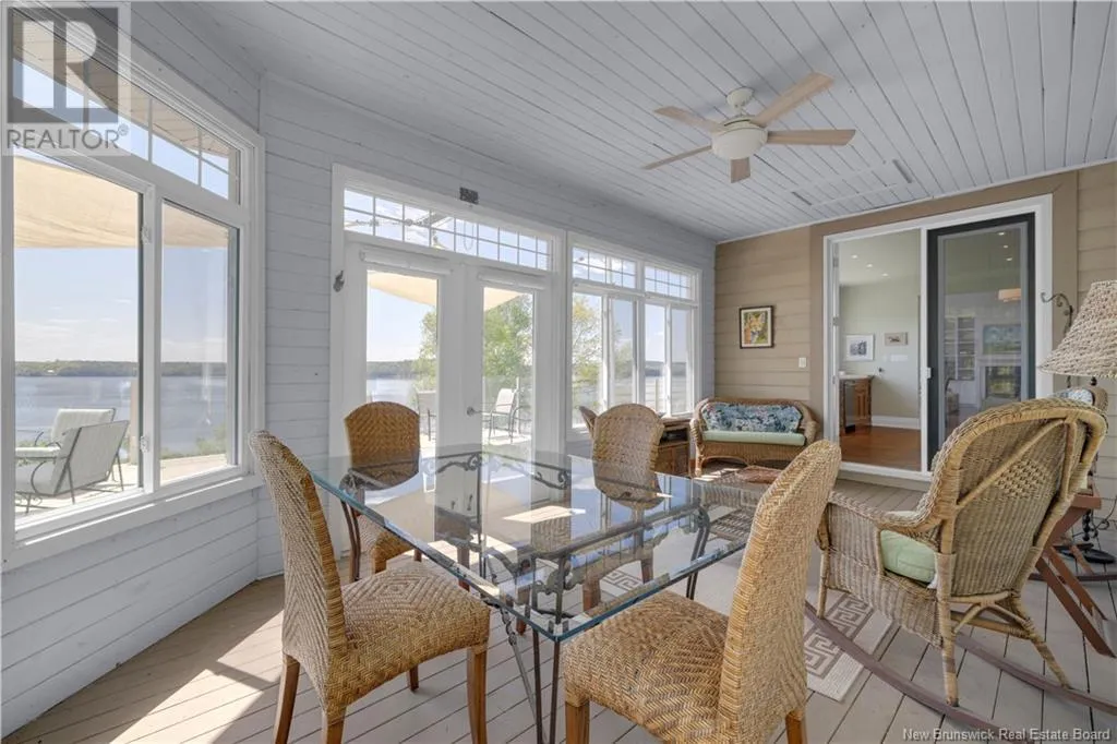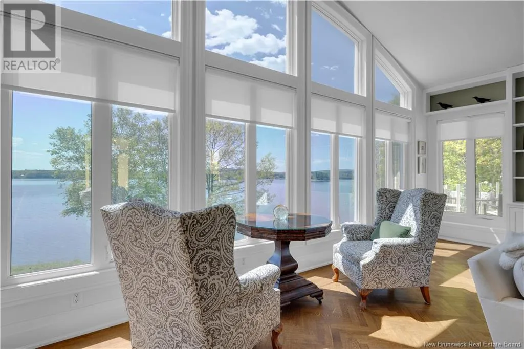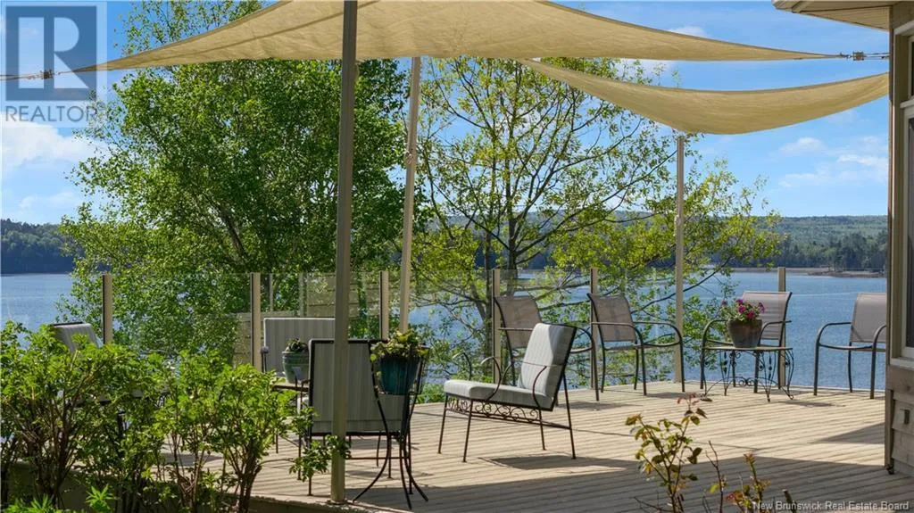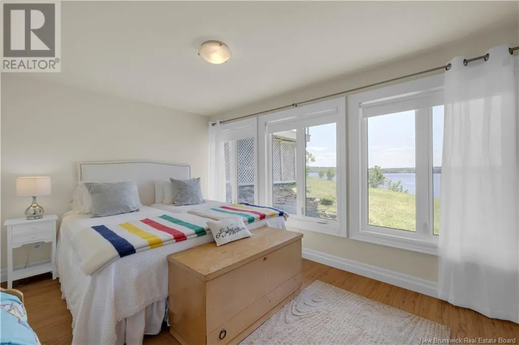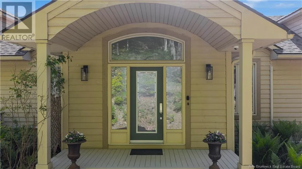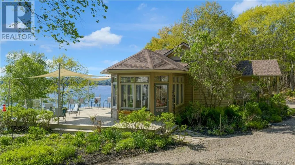 Beautiful custom-designed, quality-built home with breathtaking views of the historic, tidal St. Croix River in Oak Bay. This light-filled home offers a sense of space, calm, and connection to nature. Expansive windows upstairs and down capture the everchanging tides, dramatic sunsets, and wildlife in every season. In spring, eagles soar overhead, and shy foxes appear at the edge of the woods. Winter brings gentle snowfalls that transform the home into a snow globe. The interior features custom millwork throughout, herringbone oak flooring in the kitchen and great room, solid oak floors in the ground floor primary bedroom, and 8-foot solid core doors. French doors add elegance and openness, while soundproofing in all interior walls and floors ensures peace and privacy. The kitchen boasts cherry cabinetry and Carrera marble countertops. The primary bath is beautifully finished with Carrera marble vanity, marble tile, and a custom-designed layout. Travertine floors enrich the foyer, powder room, and laundry. The lower level includes more custom cabinetry, 8-foot doors, and a built-in vacuum system. A three-season porch and a deck with unobstructed tempered glass railings invite outdoor living. Set on nearly three acres of private, manicured grounds with perennial gardens, this home also includes a garage and carport. Stairs leading to the beach is a perfect spot to launch your kayak for an evening sunset paddle. A rare blend of craftsmanship, comfort, and natural beauty. (id:27476)