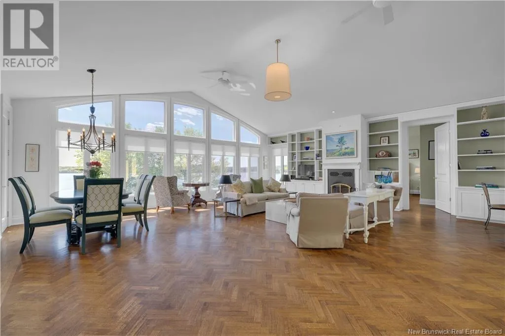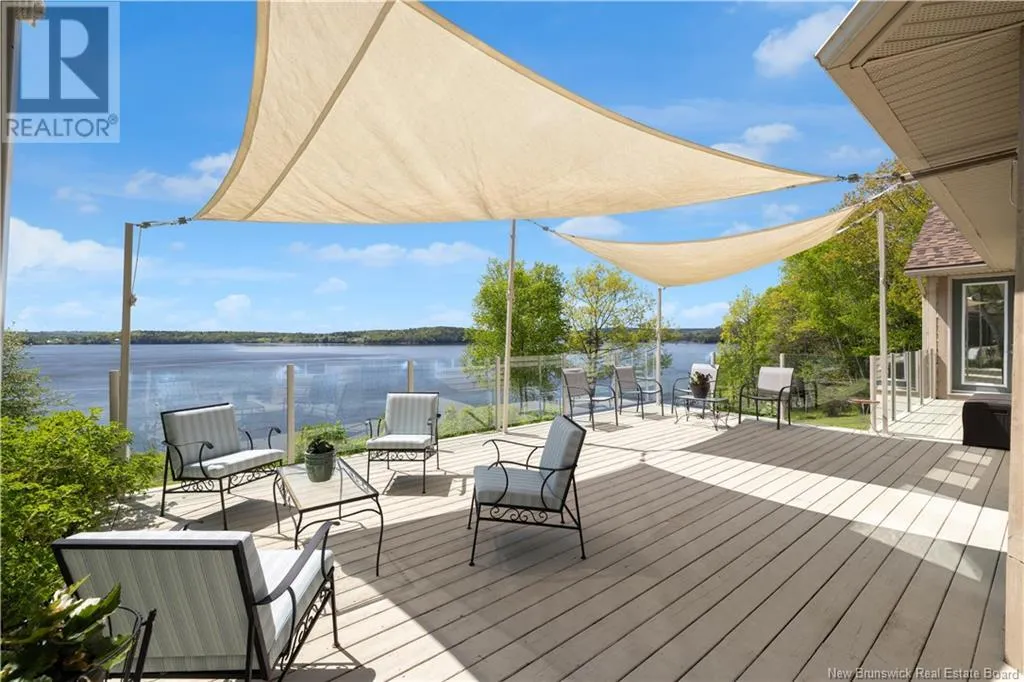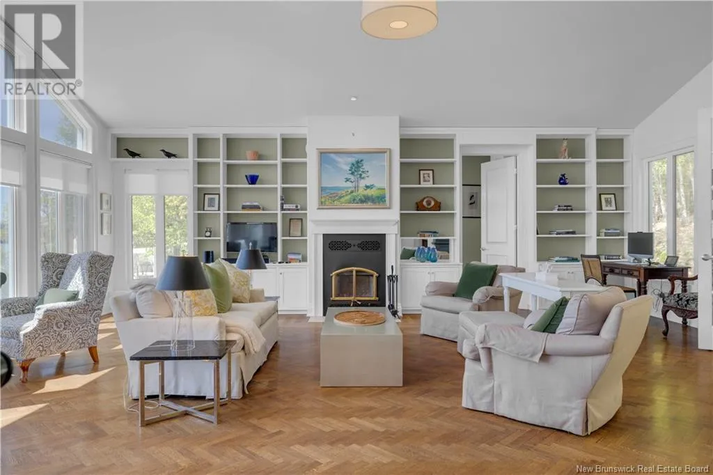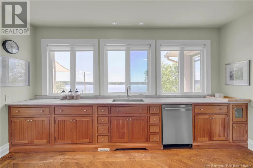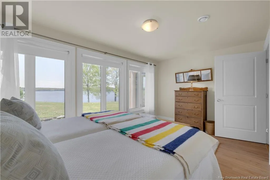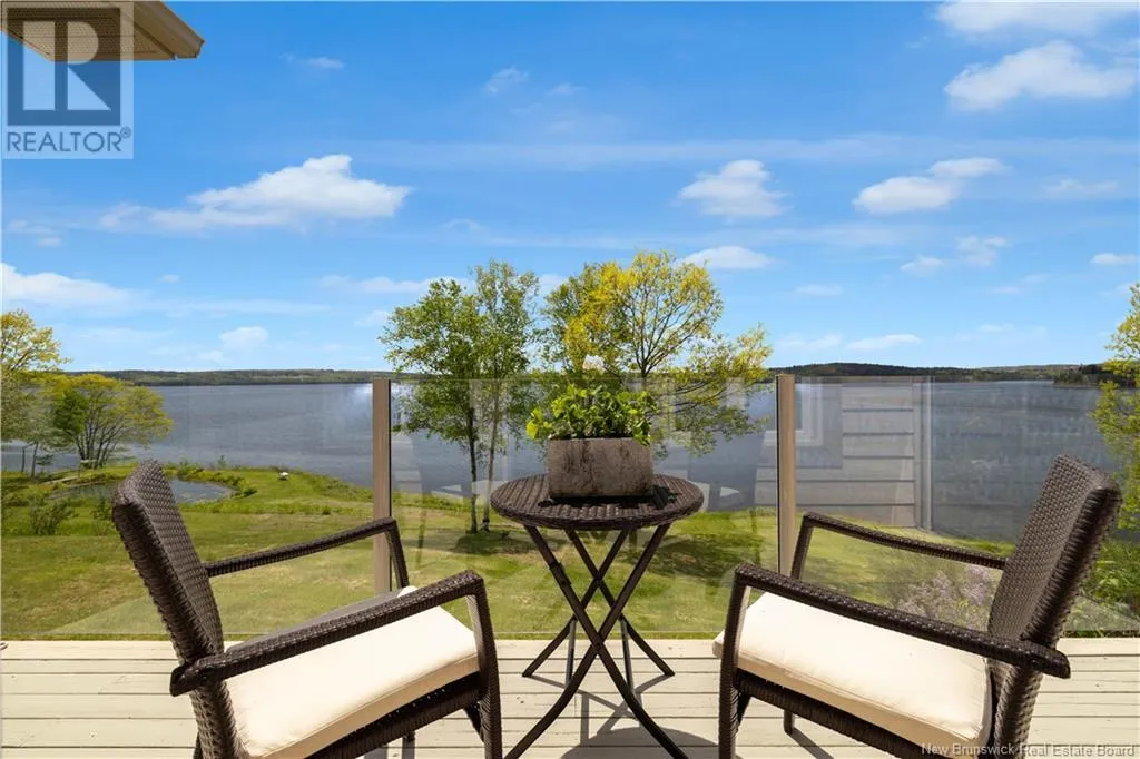 Beautiful custom-designed, quality-built home with breathtaking views of the historic, tidal St. Croix River in Oak Bay. This light-filled home offers a sense of space, calm, and connection to nature. Expansive windows upstairs and down capture the everchanging tides, dramatic sunsets, and wildlife in every season. In spring, eagles soar overhead, and shy foxes appear at the edge of the woods. Winter brings gentle snowfalls that transform the home into a snow globe. The interior features custom millwork throughout, herringbone oak flooring in the kitchen and great room, solid oak floors in the ground floor primary bedroom, and 8-foot solid core doors. French doors add elegance and openness, while soundproofing in all interior walls and floors ensures peace and privacy. The kitchen boasts cherry cabinetry and Carrera marble countertops. The primary bath is beautifully finished with Carrera marble vanity, marble tile, and a custom-designed layout. Travertine floors enrich the foyer, powder room, and laundry. The lower level includes more custom cabinetry, 8-foot doors, and a built-in vacuum system. A three-season porch and a deck with unobstructed tempered glass railings invite outdoor living. Set on nearly three acres of private, manicured grounds with perennial gardens, this home also includes a garage and carport. Stairs leading to the beach is a perfect spot to launch your kayak for an evening sunset paddle. A rare blend of craftsmanship, comfort, and natural beauty. (id:27476)